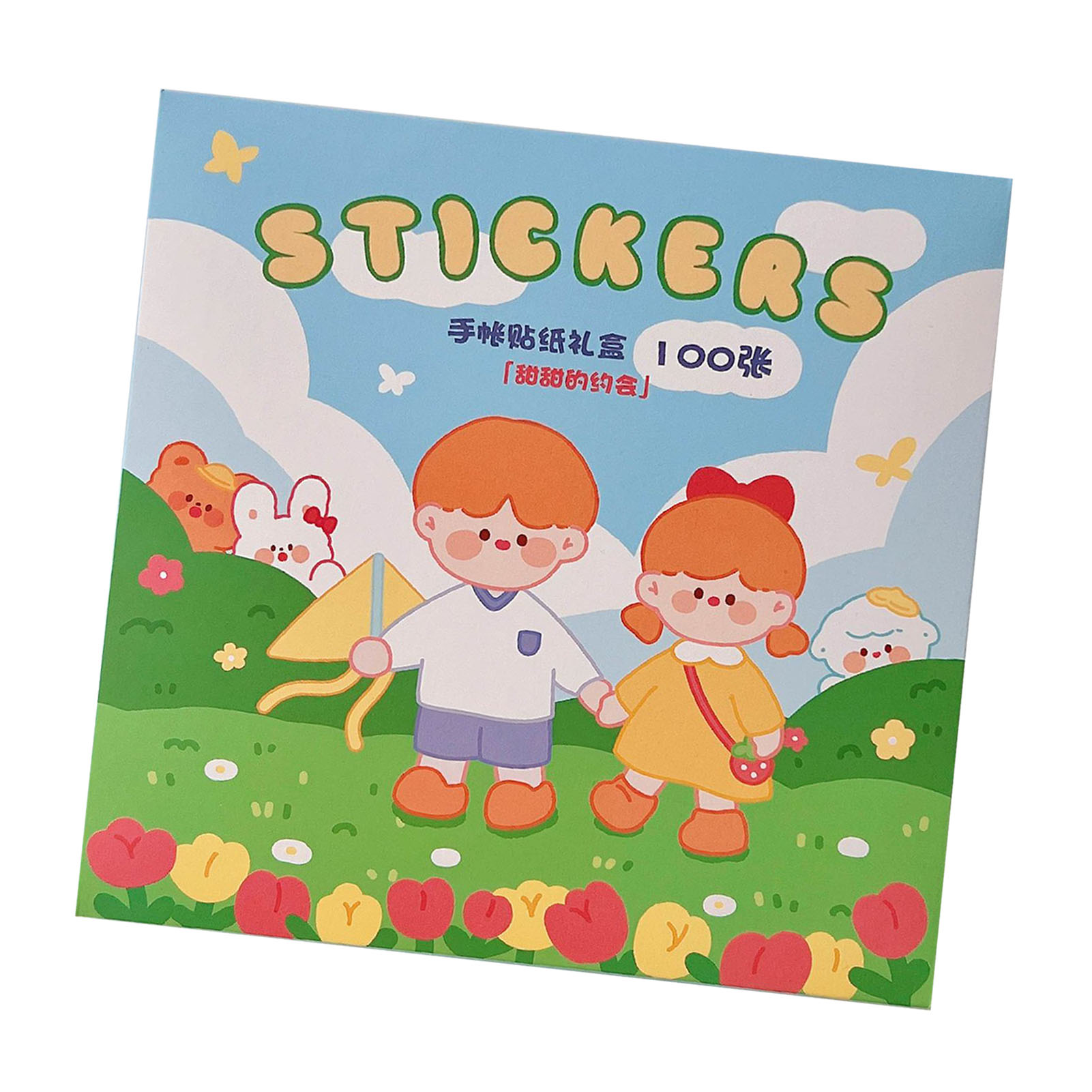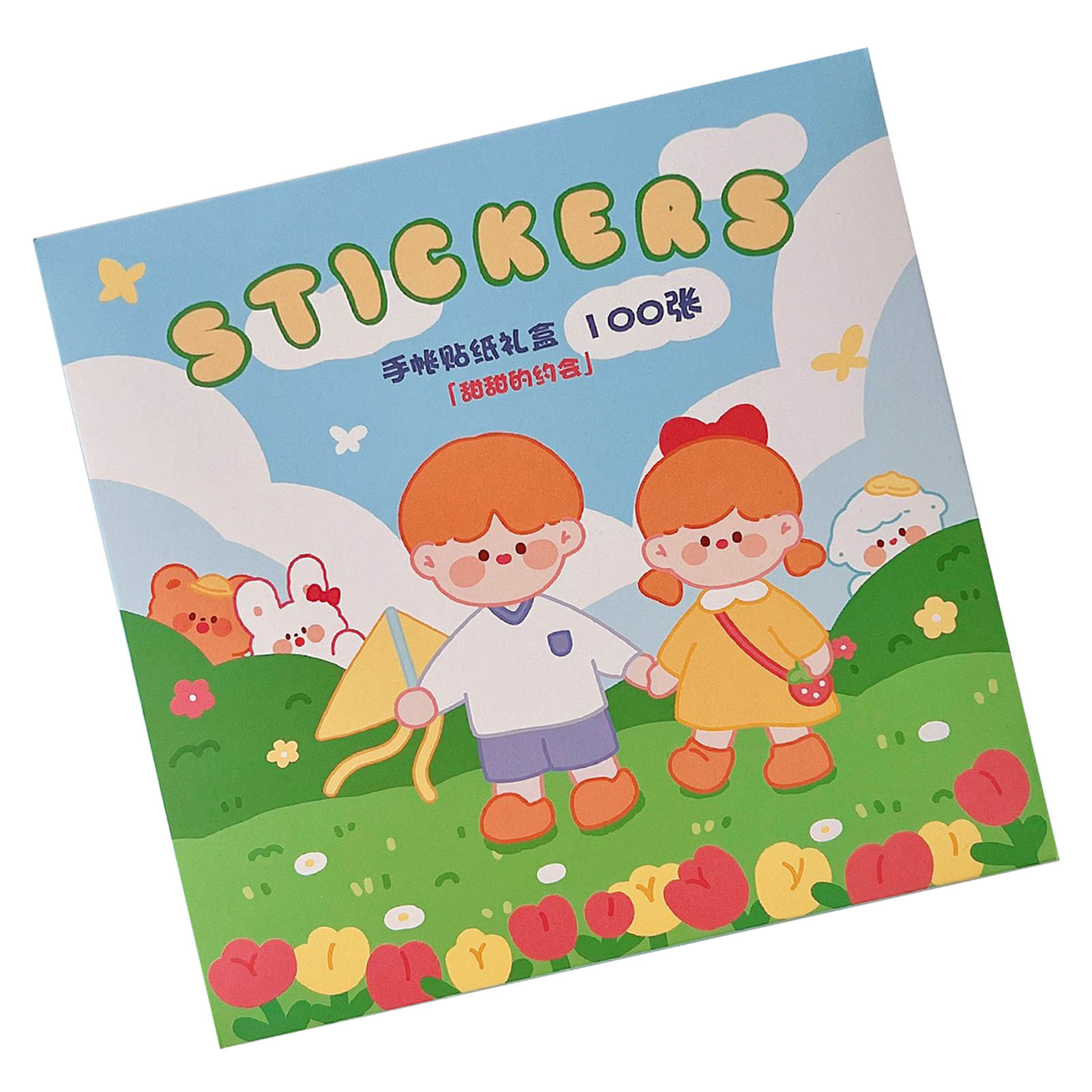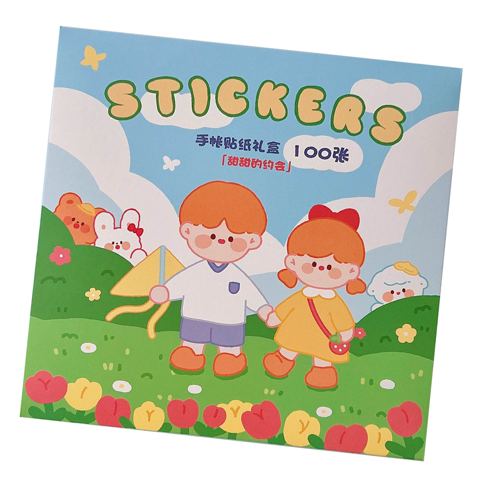 100 Sheets Cartoon Character Sticker Waterproof PET Cute Aesthetic Water Bottle Sticker for DIY