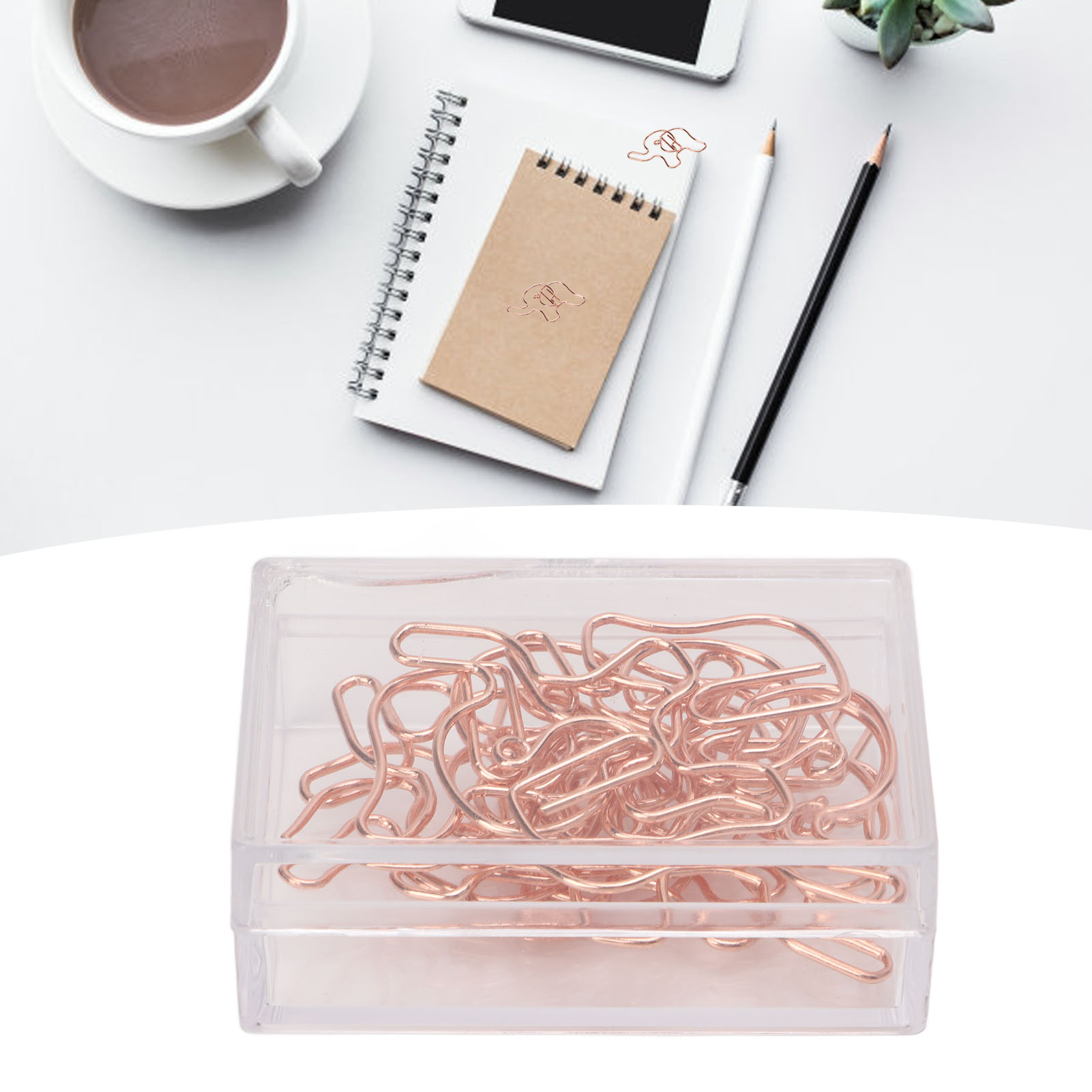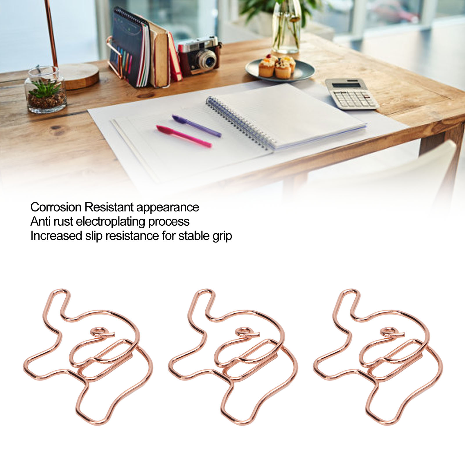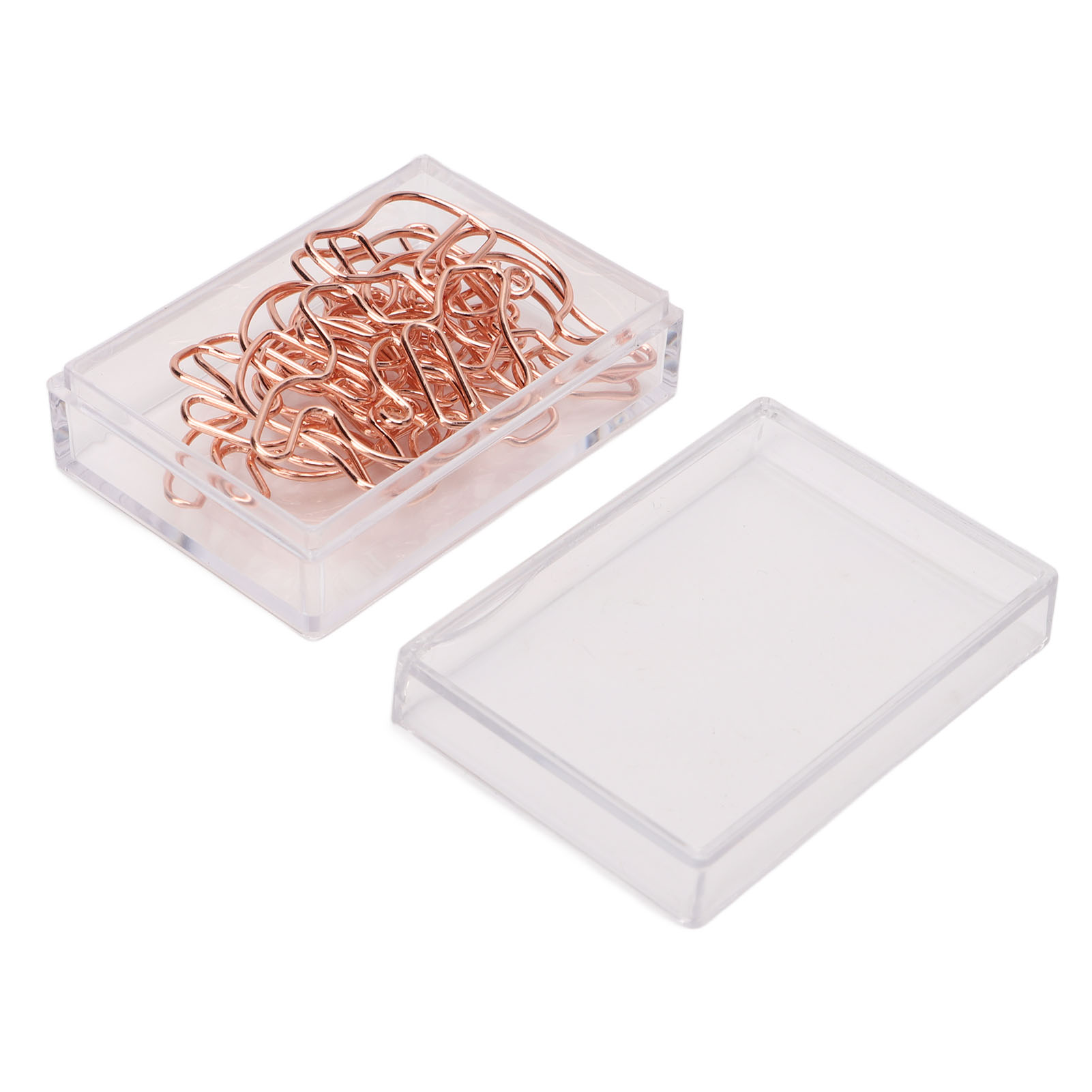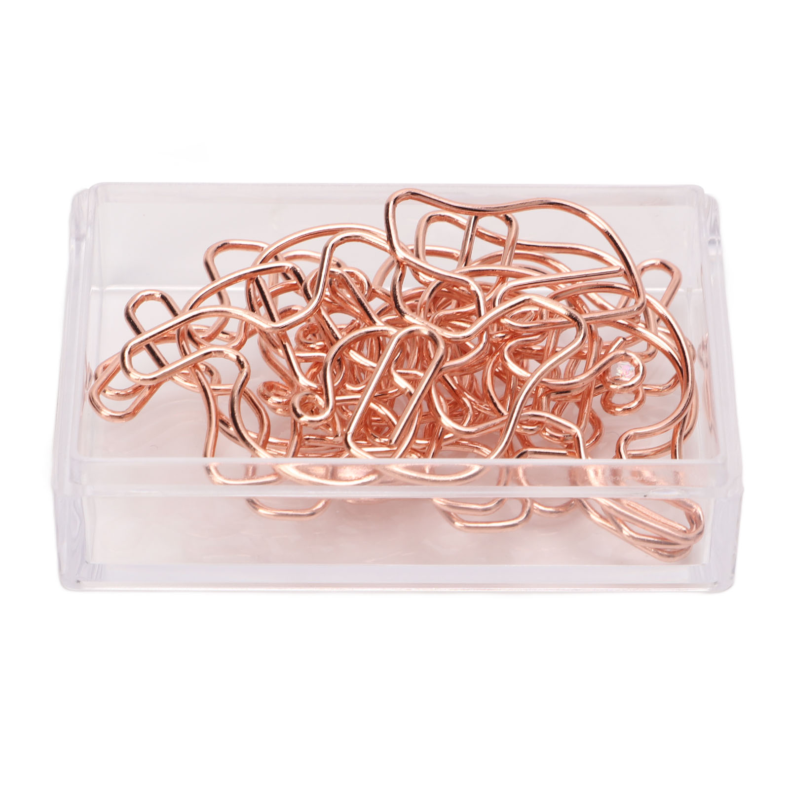 1、Metal Material: The paper clip is made of metal material, using anti rust electroplating process, not easy to fade, not easy to rust, not easy to break. 2、Rose Gold: Rose gold paper clips have a rose gold look, not easy to damage the paper, increase slip resistance, can be used as bookmarks, etc. 3、Cute Look: Paper clips feature a cute look, and the clips have a bright, corrosion resistant finish for file sorting. 4、Lightweight and Portable: Paper clips office is small in size, light in weight, durable and not easy to break, easy to carry and use. 5、Scope of Application: Cute paper clips can help organize your documents and drawing paper, suitable for office, home and daily use.