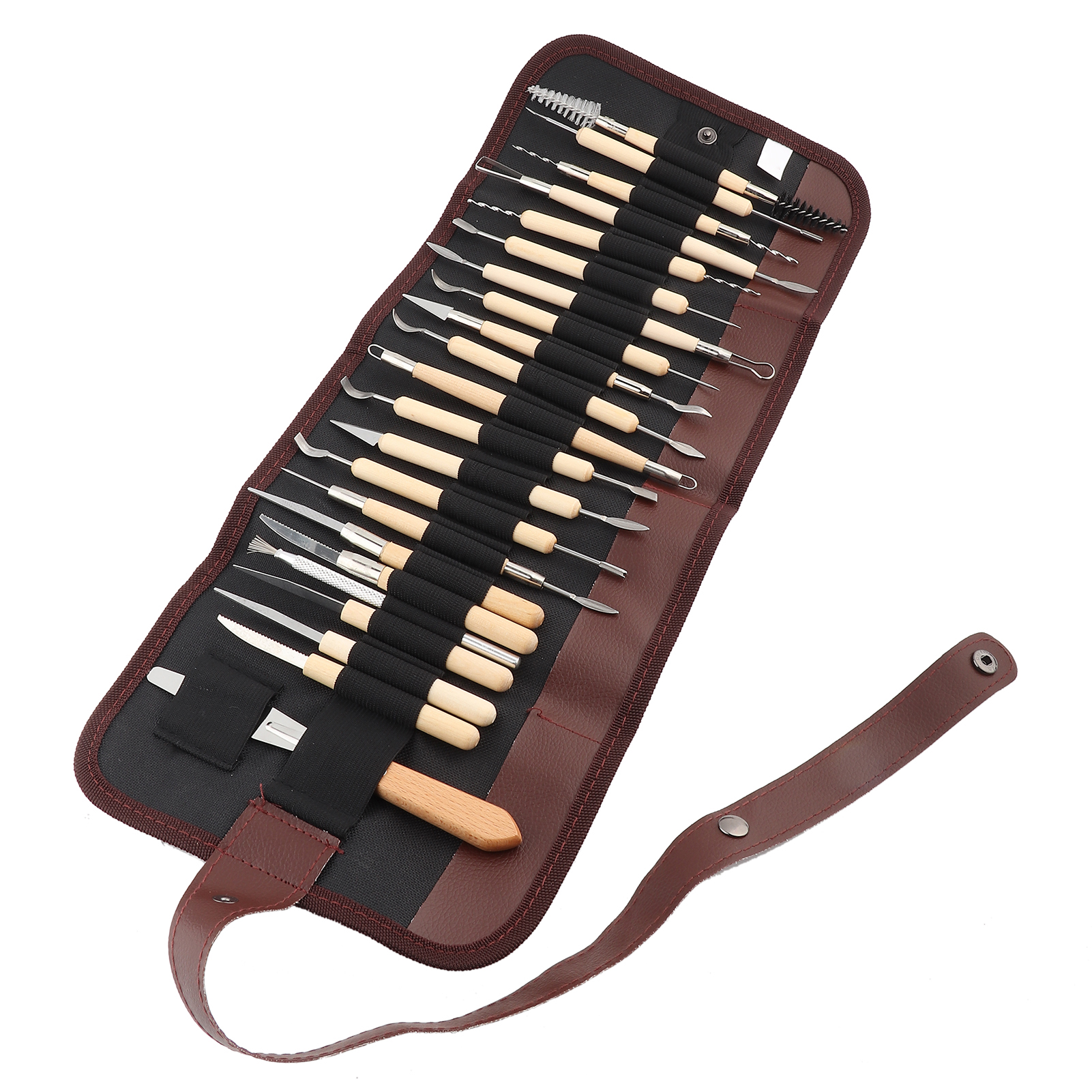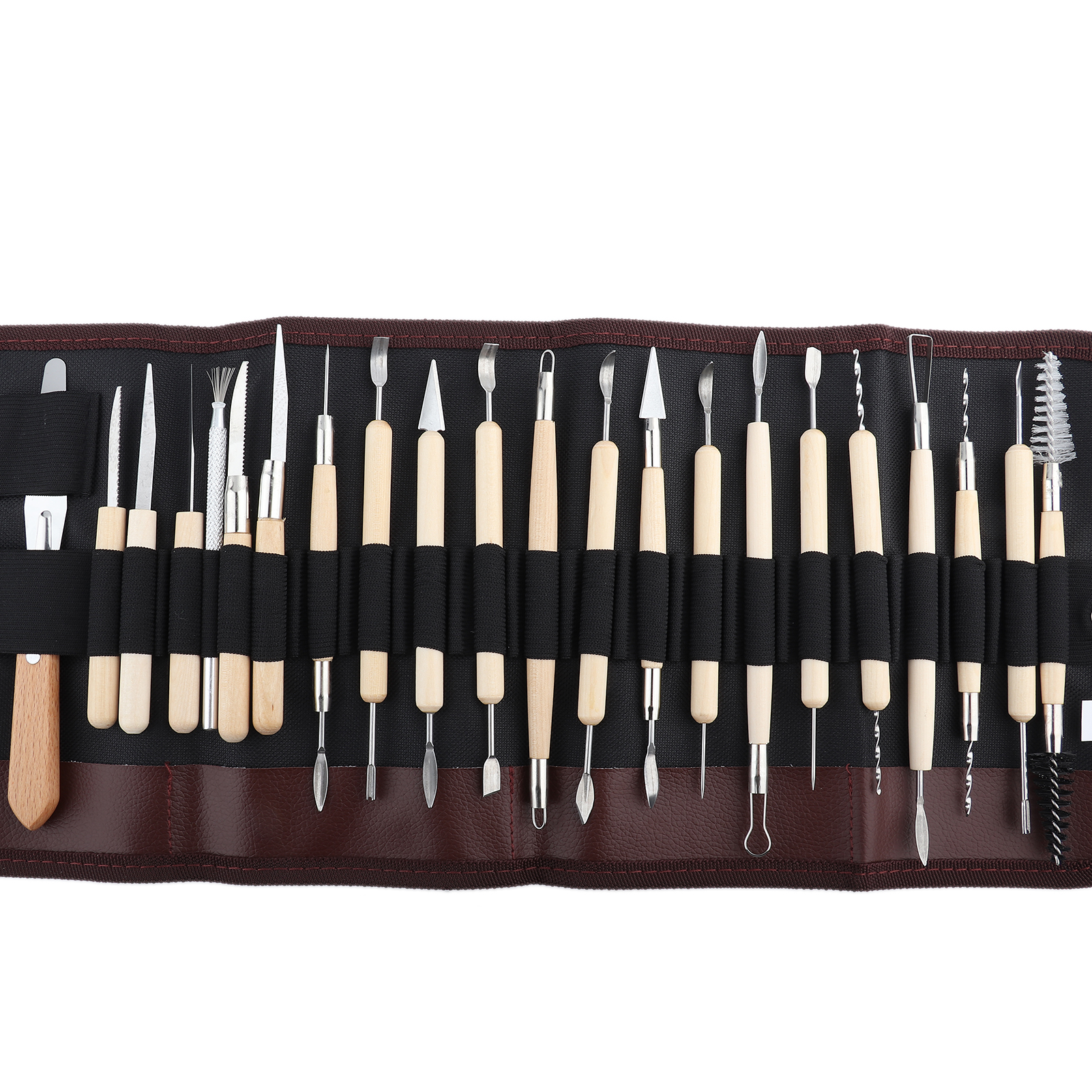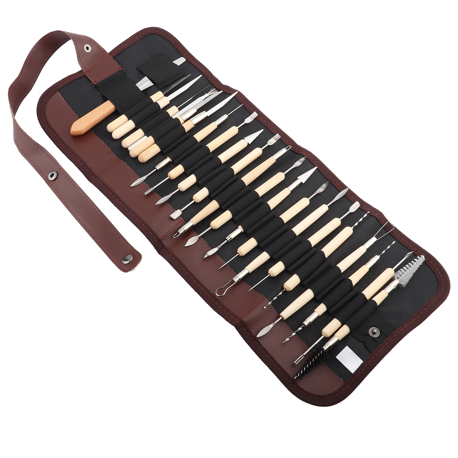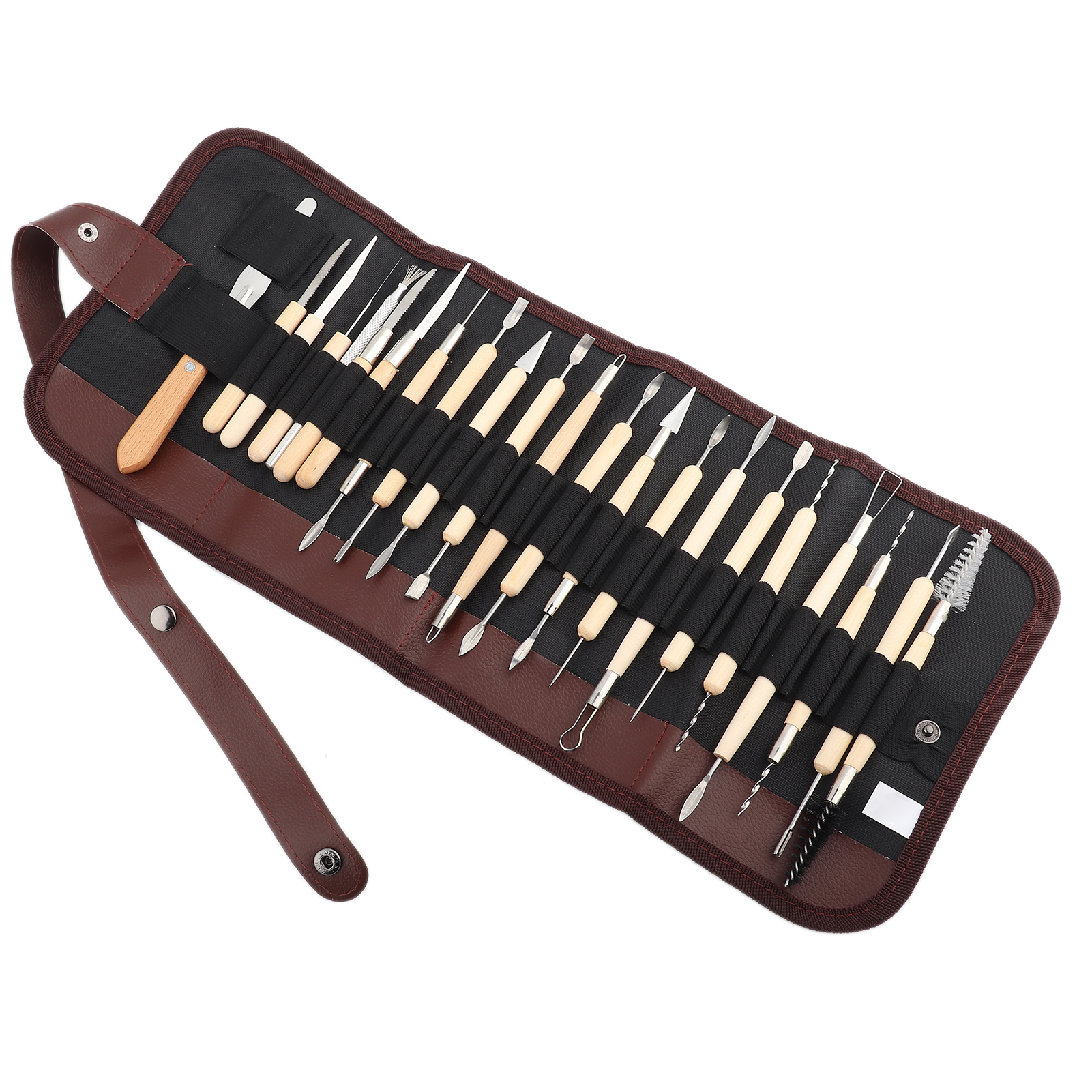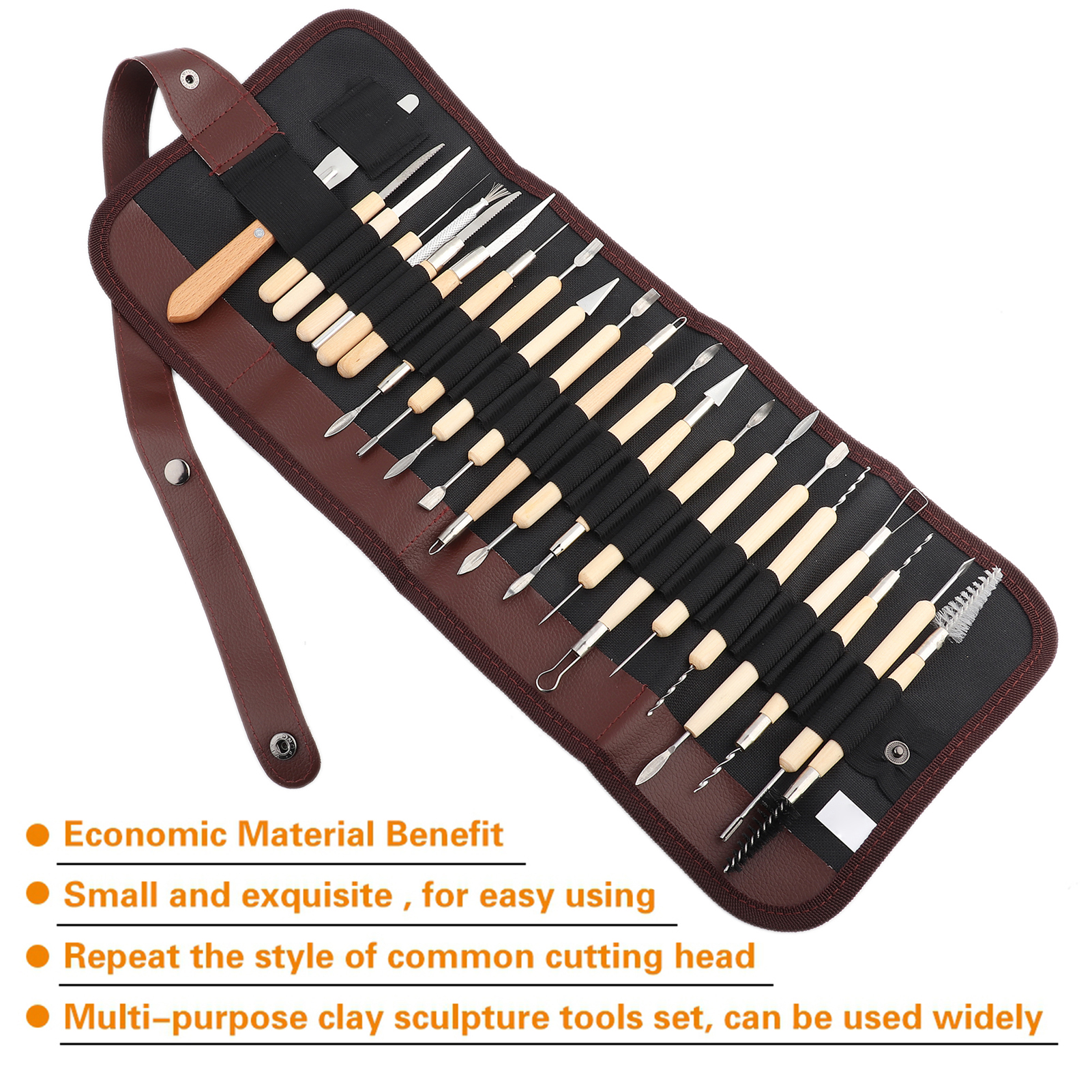 1、A unique set that contains a wide variety of tools to be used on a variety of clays including air drying clay, polymer clay. 2、22pcs different clay tools, provide variety of carving shapes to give you more flexibility for your designs 3、This set is packaging in it's own canvas case for easy carrying 4、Multi insert pocket design for easy tool finishing, improve work efficiency and protect tools 5、Perfect for carving, sculpting, shaping, modeling, cutting, scraping, brushing, and so on in the clay crafts producing process
