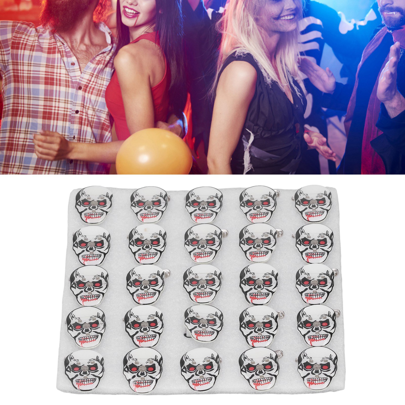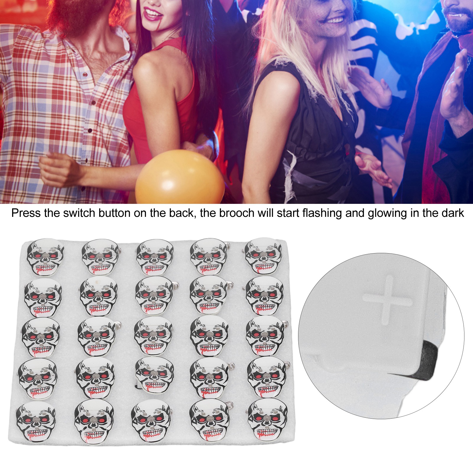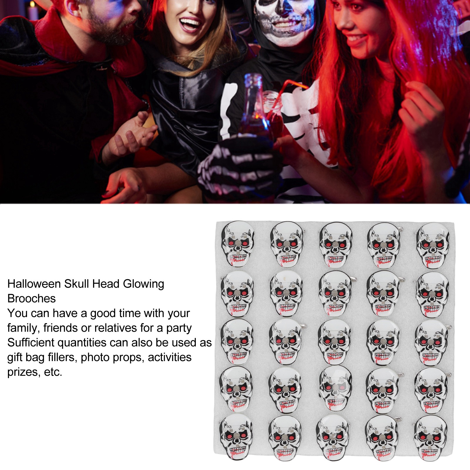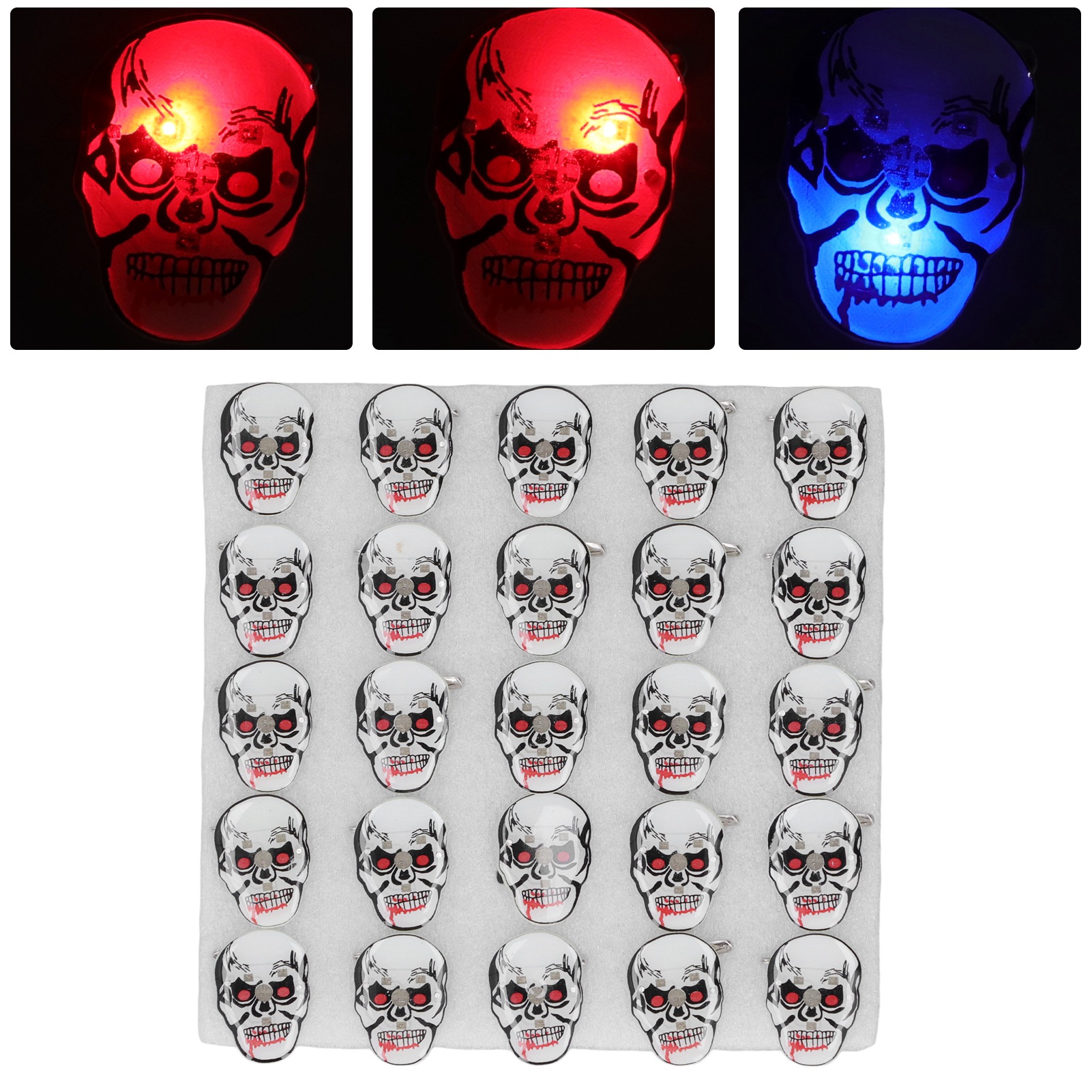 25 Pcs Halloween Flashing Brooch Pins High Strength Plastic Skull Head LED Glowing Brooches for Carnival Party