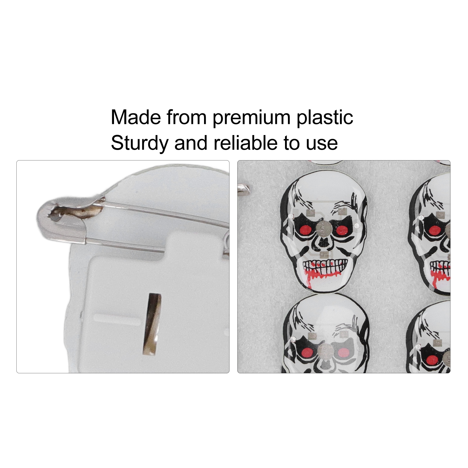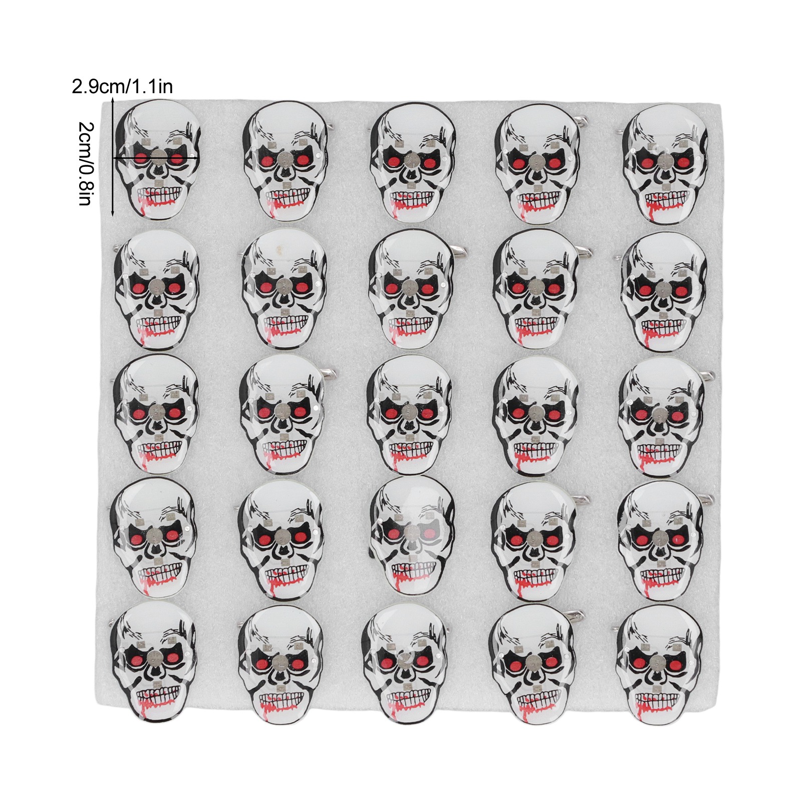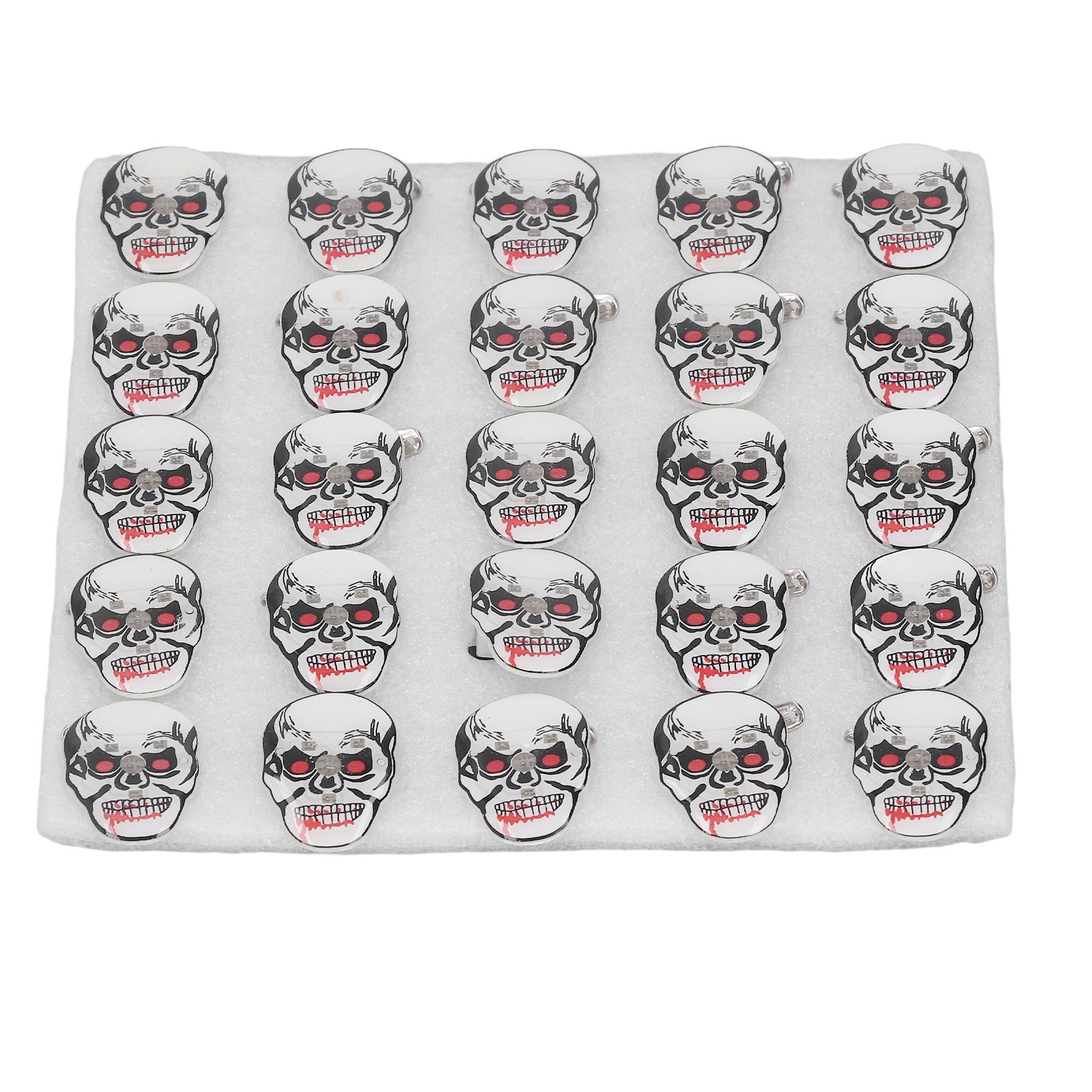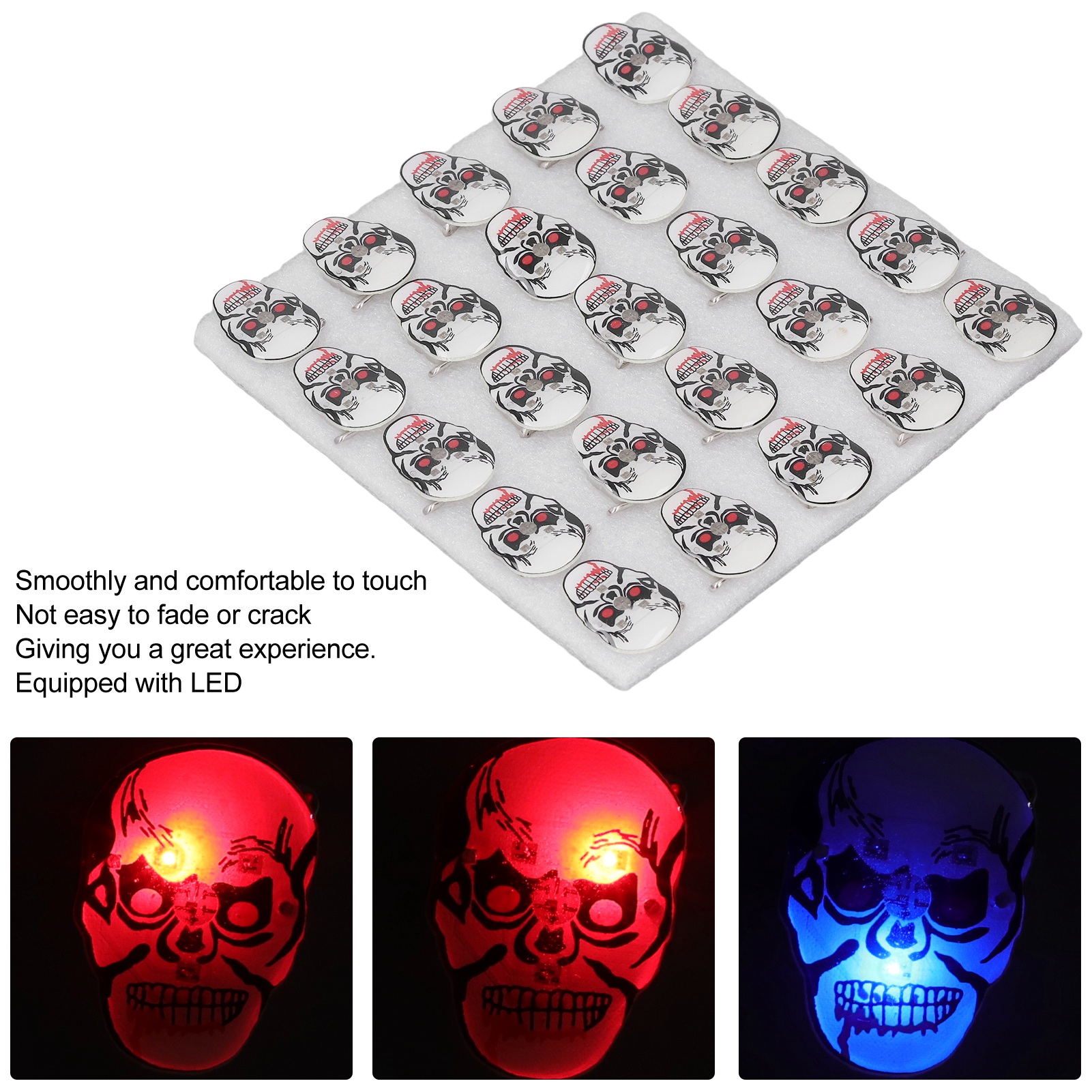 25 Pcs Halloween Flashing Brooch Pins High Strength Plastic Skull Head LED Glowing Brooches for Carnival Party