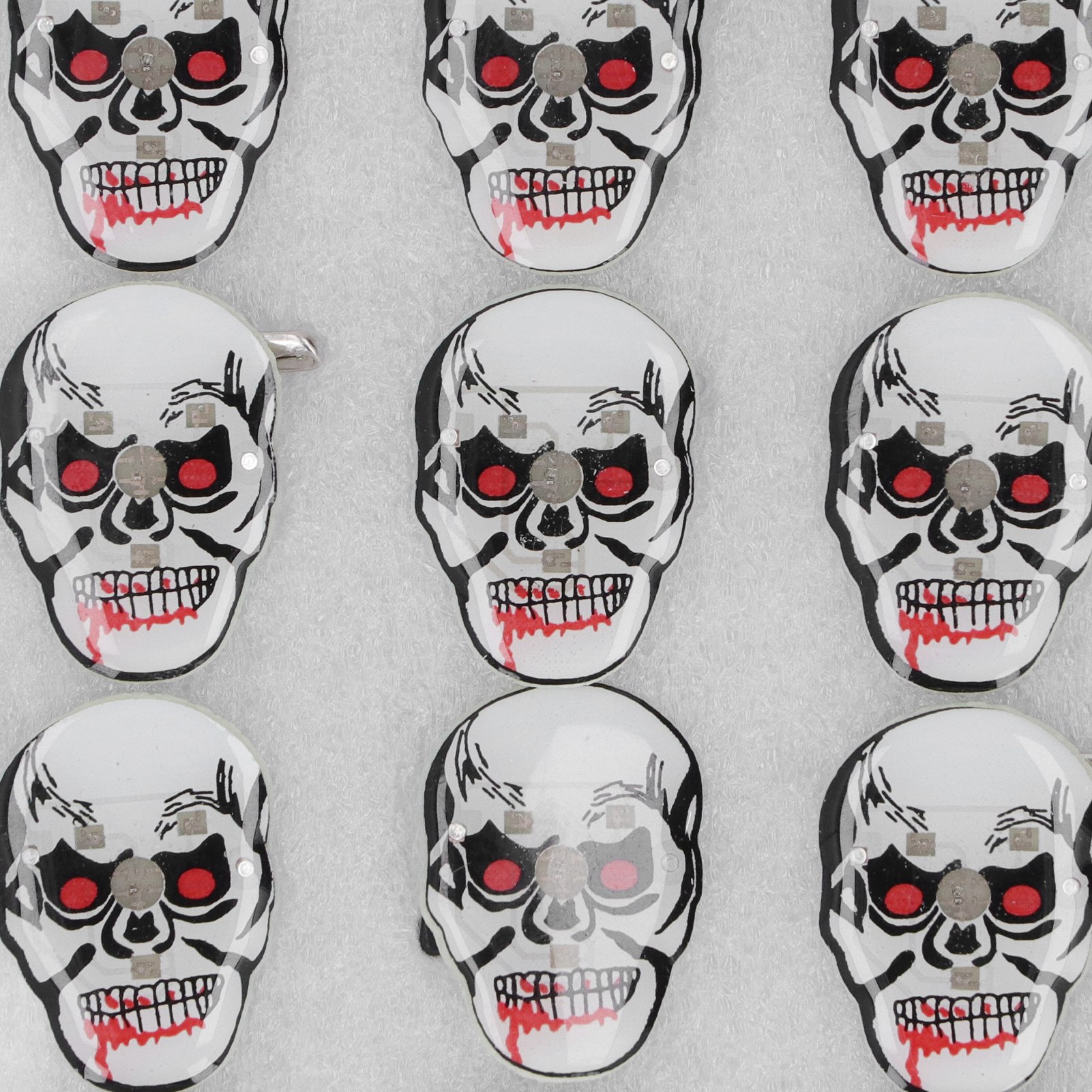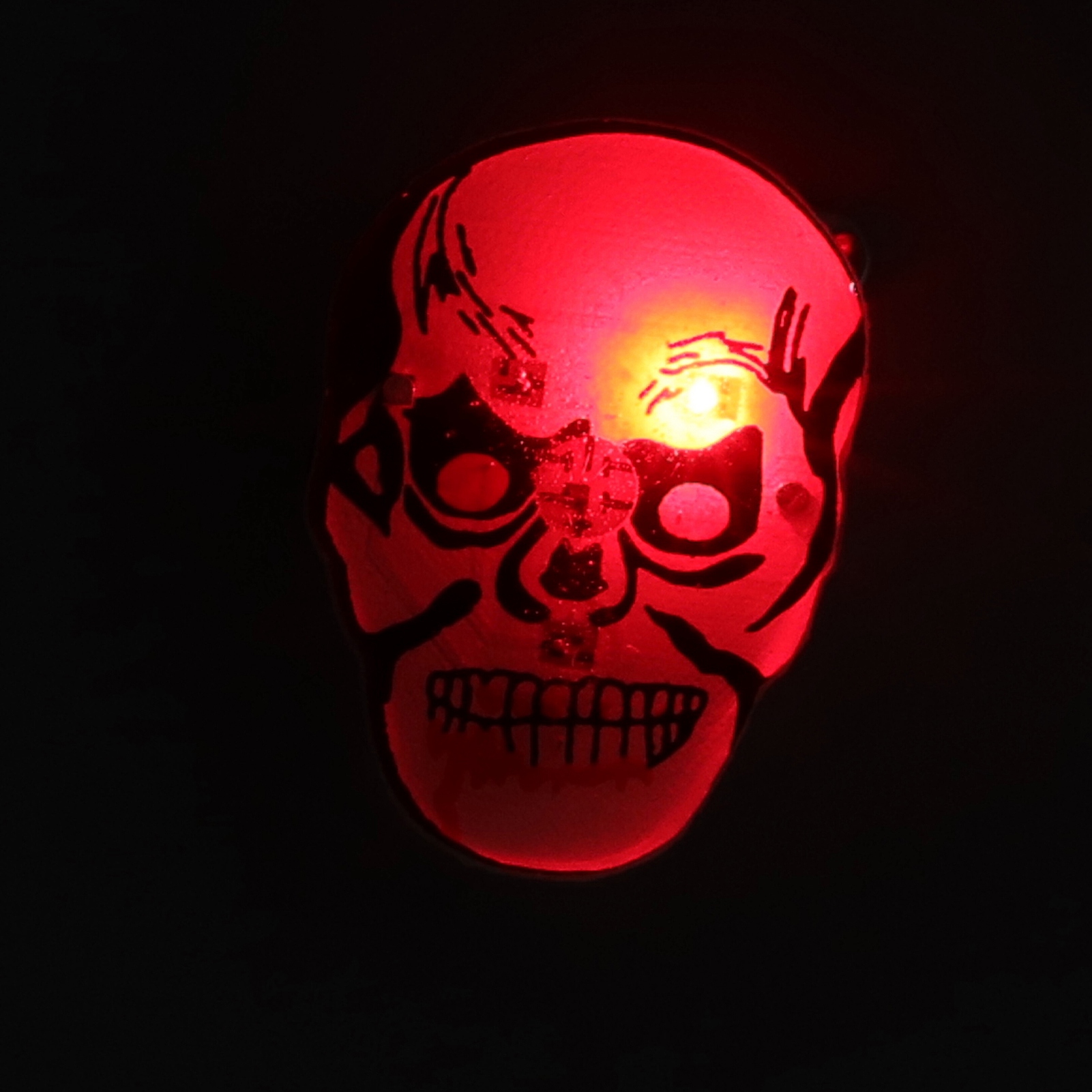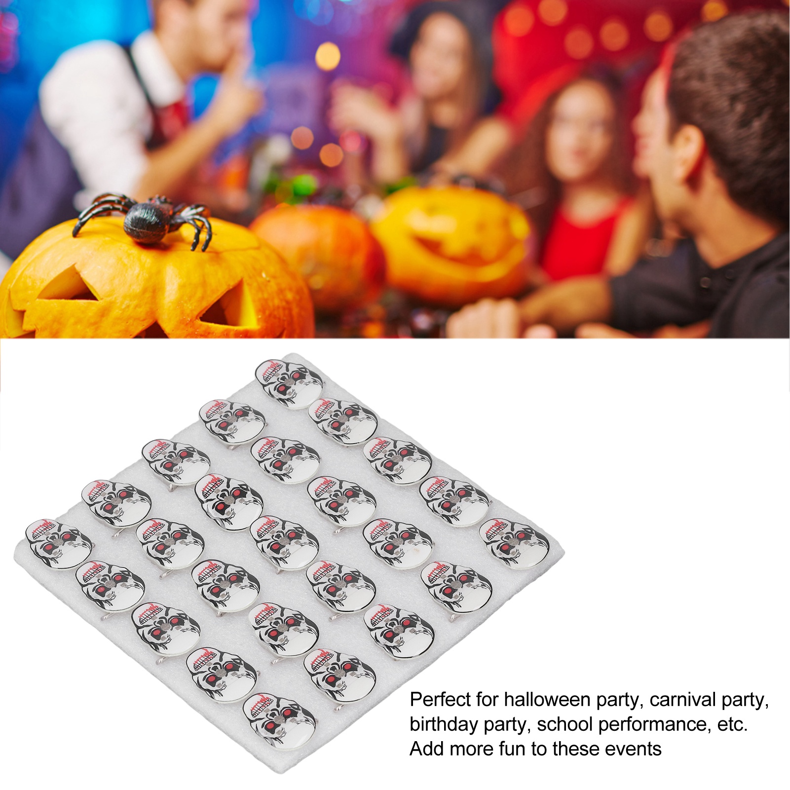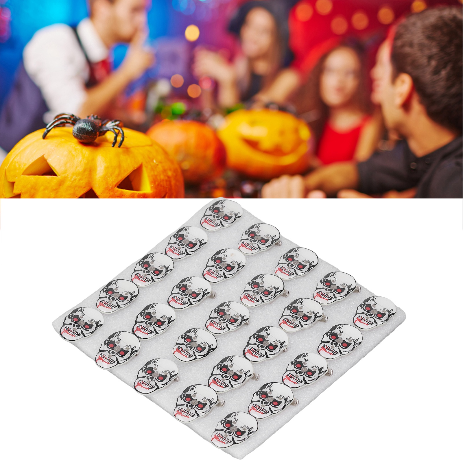25 Pcs Halloween Flashing Brooch Pins High Strength Plastic Skull Head LED Glowing Brooches for Carnival Party