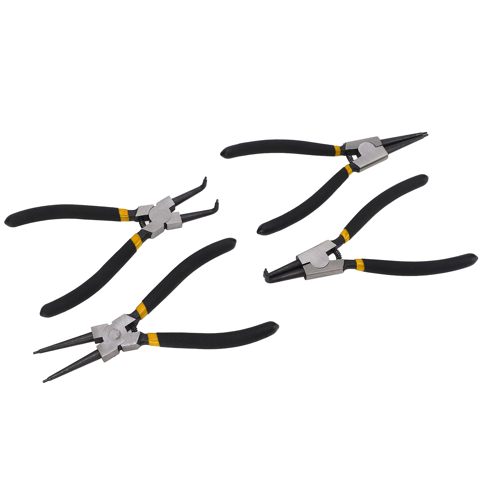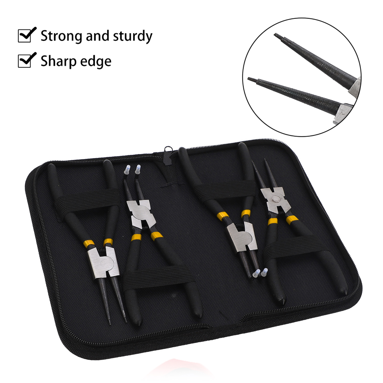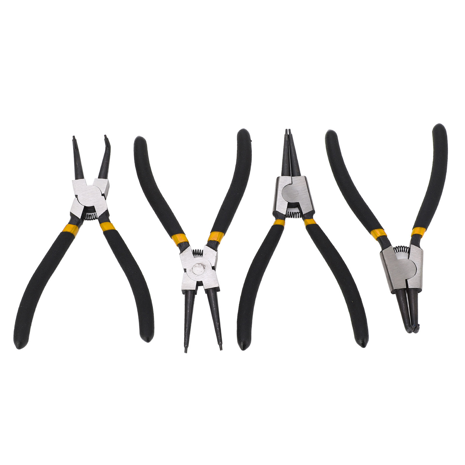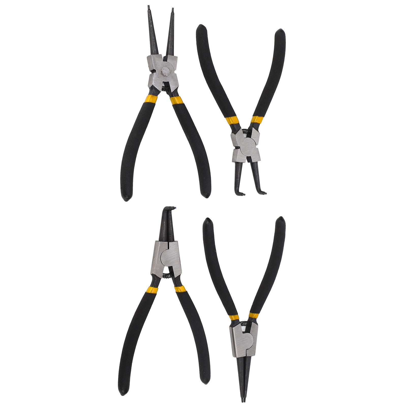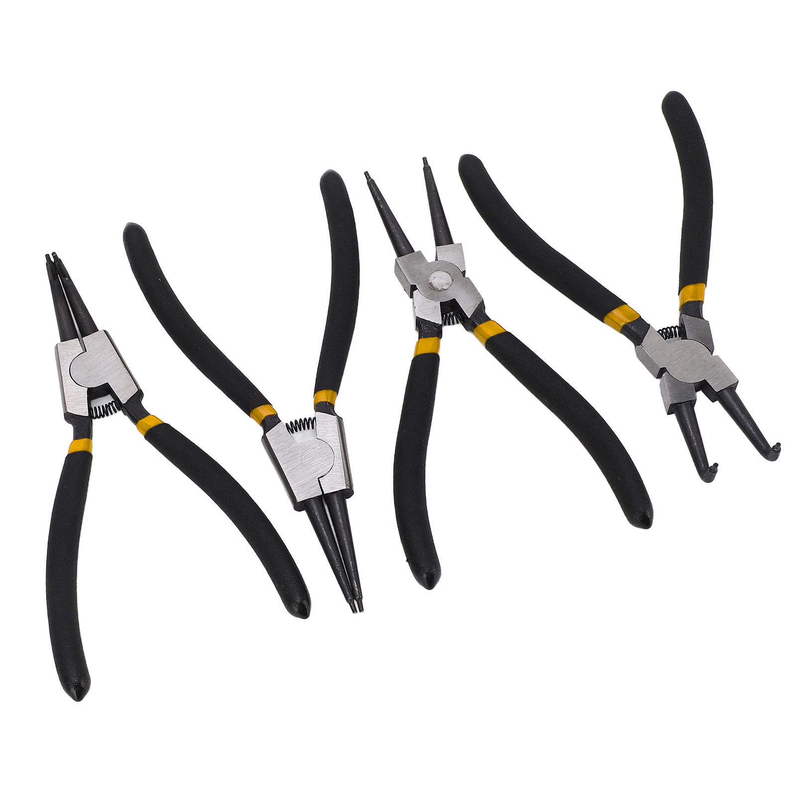 4PCs Circlip Pliers Set Steel Ring Plier Plastic Coated Handle Anti Oxidation Hand Operated Tool(Noir Double Section 7 Pouces )