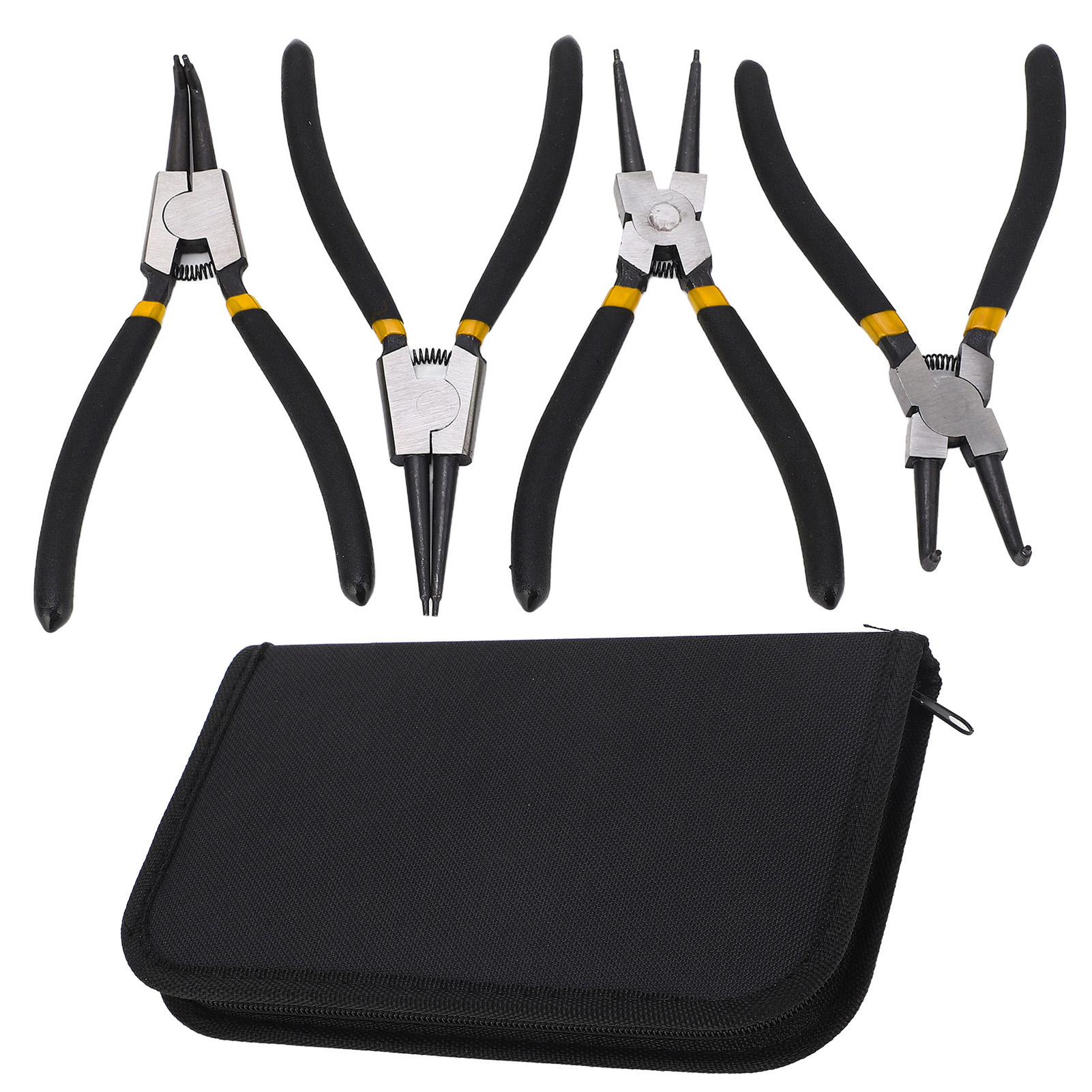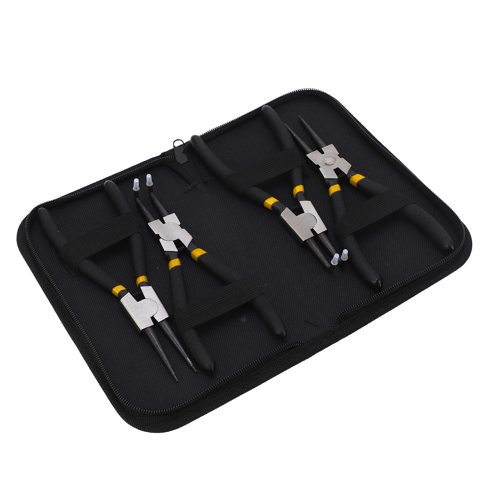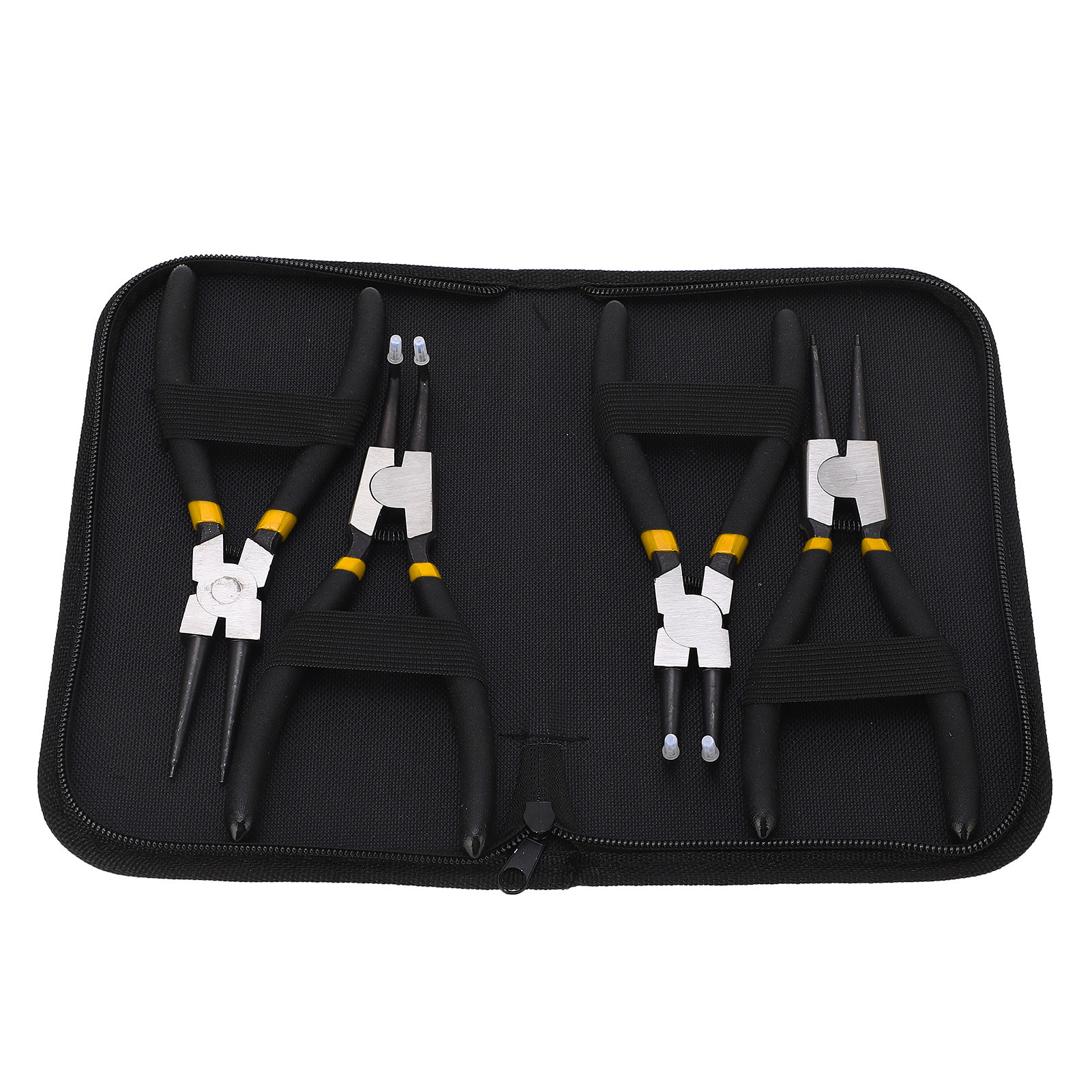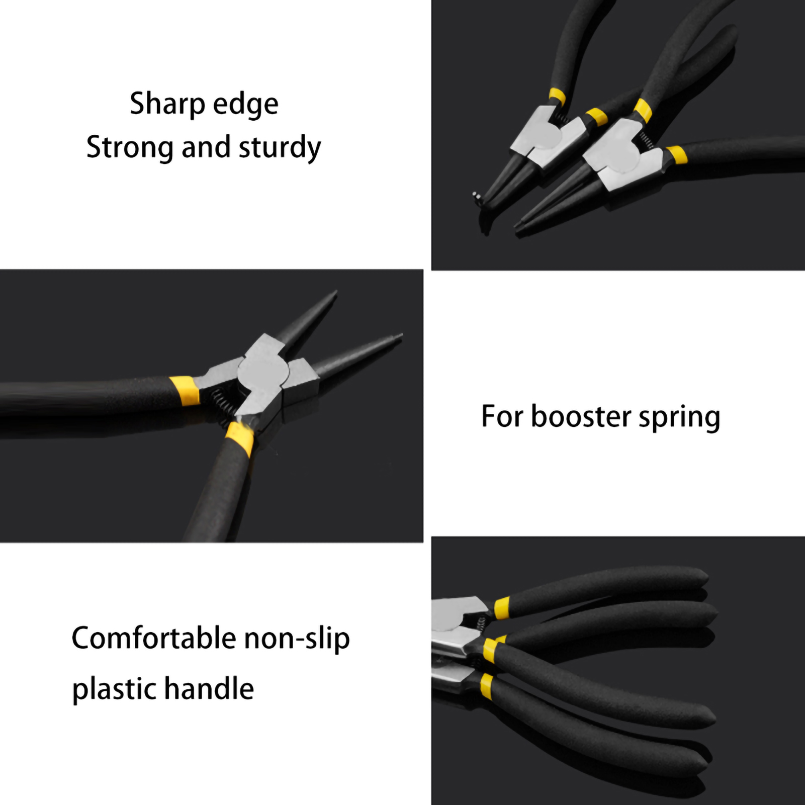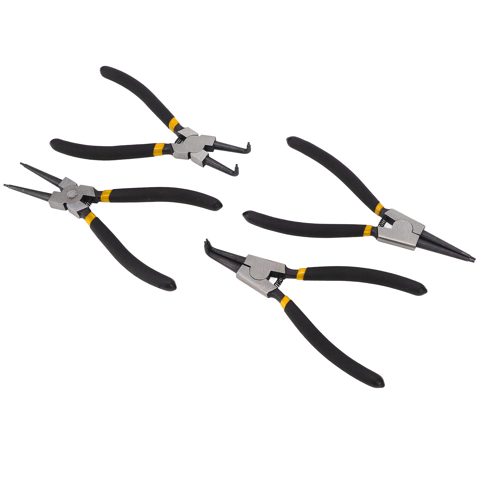 4PCs Circlip Pliers Set Steel Ring Plier Plastic Coated Handle Anti Oxidation Hand Operated Tool(Noir Double Section 7 Pouces )