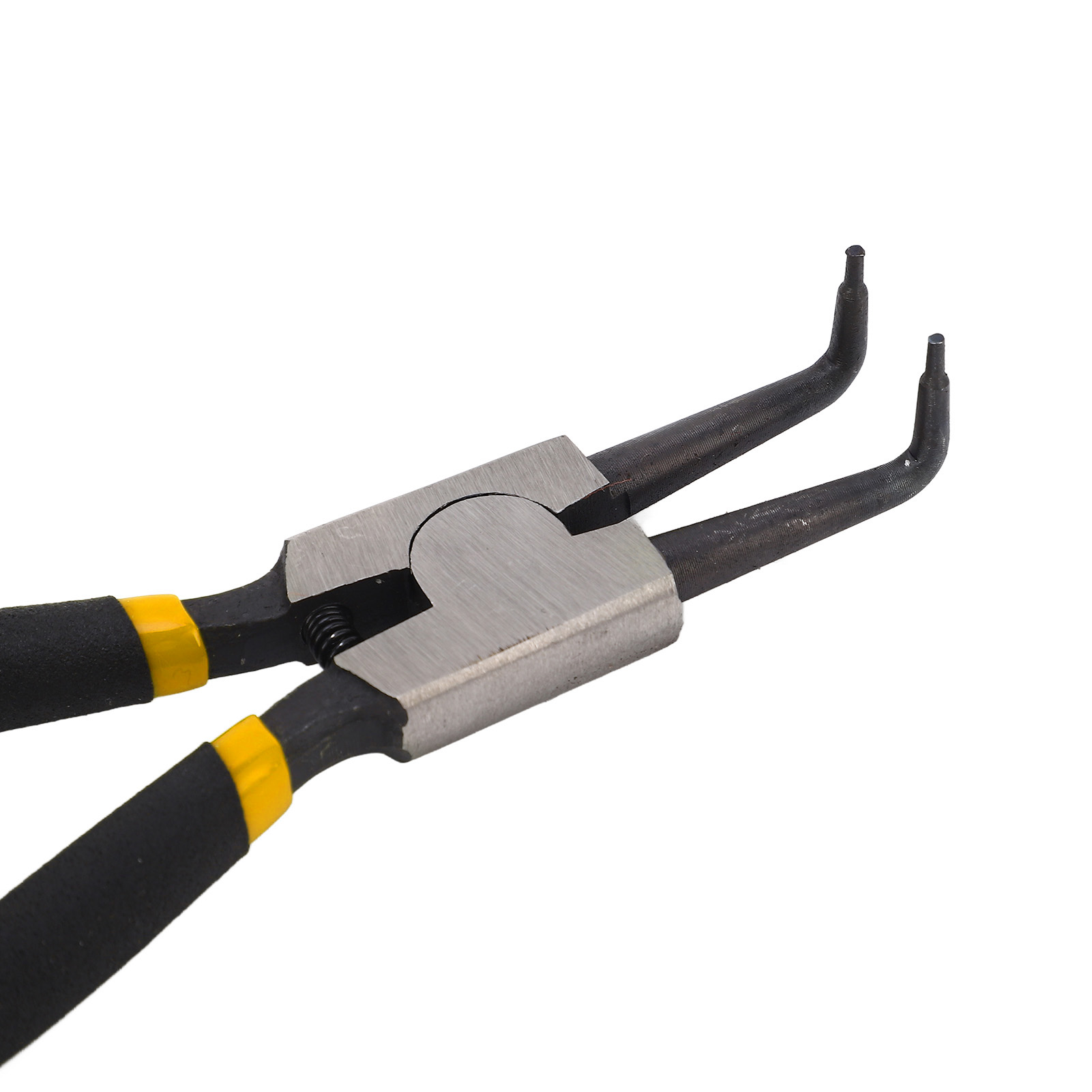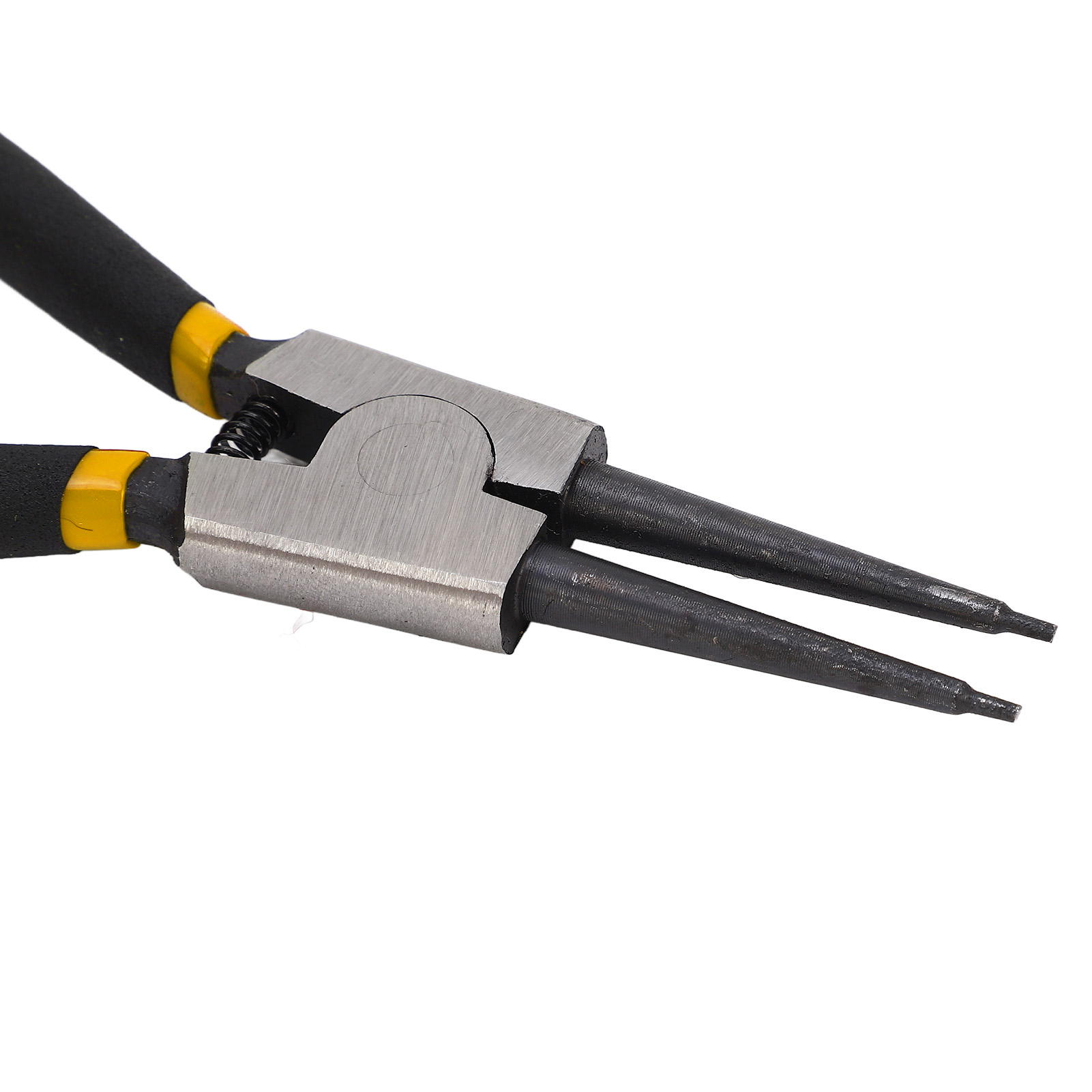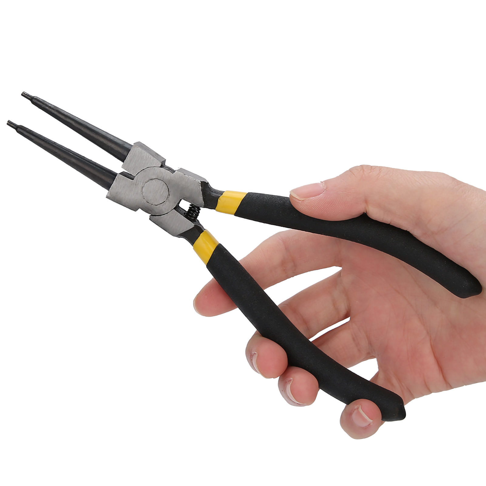 1、Plier is forged with high‑quality steel and of sharpness edges, strong and durable for anti‑oxidation and corrosion resistance, not easy to rust. 2、For booster spring, circlip Pliers supports automatic expansion in humanized shrapnel design for effortless work. 3、Comfortable non‑slip plastic coated handle makes this hand‑operated tool with comfortable grip. 4、Supports wide application, this ring plier is entitled with high performance according to strict rule. 5、And such plier can be used to take out or install the positioning circlip stuck between holes or shafts.