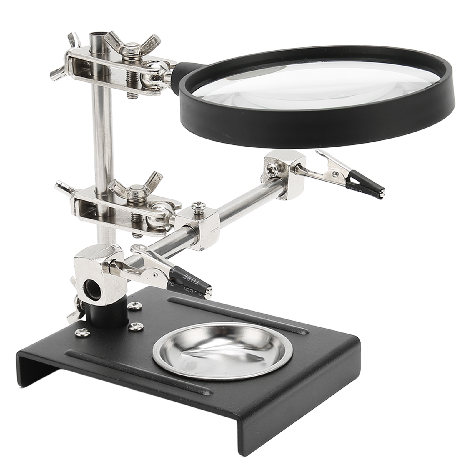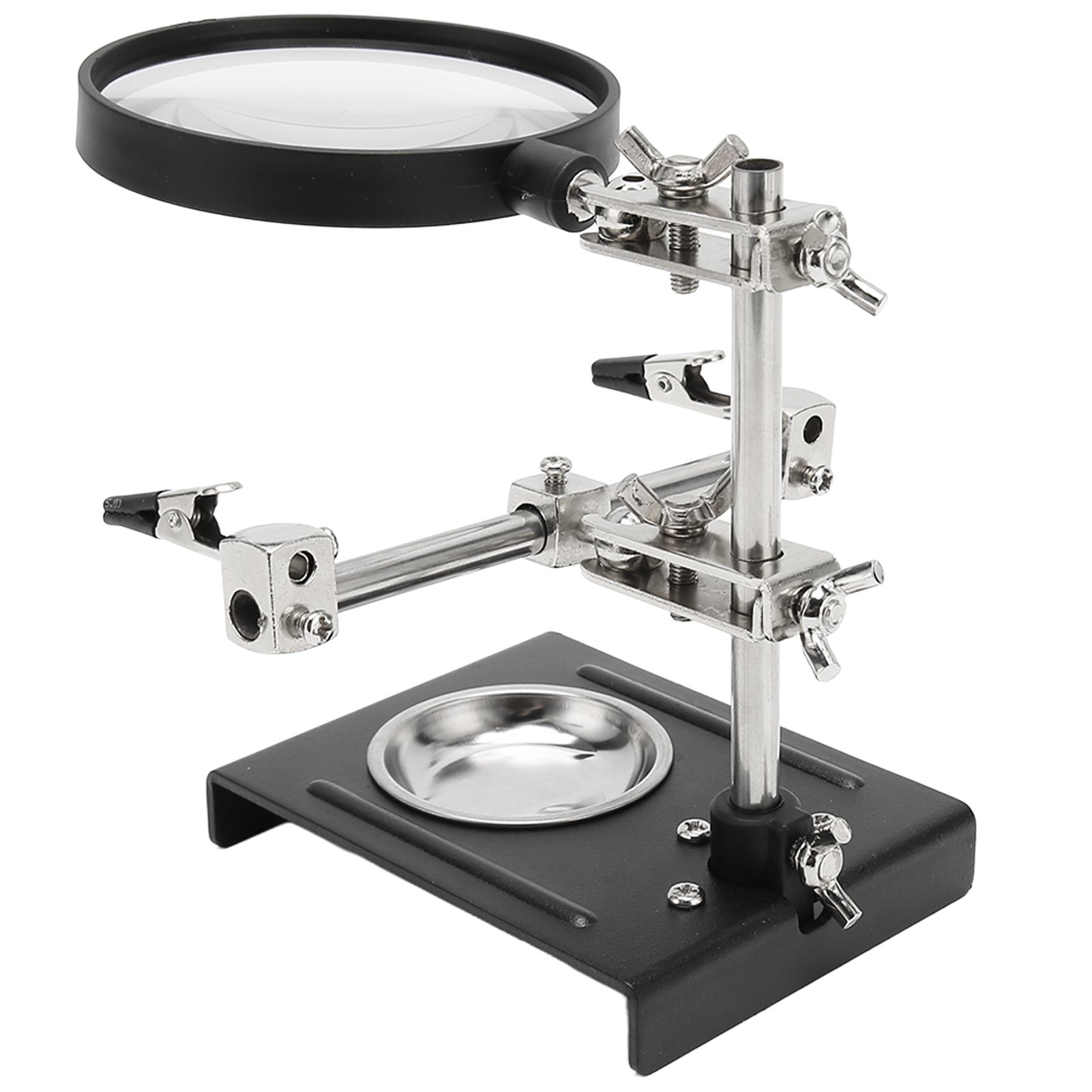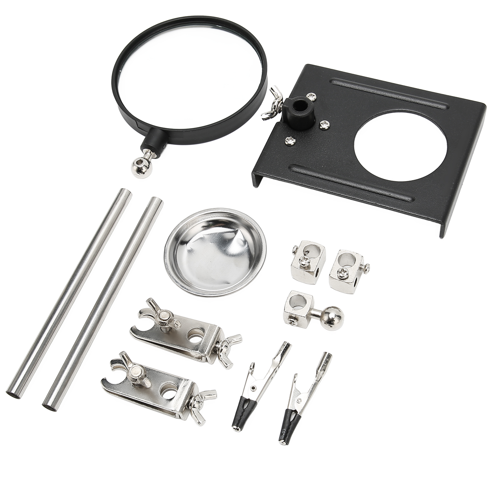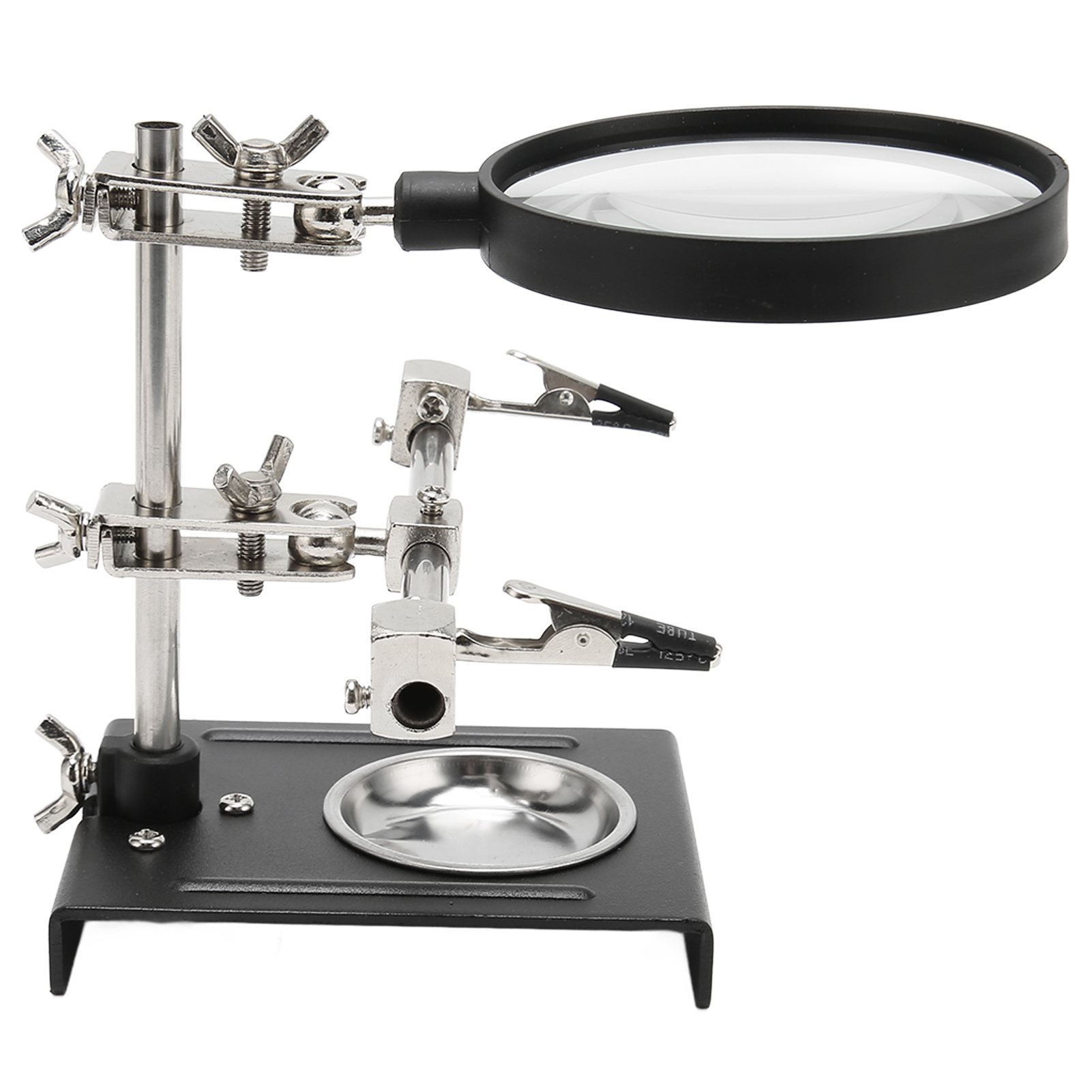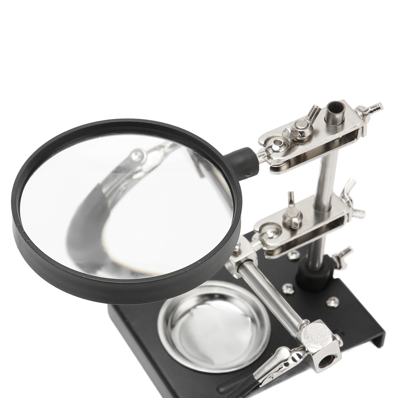 1、Optical Lens: Magnifying glass adopts optical lens, long time to see not dizzy, exquisite and delicate, true to present. 2、Foldable: Magnifier soldering station is adjustable, foldable, quick and easy to store, more convenient to use. 3、Ergonomic Design: Magnifier soldering station with ergonomic design, the bracket can be rotated and disassembled, easy to carry. 4、Adjustable Height: Metal clip fixed, adjustable height up and down, strong and durable, easy to repair and identify. 5、Stable Base: Magnifying glass station adopts a stable base, can be assured that the clip items, maintenance identification is not easy to fall over.