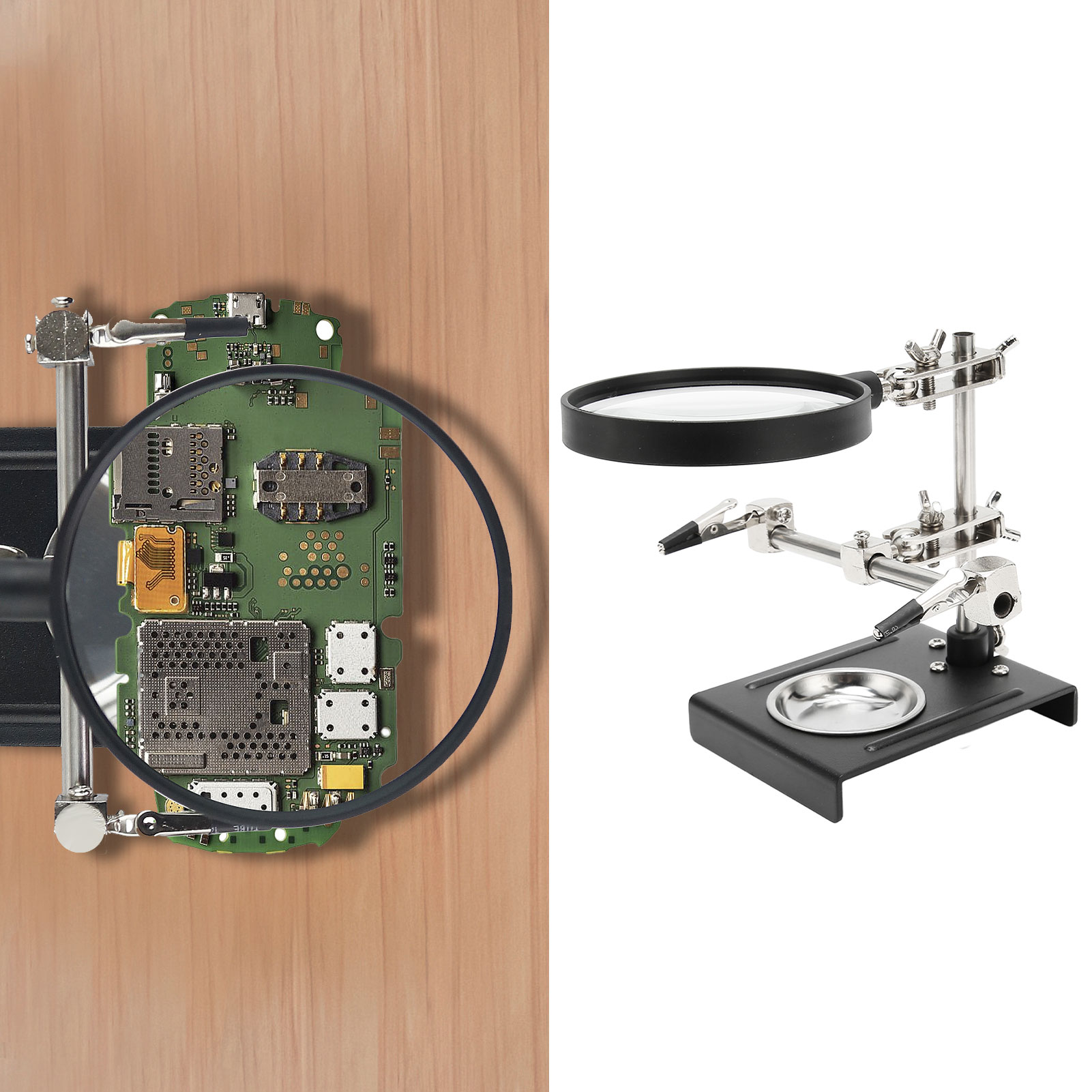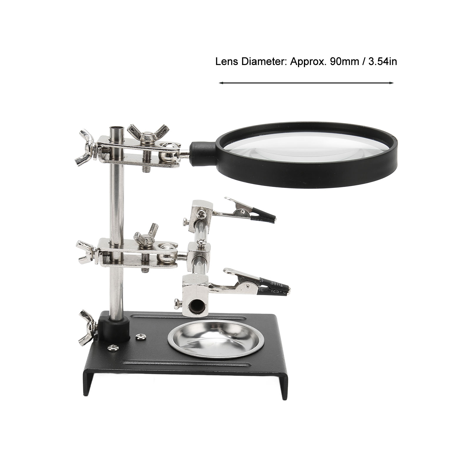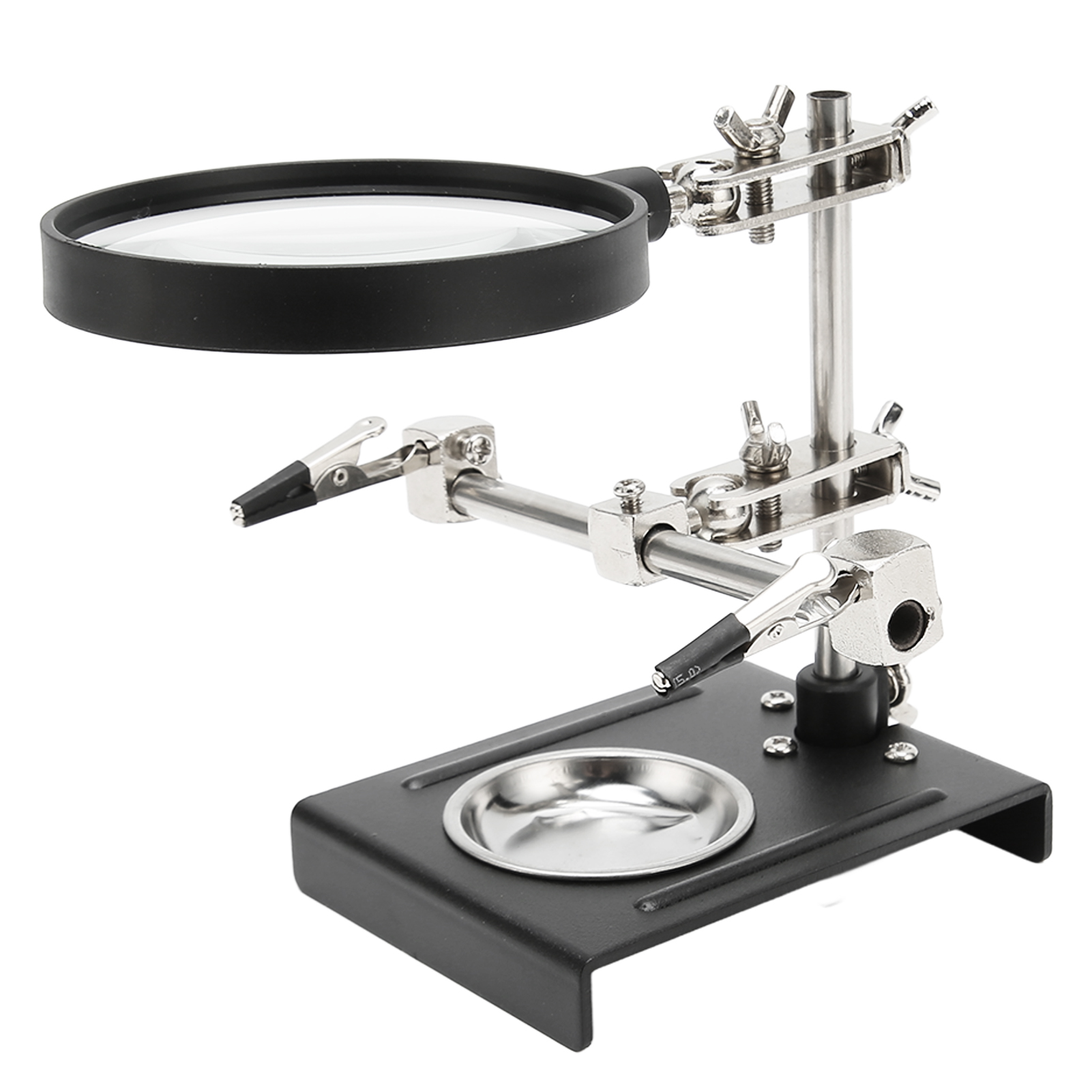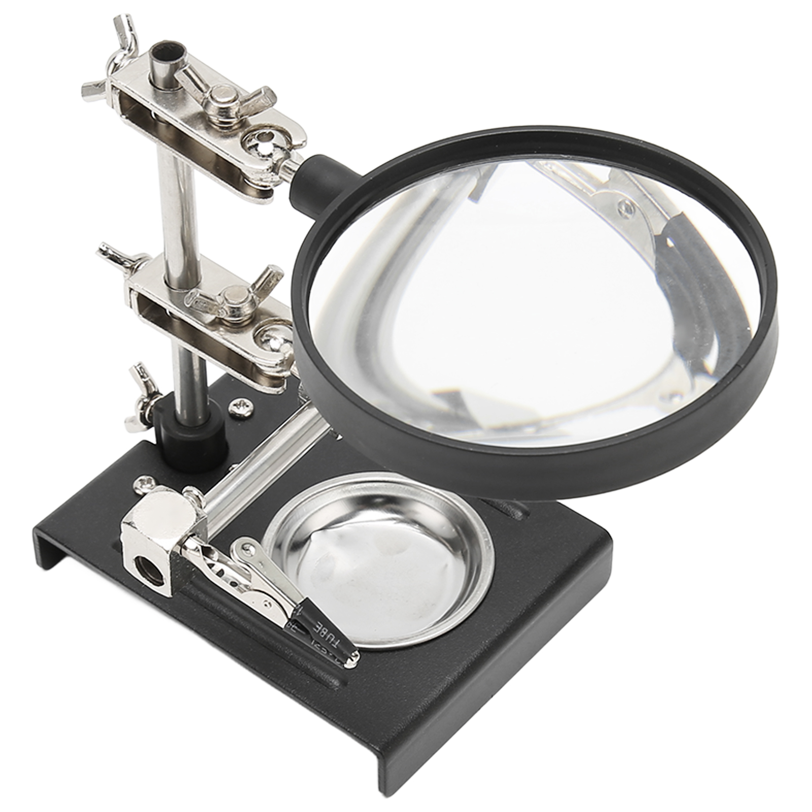1、Optical Lens: Magnifying glass adopts optical lens, long time to see not dizzy, exquisite and delicate, true to present. 2、Foldable: Magnifier soldering station is adjustable, foldable, quick and easy to store, more convenient to use. 3、Ergonomic Design: Magnifier soldering station with ergonomic design, the bracket can be rotated and disassembled, easy to carry. 4、Adjustable Height: Metal clip fixed, adjustable height up and down, strong and durable, easy to repair and identify. 5、Stable Base: Magnifying glass station adopts a stable base, can be assured that the clip items, maintenance identification is not easy to fall over.