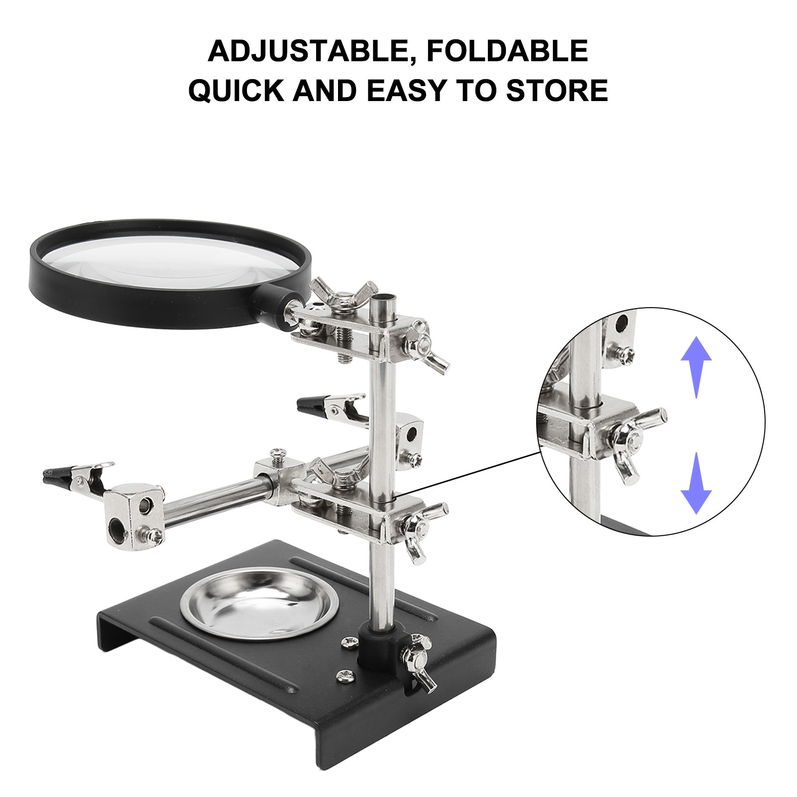 5X Magnifier Soldering Station with Clamp Foldable Adjustable Ergonomic Design Optical Lens Magnifying Glass for Maintenance