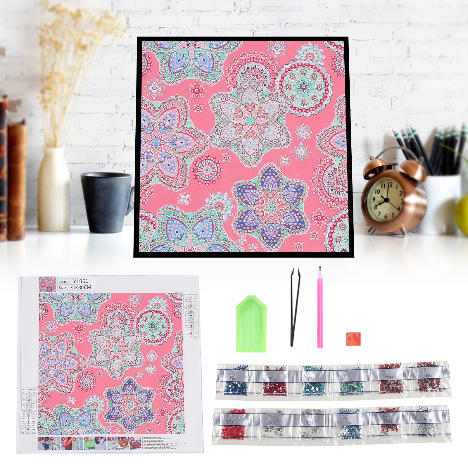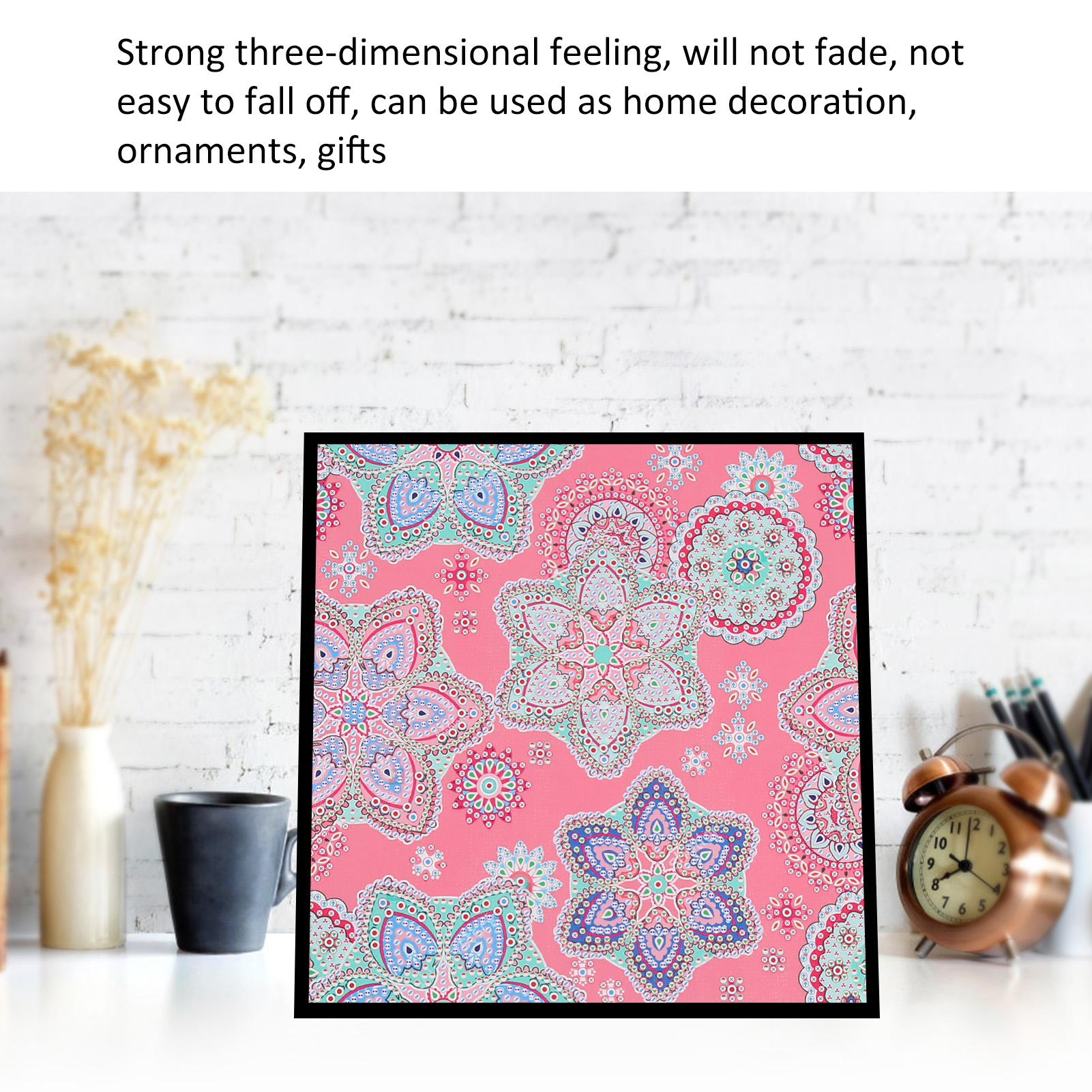 1、Rhinestones have a strong three‑dimensional effect, will not fade, and the sturdy hot adhesive has strong adhesion and is not easy to fall off. 2、The special‑shaped rhinestones are more beautiful than ordinary products, and the effect is exquisite when combined with the canvas. 3、You can design the position of the painting to decorate your living room or bedroom, which can be matched with different decoration styles. 4、The packaging tools are complete, including rhinestones, drill pens, tweezers, drill disks, etc., no need to prepare other tools. 5、After the diamond painting is completed, it can be used as home decoration, ornaments, etc., or as a gift for friends or family.