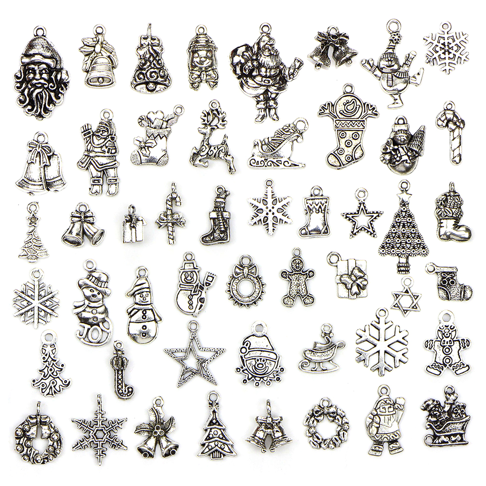 1、High quality alloy material can make sure the durability and stability of the product 2、Unique design with many different beautiful patterns, antique and vintage 3、High hardness, ideal for making bracelets, necklaces, pendants and hairpins 4、Including 50 kinds Christmas patterns, you can create unique crafts 5、Suitable for DIY jewelry, clothing decoration, key decoration, home decoration, etc.
