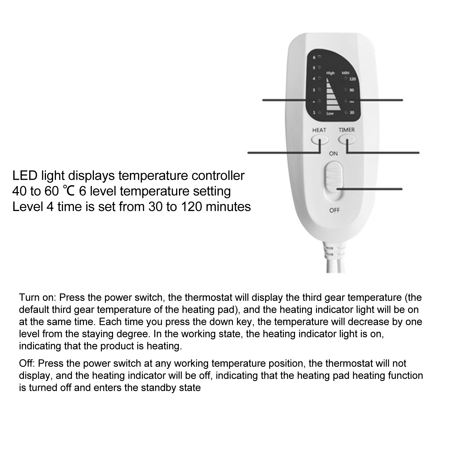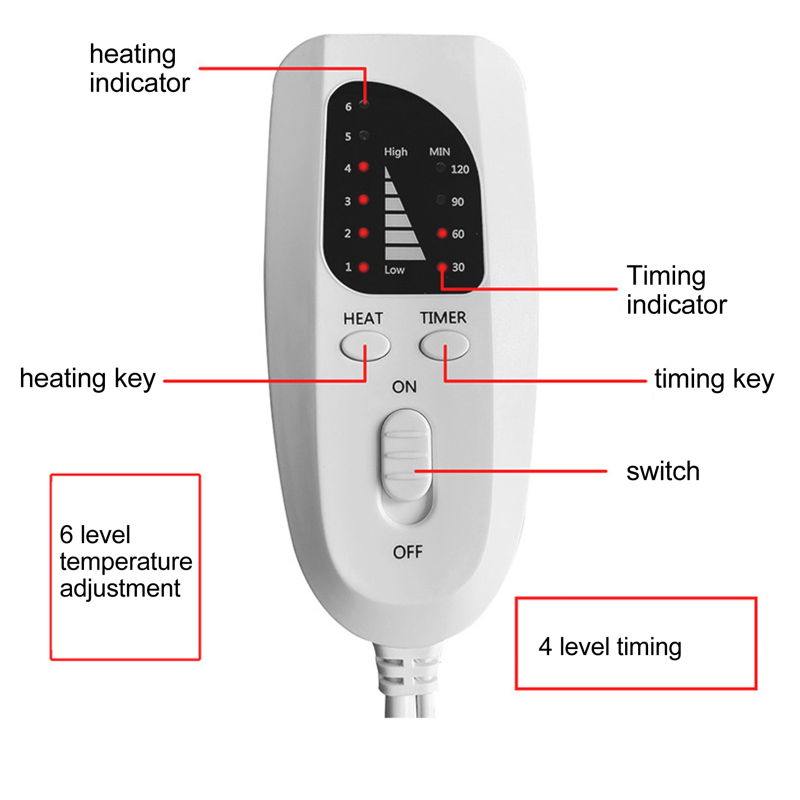 Time Setting: Level 4 time is set at 30-120 minutes for energy saving and safety