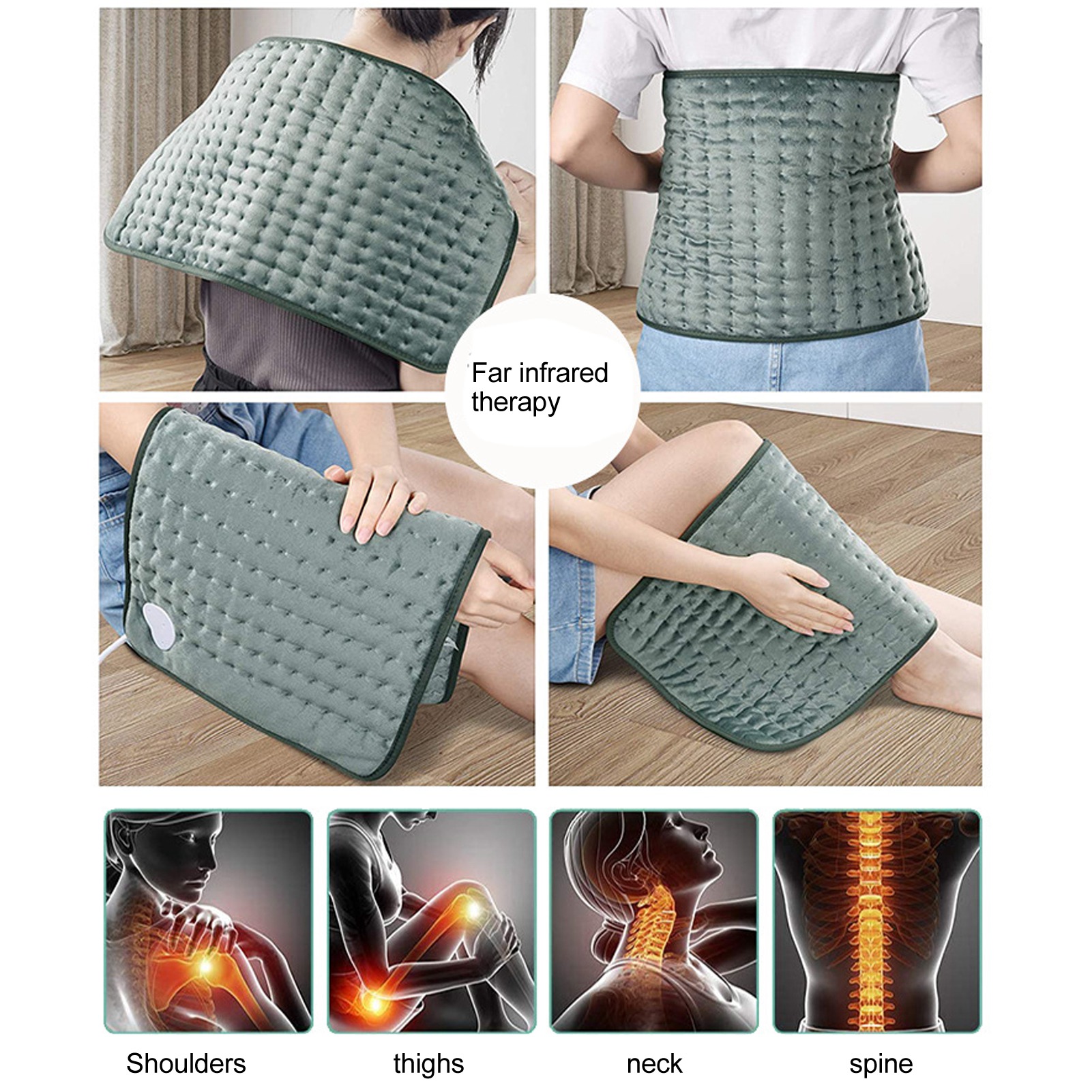 1、6 Level Temperature Adjustment: With 6 level temperature adjustment, the heating pad will automatically stop heating when be up to the target temperature to ensure safe use. 2、Soft Comfortable: The electric blanket is soft and fit, more comfortable to lock the temperature, and the warm time is better. 3、Easy Cleaning: Using fine workmanship, detachable and machine washable, disassembly and separation, easy to clean. 4、Elastic Straps: Elastic straps are provided to allow the heated pad to wrap around your shoulders, waist, arms or legs while you work. 5、Uses: Use it to cover your back, neck, shoulders, arms and legs to relax your muscles and keep you warm on cold days.