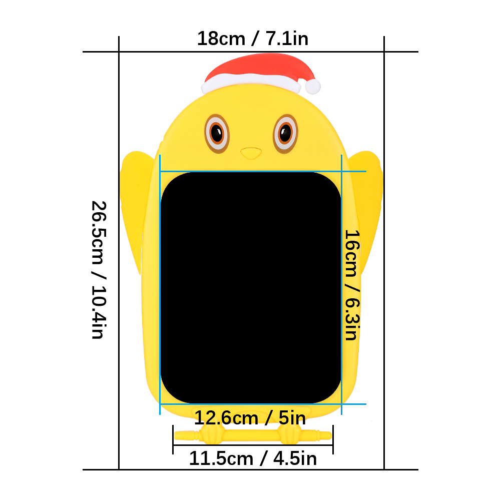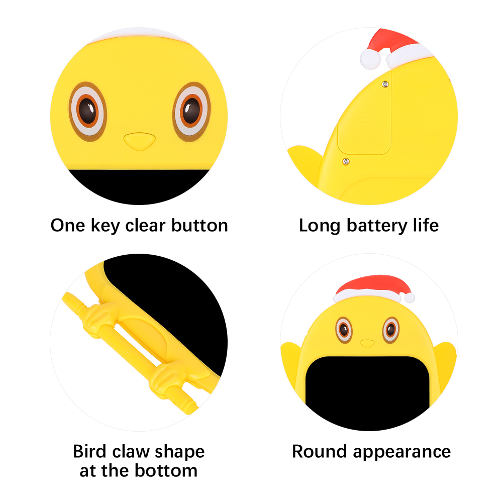 1、Owl shape Christmas cartoon designed, squeeze the soft rubber of the crown and wing, to place the innocent childish innocence. 2、Touching to write function, you can write real and delicate handwriting, and use a color pen to perfectly outline the colorful world in the child's heart 3、The one‑key clear designed fits children's habit of smearing freely, and there is a key to prevent accidental deletion. 4、Powered by button battery, with smart chip to reduce power consumption, each battery provides about 15000 erasing times, long standby time. 5、Using the smart drawing board to draw numbers, letters, Chinese characters, shapes, patterns, etc. can exercise children's imagination and thinking skills.