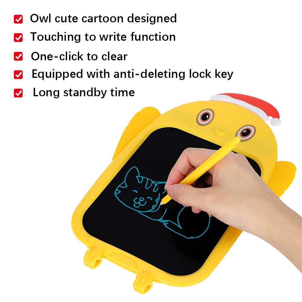 LCD Writing Tablet Christmas Hat Cartoon Owl Shape Children Yellow Drawing Graffiti Board