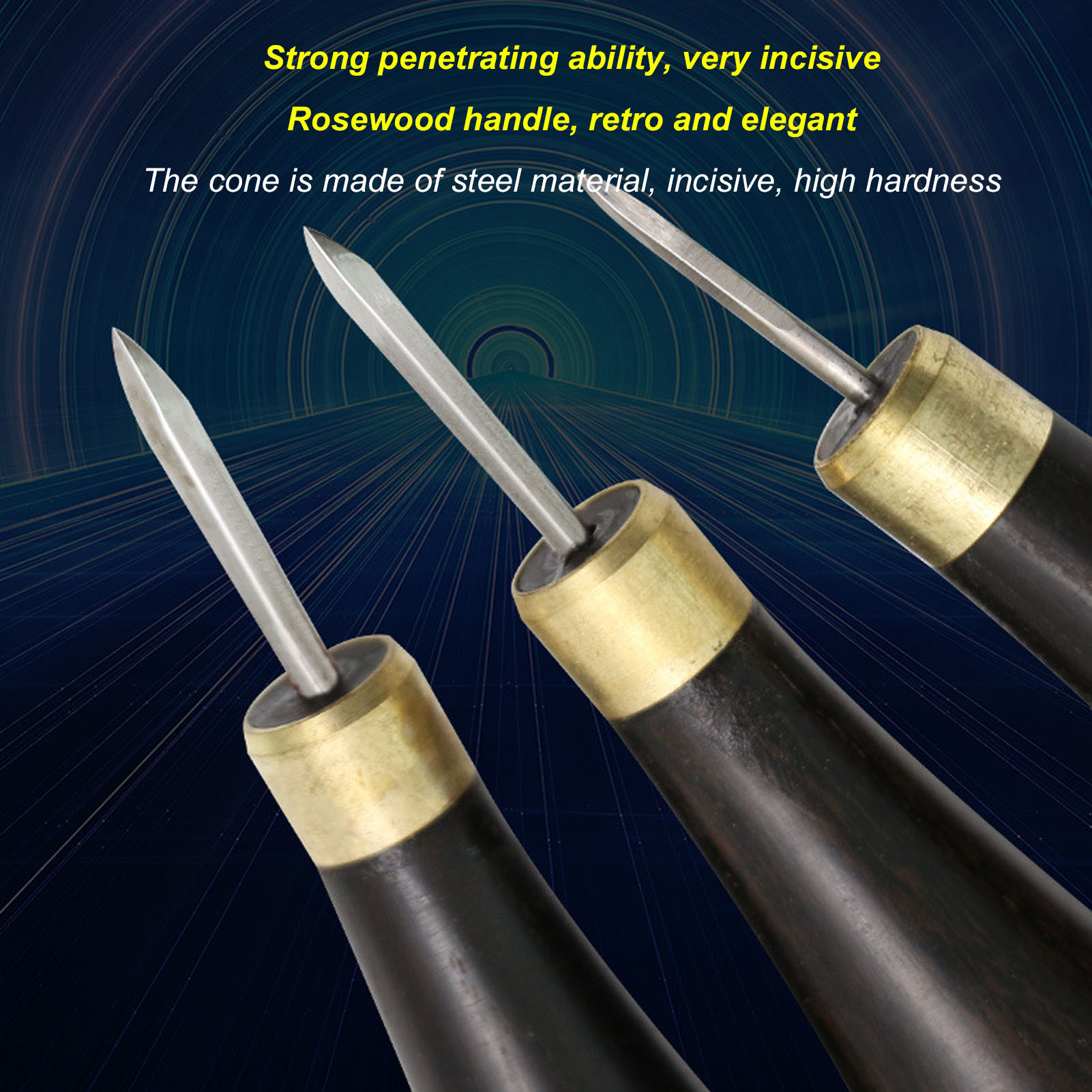 1、Strong Penetration: The leather craft sewing awl has a strong penetration ability and is very incisive for quick stitching. 2、Steel Material: The cone is made of steel material, incisive, high hardness, strong ability to penetrate leather, and strong practicability. 3、Smoother Surfaces: The Sewing Awl has smoother surfaces and is a professional rhomb shaped leather reamer tool. 4、Red Sandalwood Handle: The handle of stitching awl is made of red sandalwood, which is retro and elegant, beautiful and practical. 5、Wide Application: Sandalwood stitching awl is suitable for leather perforation, sewing, leather stitching and other handcrafts.