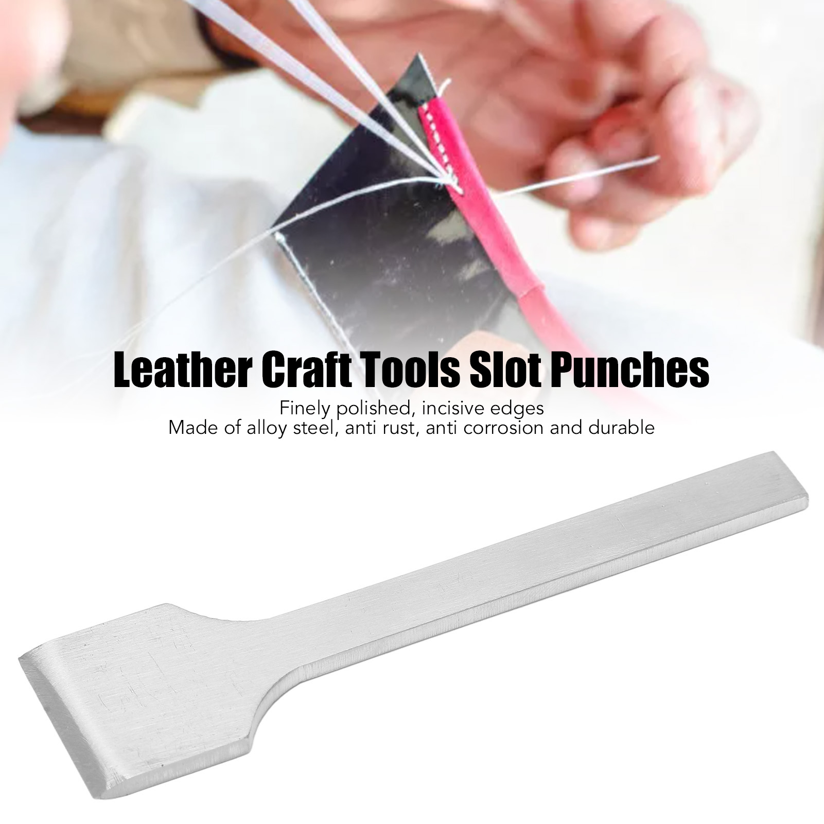 1、Fast Cutting: The leather stitching chisel sewing tool is designed with a flat blade knife, which is incisive and can be cut quickly. 2、Incisive Edges: Leather craft slot punches cutter is finely polished, with incisive edges, making your DIY work faster and improving efficiency. 3、Durable Material: The leather craft slot punch is made of alloy steel, which is strong, anti rust, anti corrosion and durable. 4、Multi Purpose: Straight punch cutter tools are mainly used for punching, sewing, engraving, punching, etc., ideal for leather making. 5、Ease of Use: DIY leather craft tool with mirror polished finish, smoother, easy to penetrate leather and pull out.