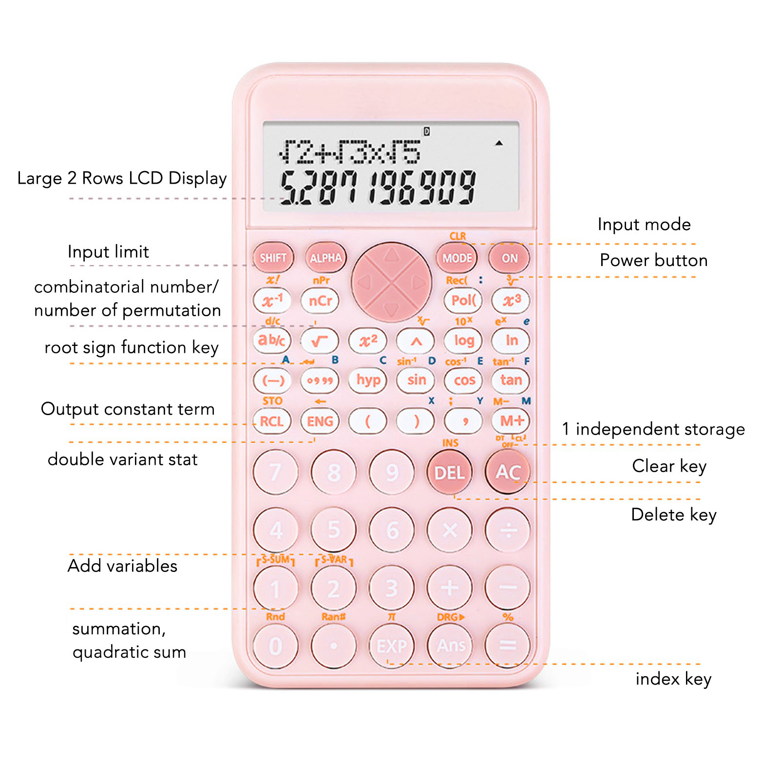 Scientific Calculator 2 Rows LCD Display 240 Functions Battery Powered Desk Calculator for Office School Business