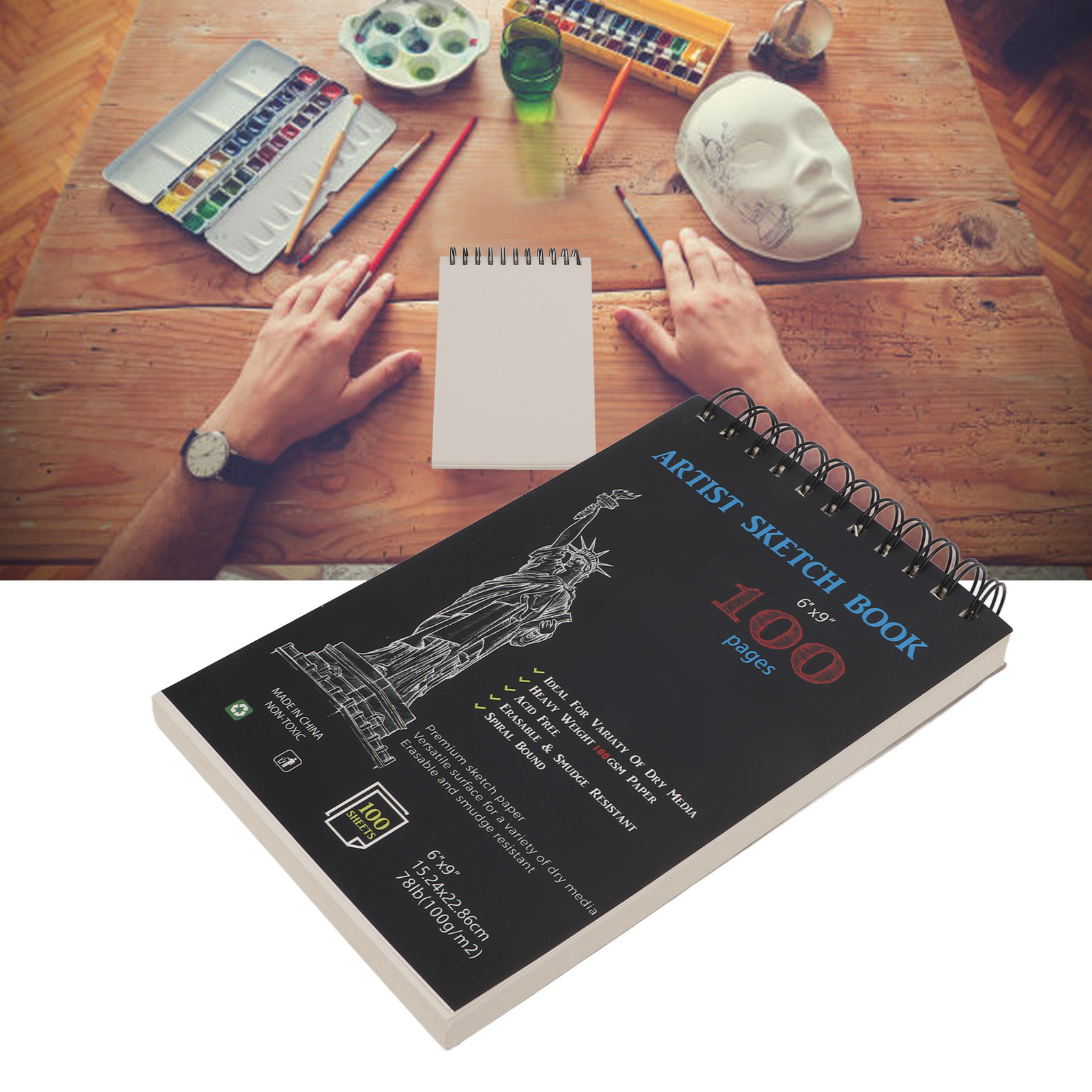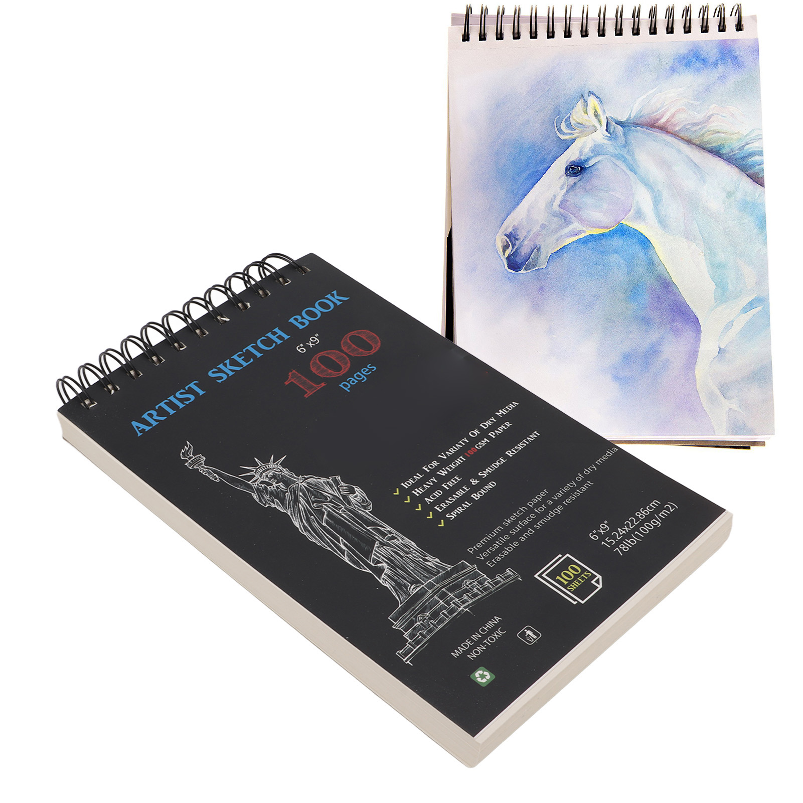 1、Acid Free Paper Material: The drawing paper is made of acid free paper, which is white, thick, strong, glossy and durable 2、Glossy Writing: The paper in the sketch books is very beautiful and glossy when drawing, and the paper can also be easily torn and used alone 3、Spiral Binding Design: The upper of the sketch books has a strong spiral binding design, suitable for left handed and right handed people, providing better page turning effect 4、Hard Bottom Pads: The hard cover of the blank sketchbook is made by hand, these hard bottom pads all help protect your artwork 5、Scope of Application: The sketch paper is suitable for adults and children. Can be used in most media, including all dry media such as charcoal, pencil, some water color, acrylic paints, inks, etc