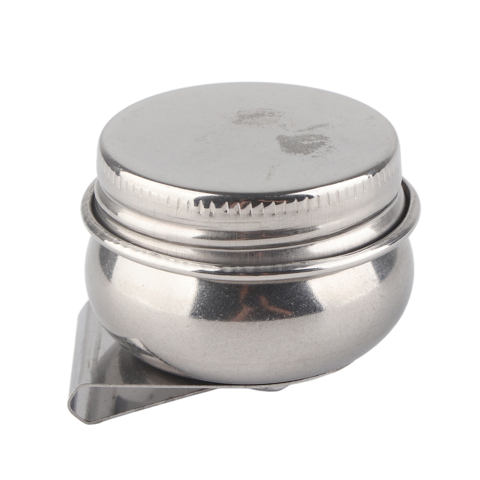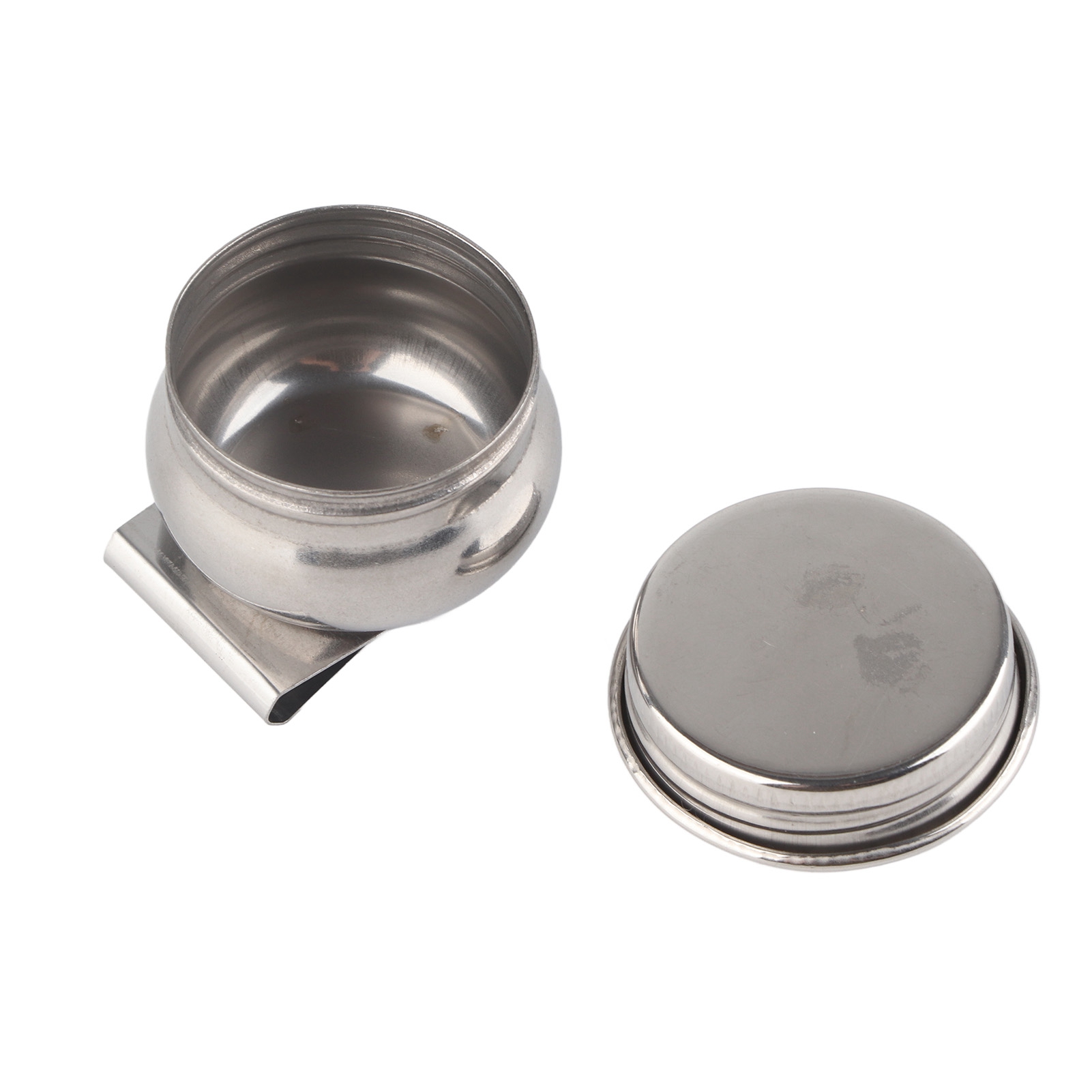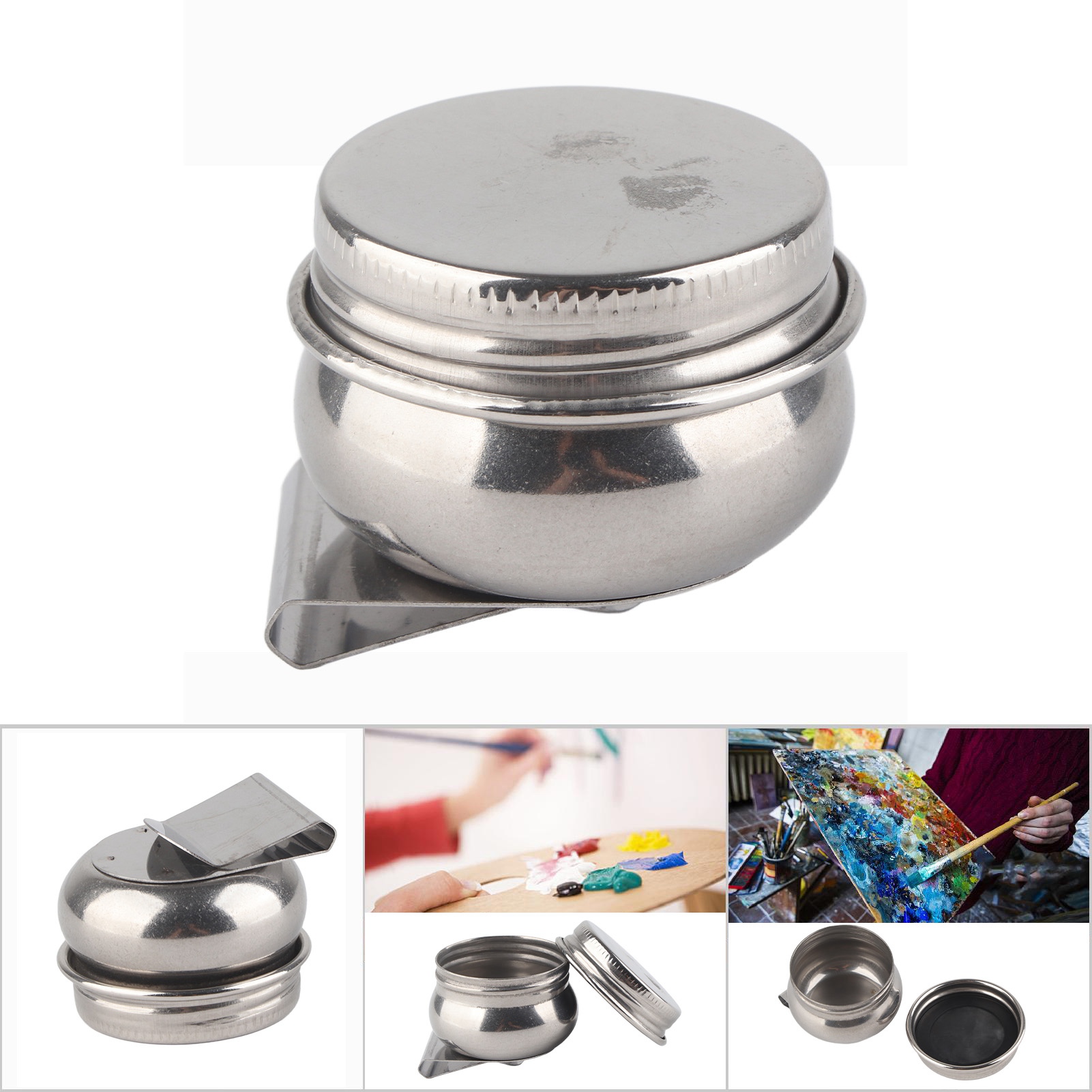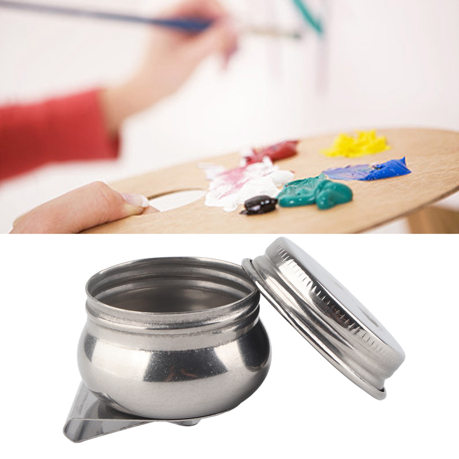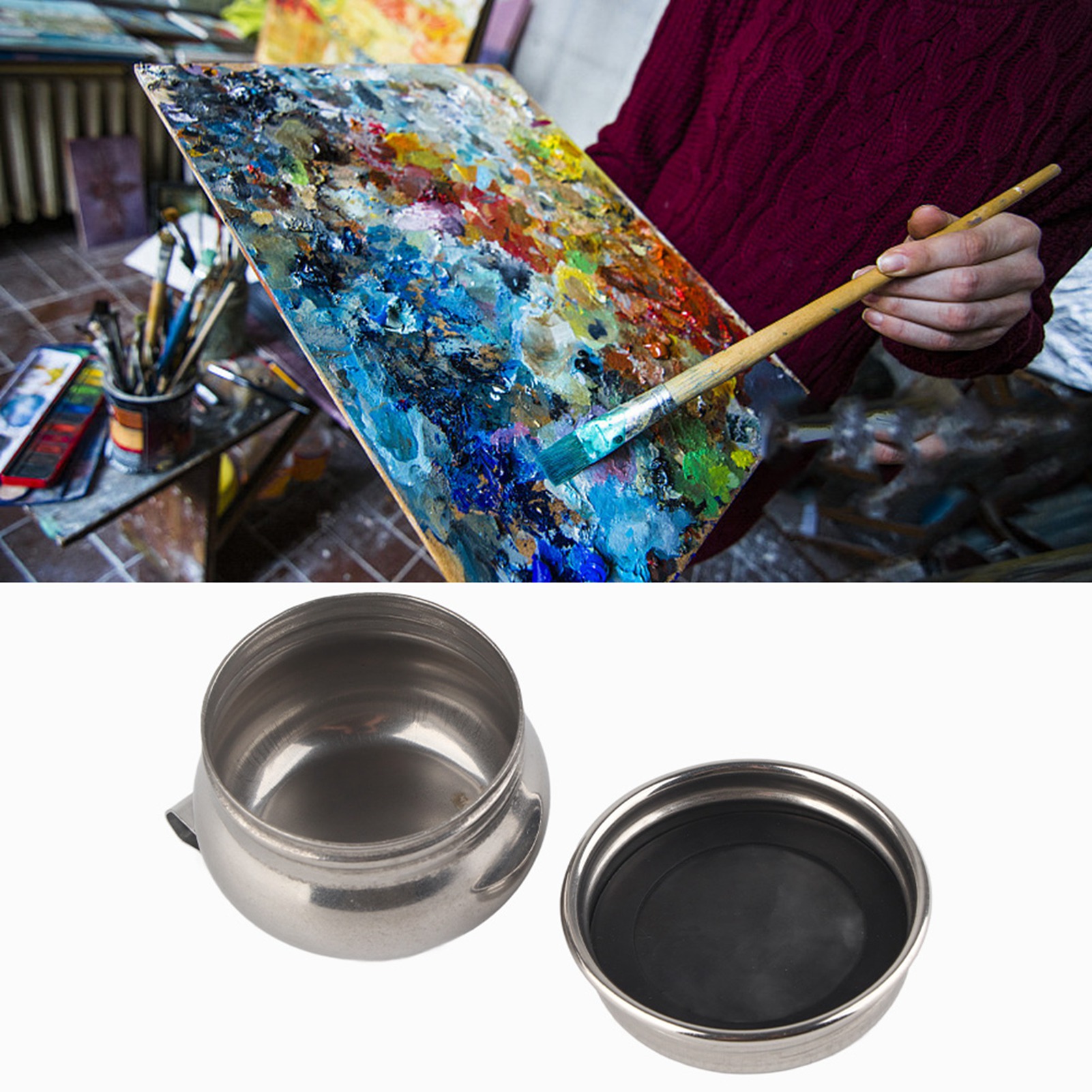 1、It is made of stainless steel,not easy to rust and wear. 2、You can take it with you for outdoor painting,suitable for medium size oil painting. 3、It has special design to prevent leakage,more practical. 4、You can fix it on your color palette steady and stable,convenient. 5、Some of these types equipped with a cover to seal the cup.