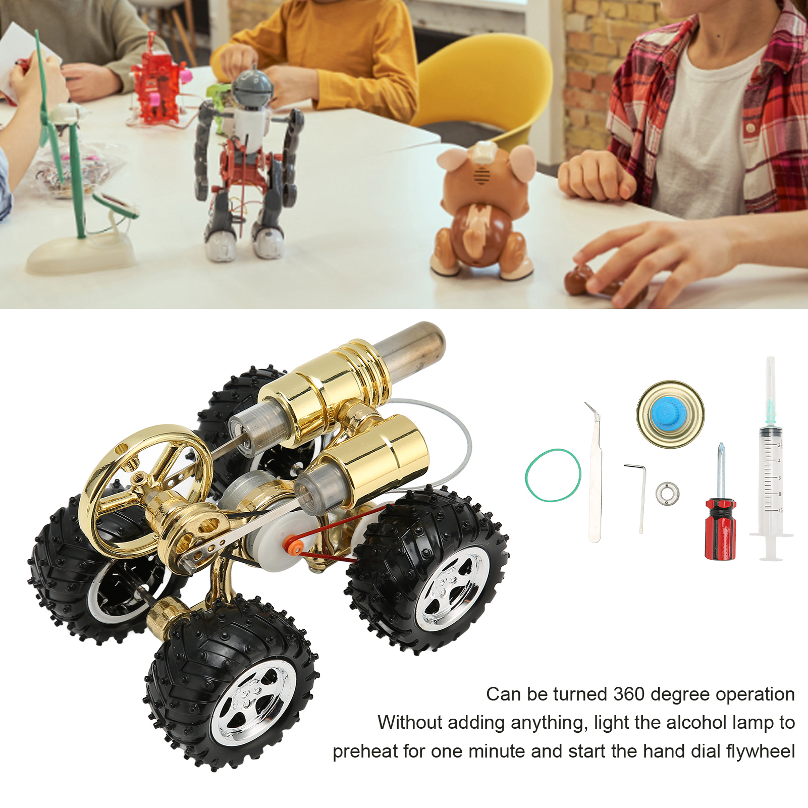 1、Novel Design: The Stirling engine model is creatively combined with the toy car, powered by the Stirling engine model, driving a simple toy car walking, with a variety of ways to play, full of fun. 2、Direct Use: The product itself has been assembled and can be used directly, its excellent quality and exquisite appearance also make it a high collection value and can be used as a high grade gift. 3、Exquisite Appearance: Lifelike appearance of the car, both beautiful and texture, polished meticulously, bright colors, not easy to rust and discoloration. Slot fixed alcohol lamp, more safe and reliable. 4、Function: By operating the engine, children will observe and understand the operation process, and more intuitive understanding of the working principle of the Stirling engine, thus deepening the interest in physics. 5、Wide Range Of Applications: The model kit has a wide range of applications, gifts for children's science projects, physics mechanical learning models, props for teachers to demonstrate in the classroom, to friends, family, parents, children, and so on.