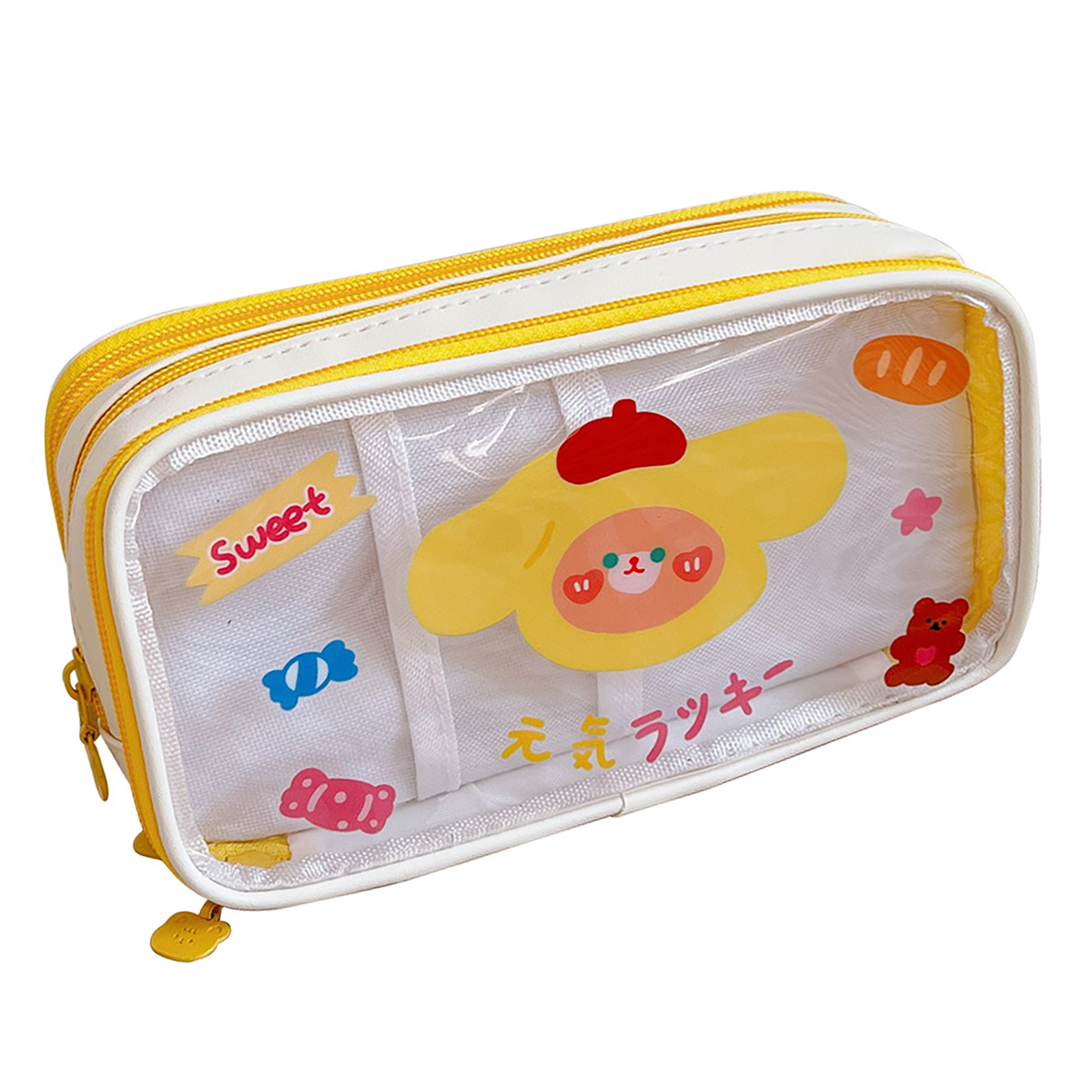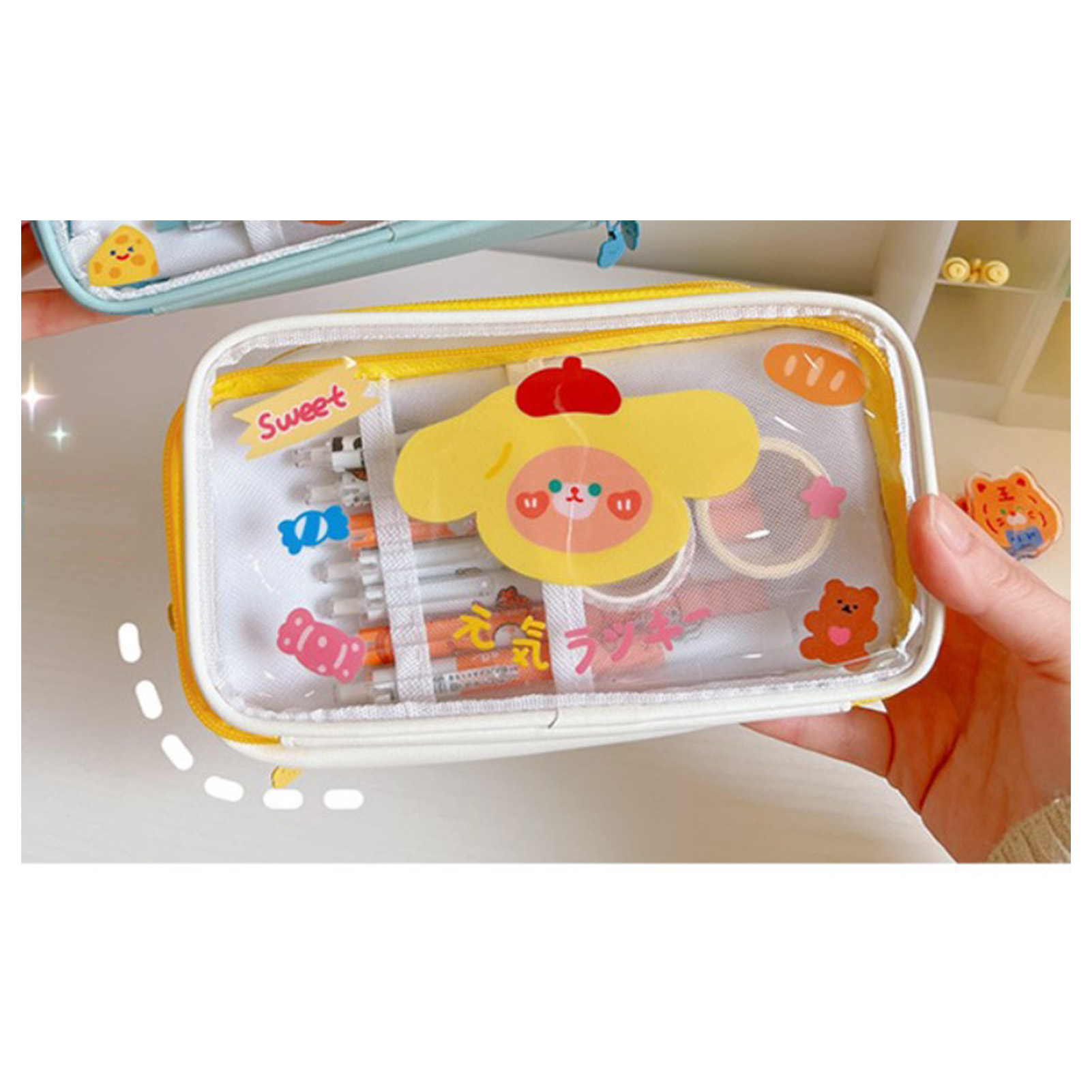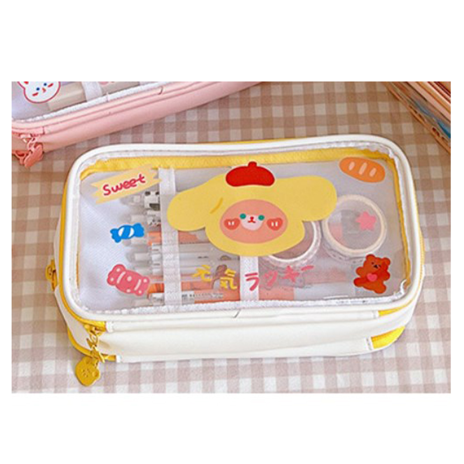 1、LARGE CAPACITY: The Cute pencil case has a large capacity and can hold a lot of stationery to meet the needs of students. 2、TRANSPARENT: Pen case with transparent design, easy to view and organize, easy to find the stationery you need. 3、CUTE PATTERN: Portable pencil bag is designed with cute cartoon pattern, which attracts students' favorite and increases the fun of using. 4、MULTI PURPOSE: Portable pencil bag can be used as a makeup bag or other storage bag, simplifying life and enhancing practicality. 5、HOLIDAY GIFT: Cartoon pencil pouch is a cute and practical holiday gift to kids, daughters, sons, friends, classmates and so on.