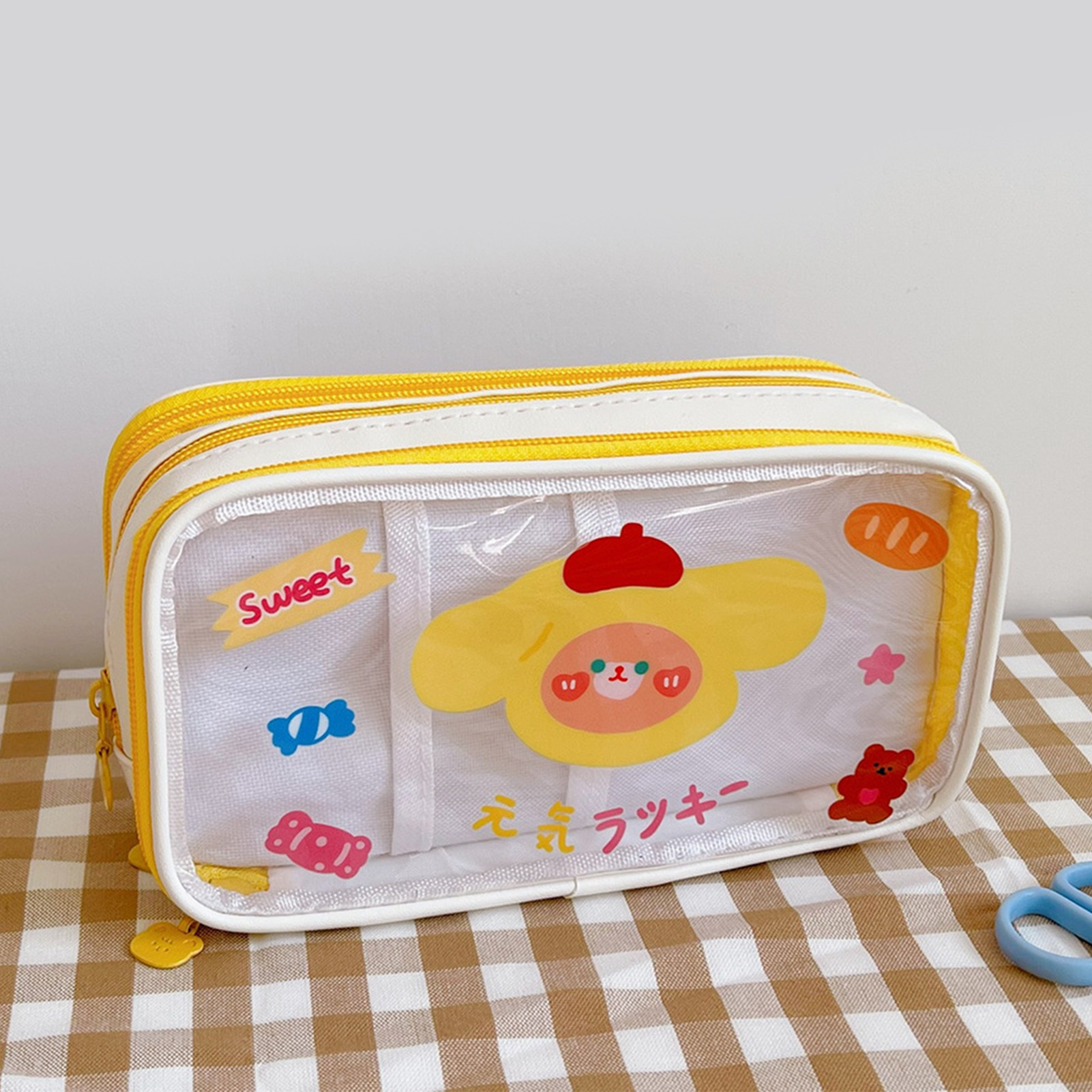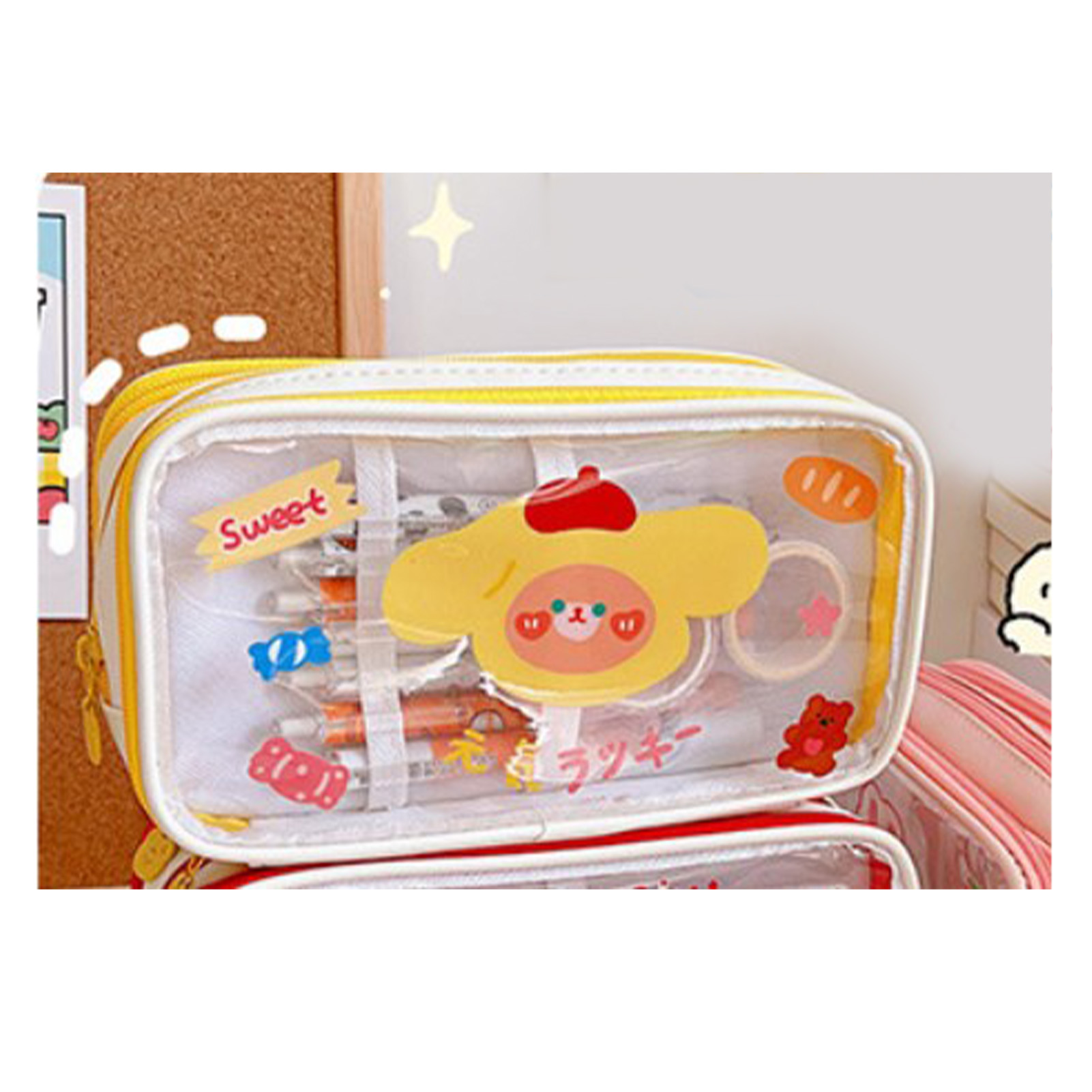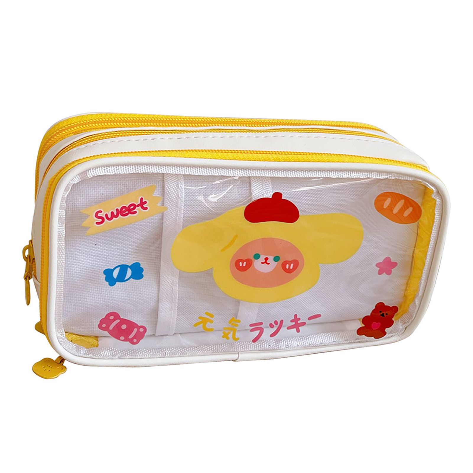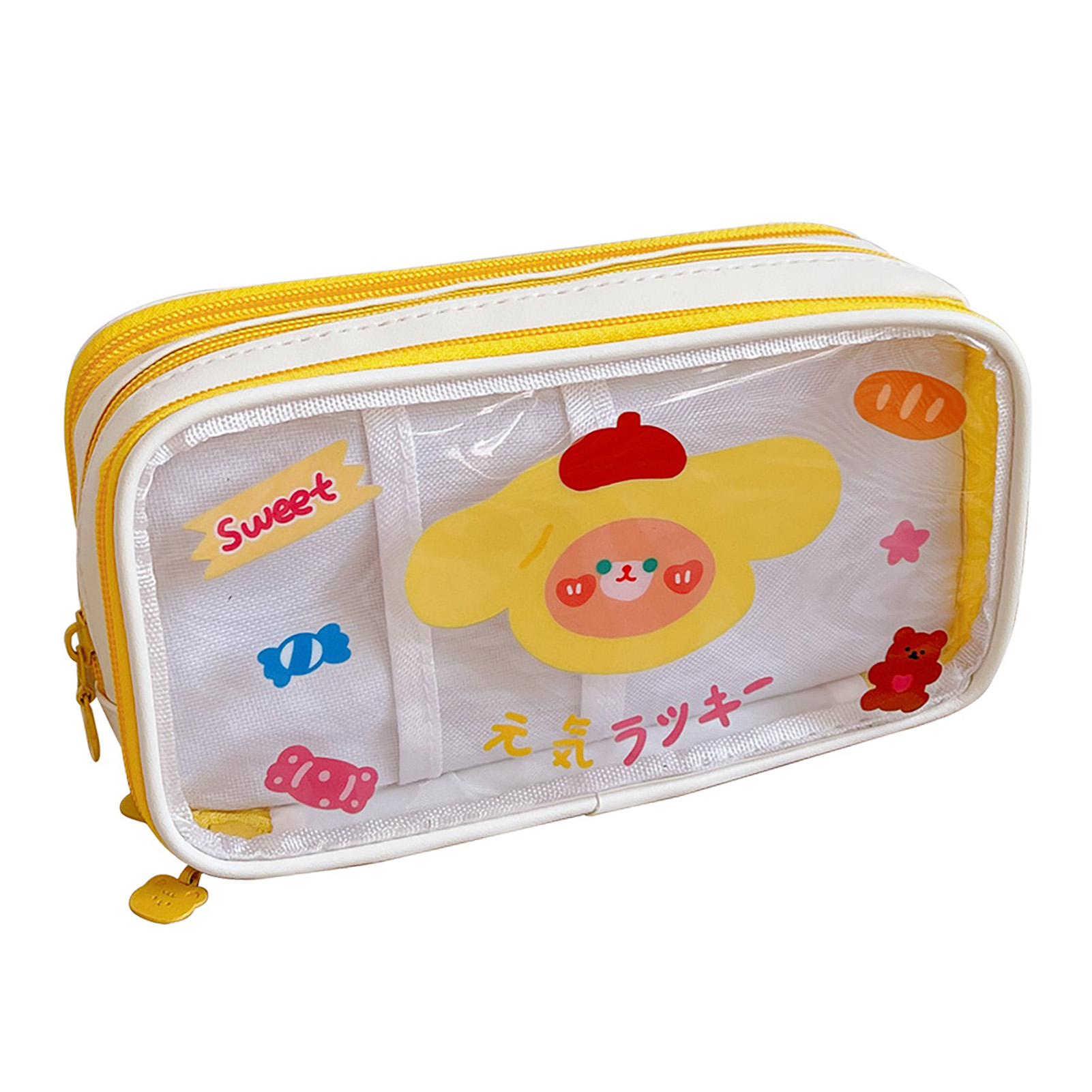 1、LARGE CAPACITY: The Cute pencil case has a large capacity and can hold a lot of stationery to meet the needs of students. 2、TRANSPARENT: Pen case with transparent design, easy to view and organize, easy to find the stationery you need. 3、CUTE PATTERN: Portable pencil bag is designed with cute cartoon pattern, which attracts students' favorite and increases the fun of using. 4、MULTI PURPOSE: Portable pencil bag can be used as a makeup bag or other storage bag, simplifying life and enhancing practicality. 5、HOLIDAY GIFT: Cartoon pencil pouch is a cute and practical holiday gift to kids, daughters, sons, friends, classmates and so on.