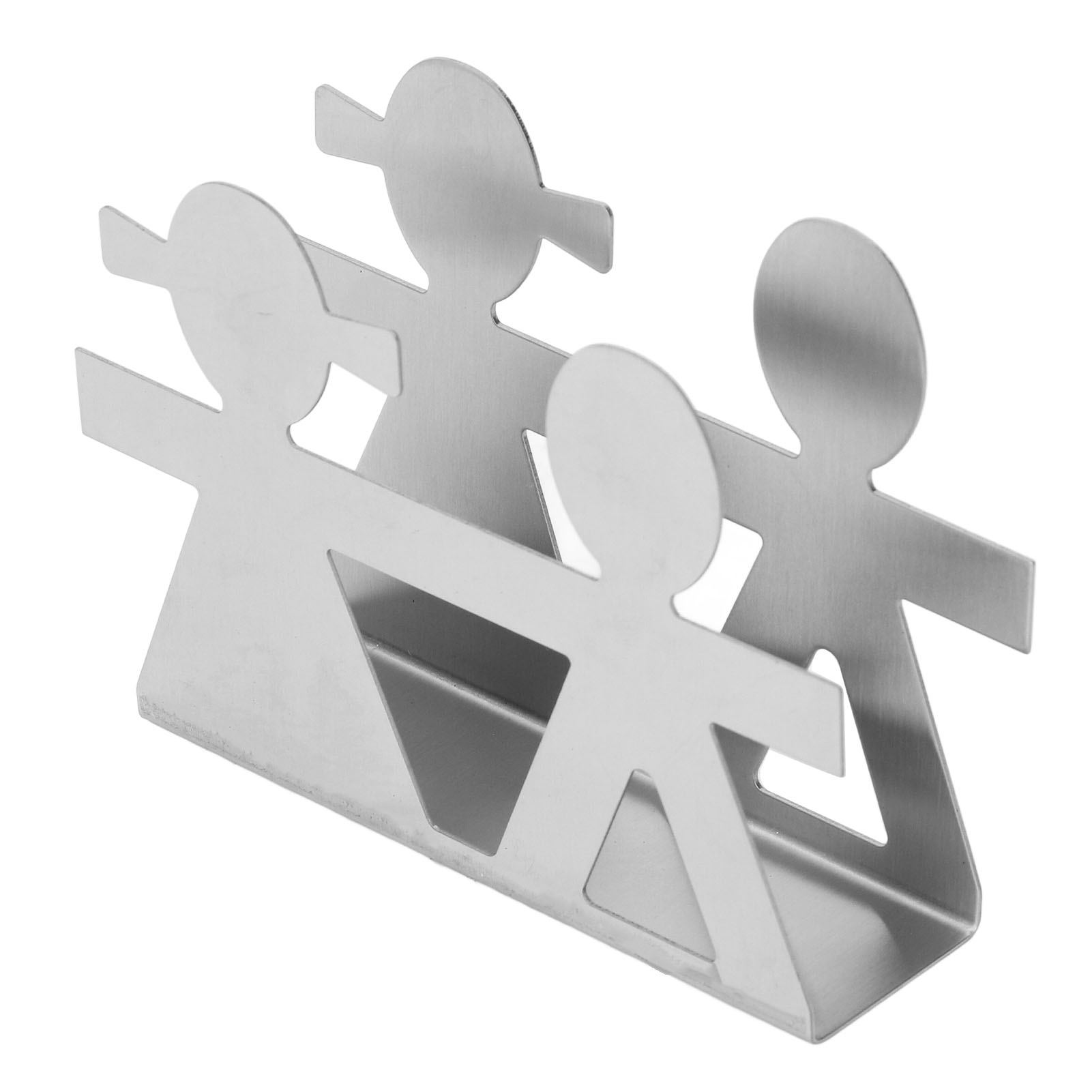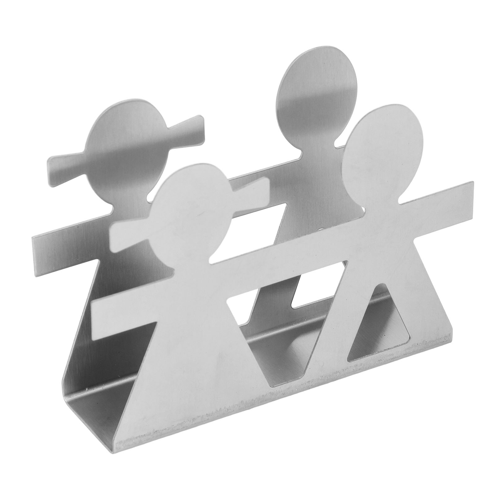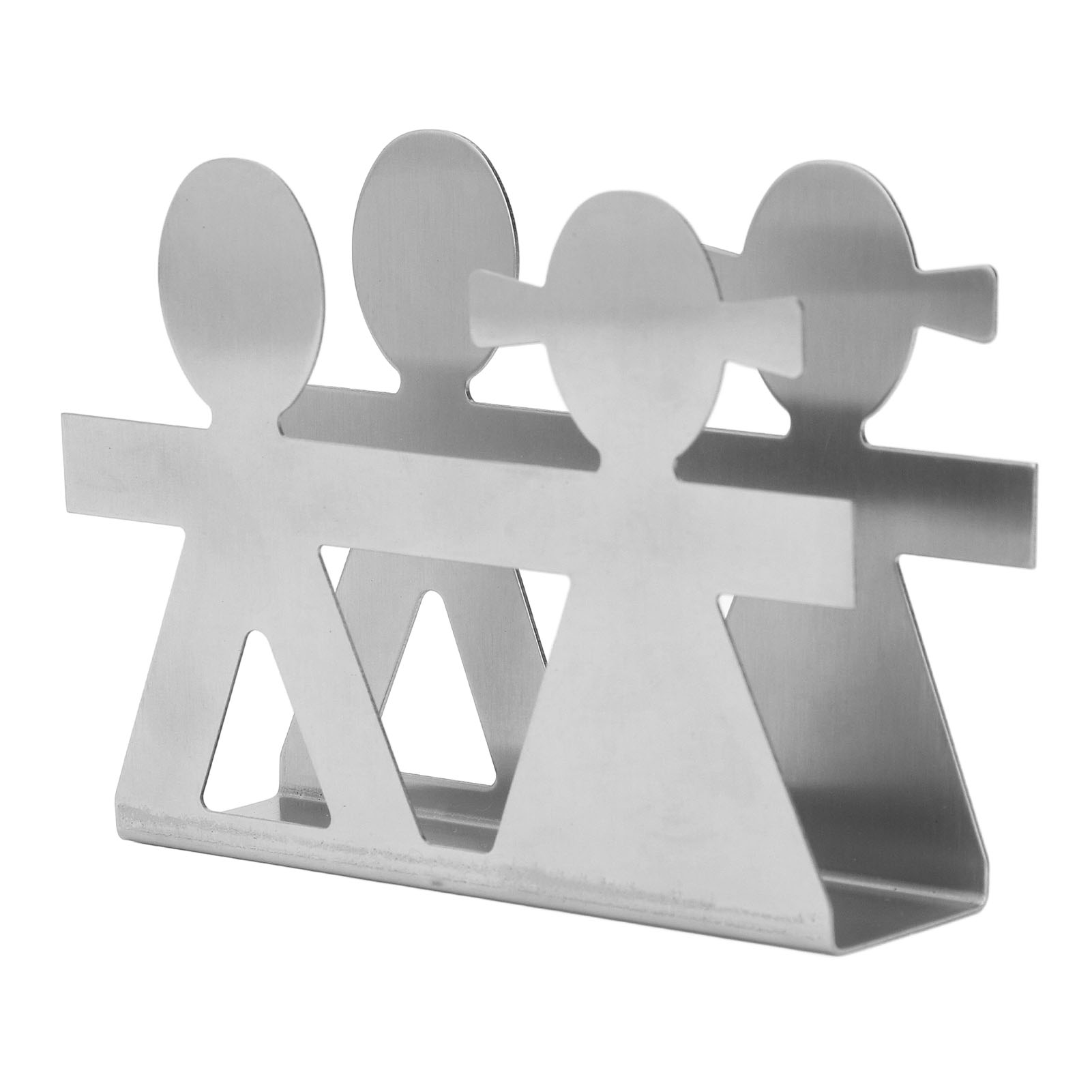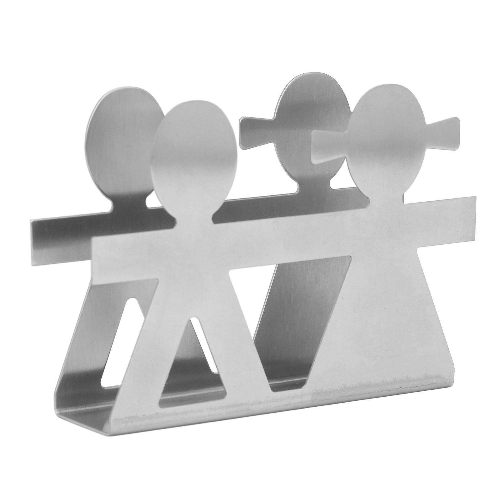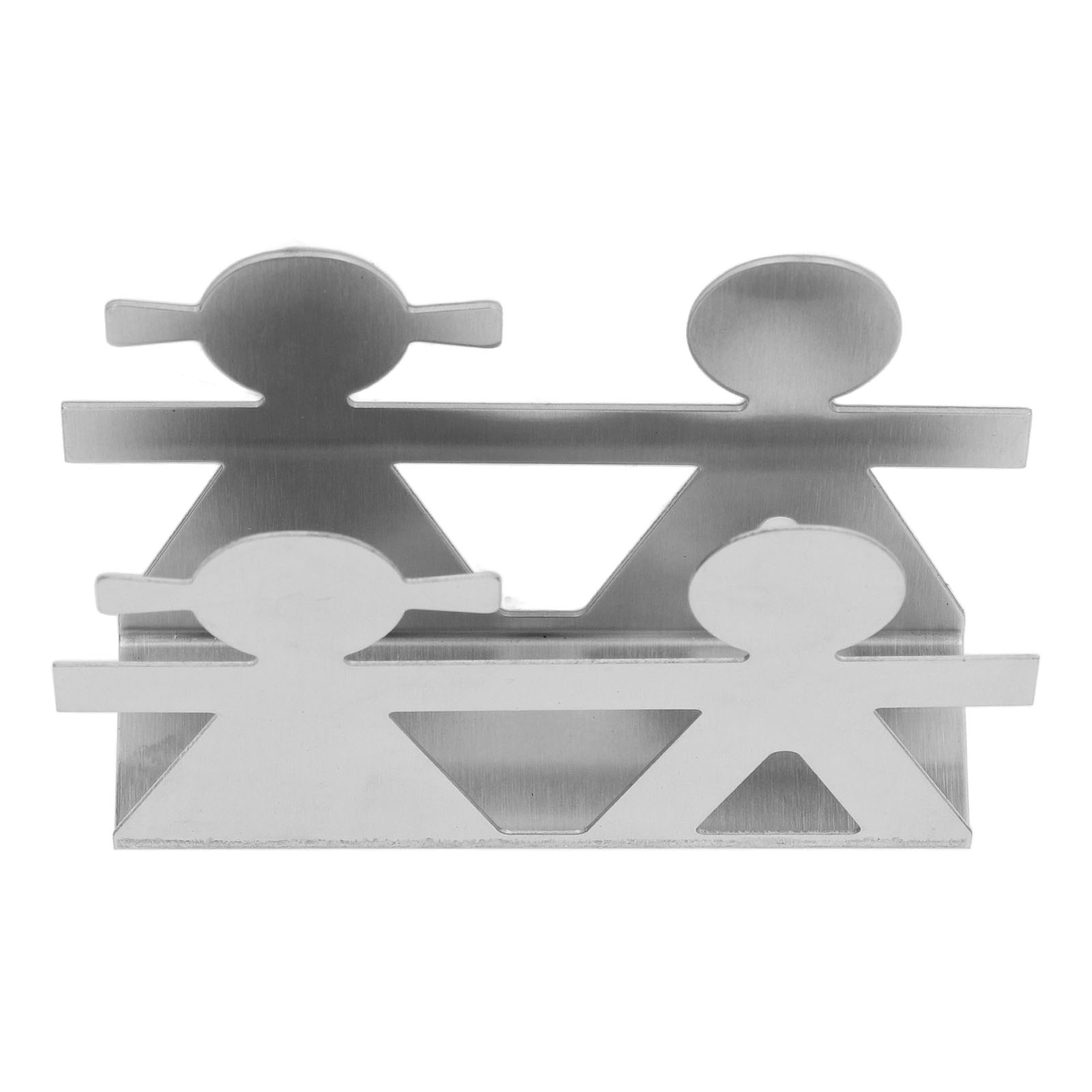 Upright Napkin Holder Boy and Girl Hollow Pattern Wrought Iron Metal Vertical Tissue Holder Desktop Storage Rack Silver