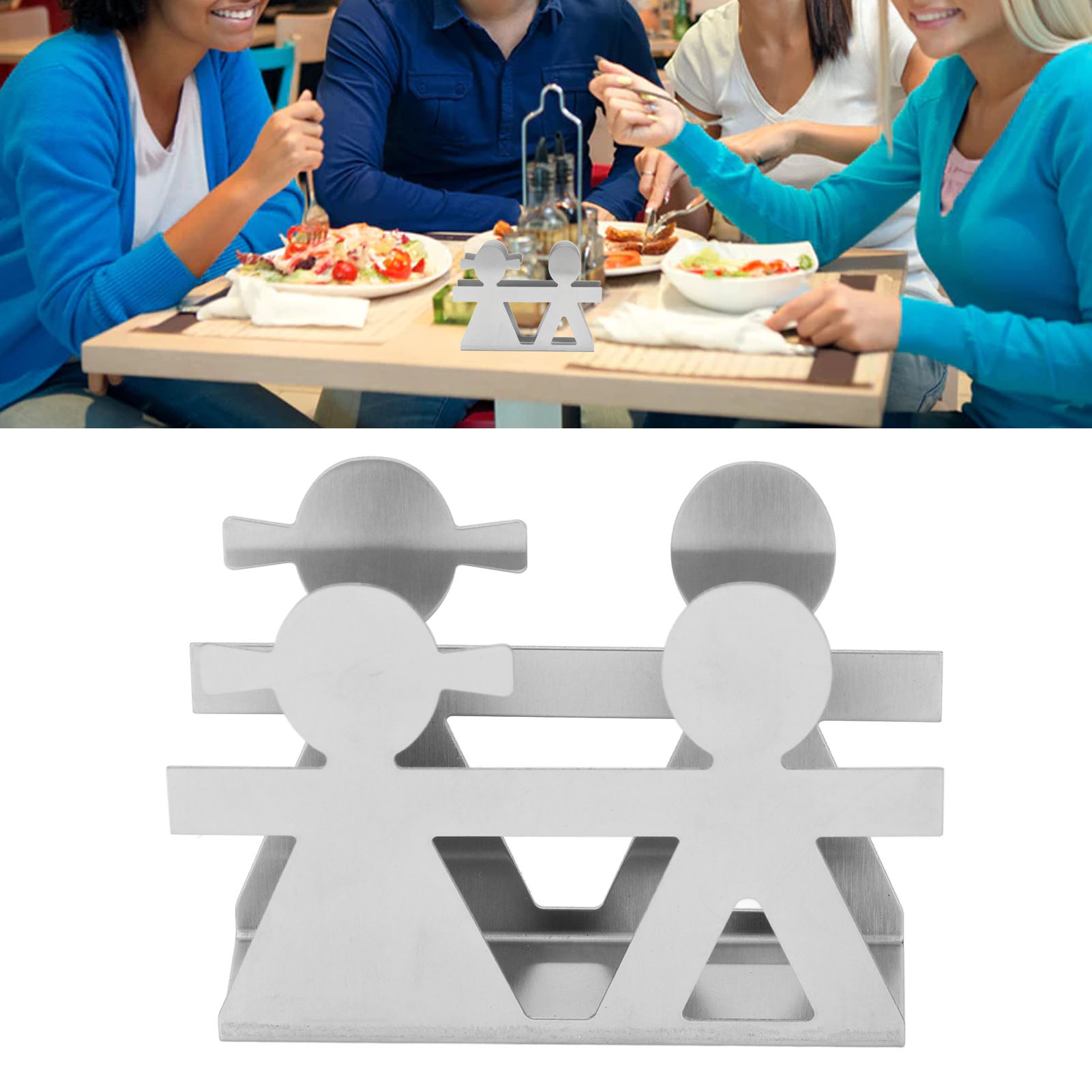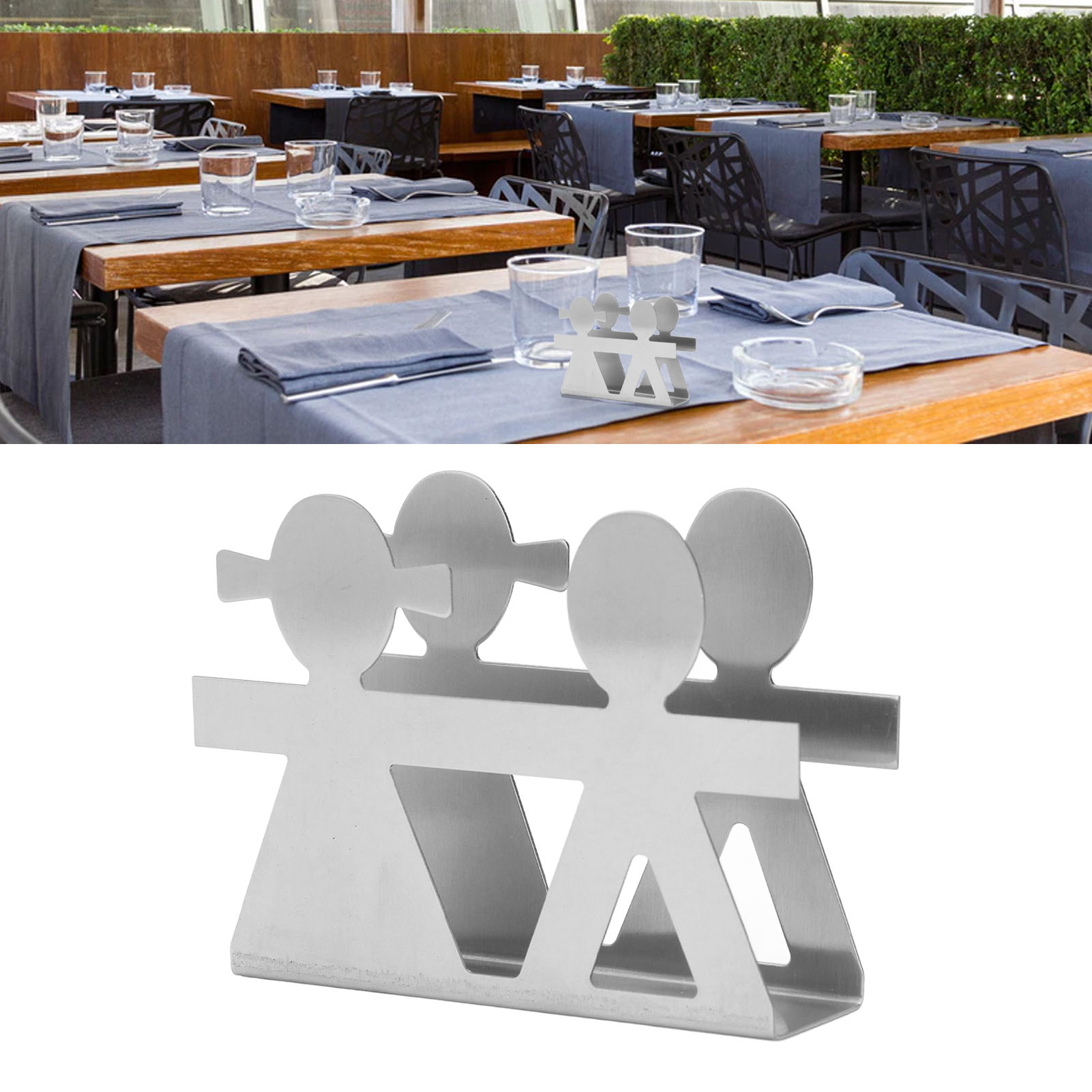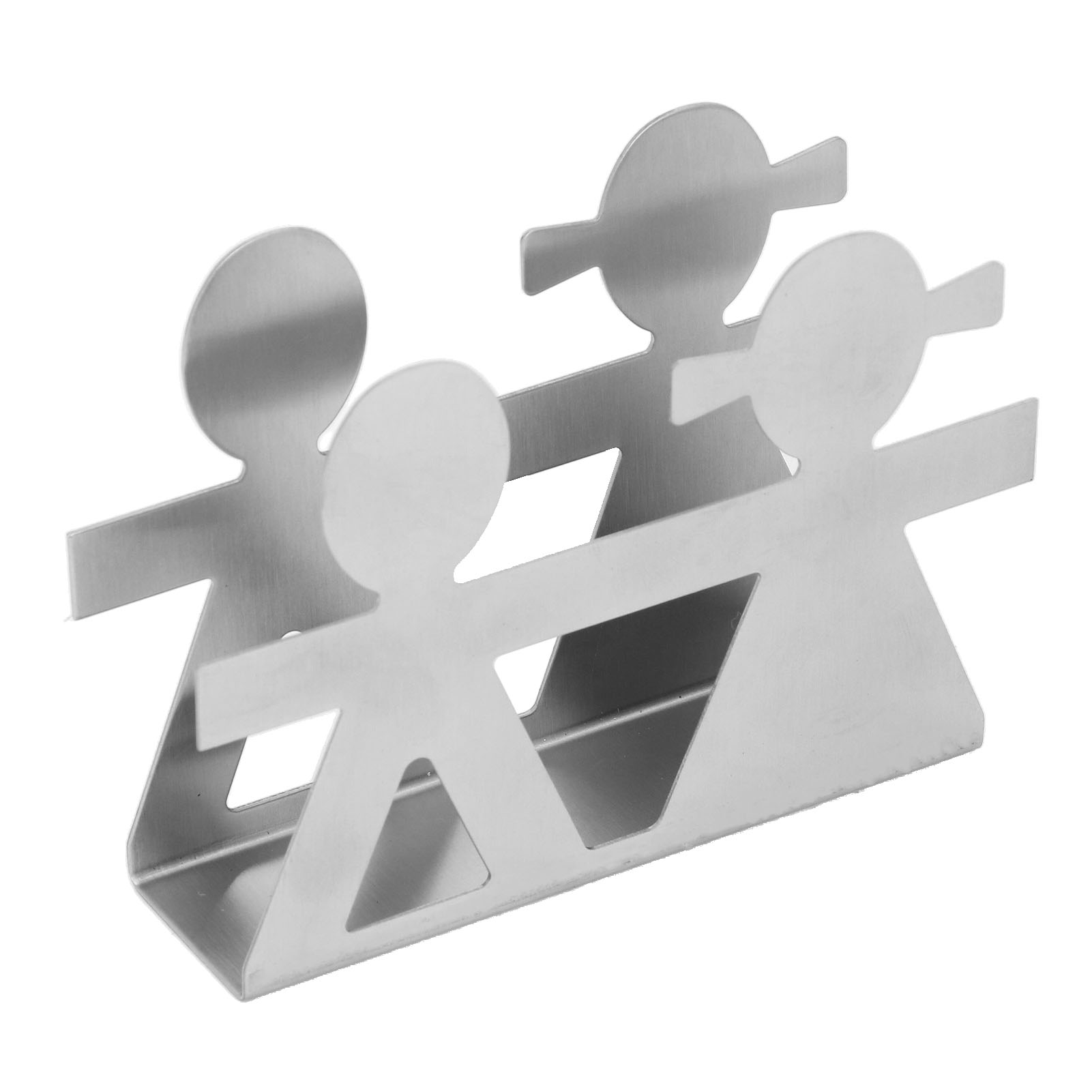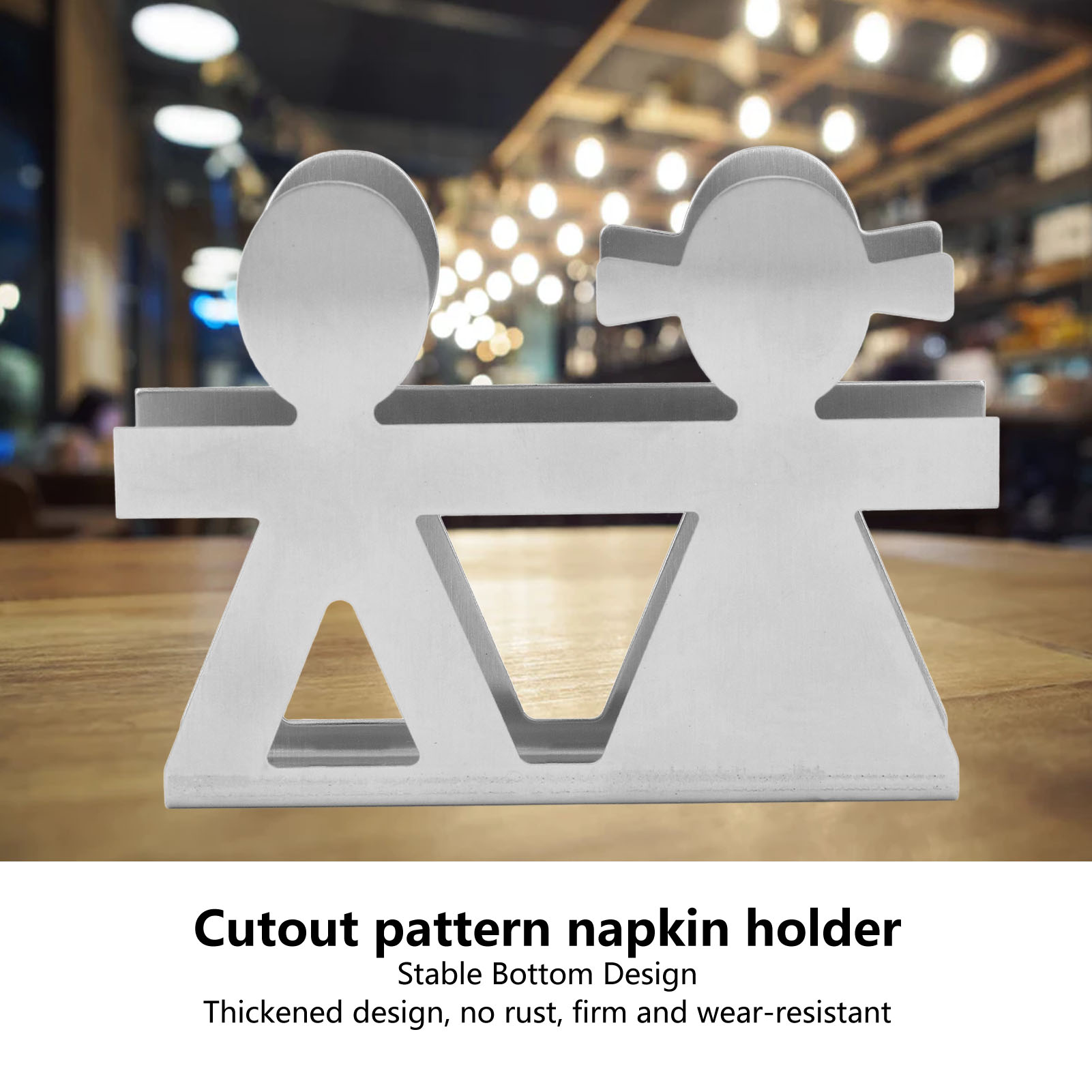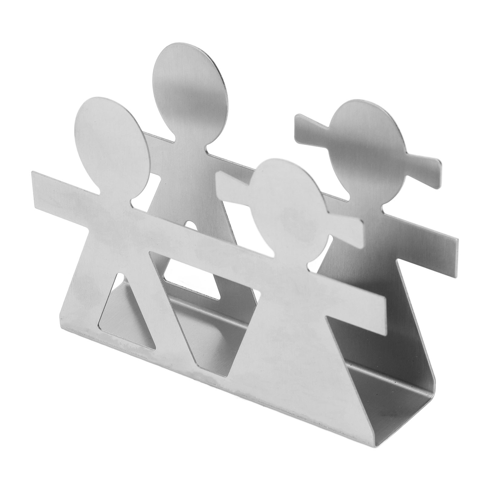 Upright Napkin Holder Boy and Girl Hollow Pattern Wrought Iron Metal Vertical Tissue Holder Desktop Storage Rack Silver