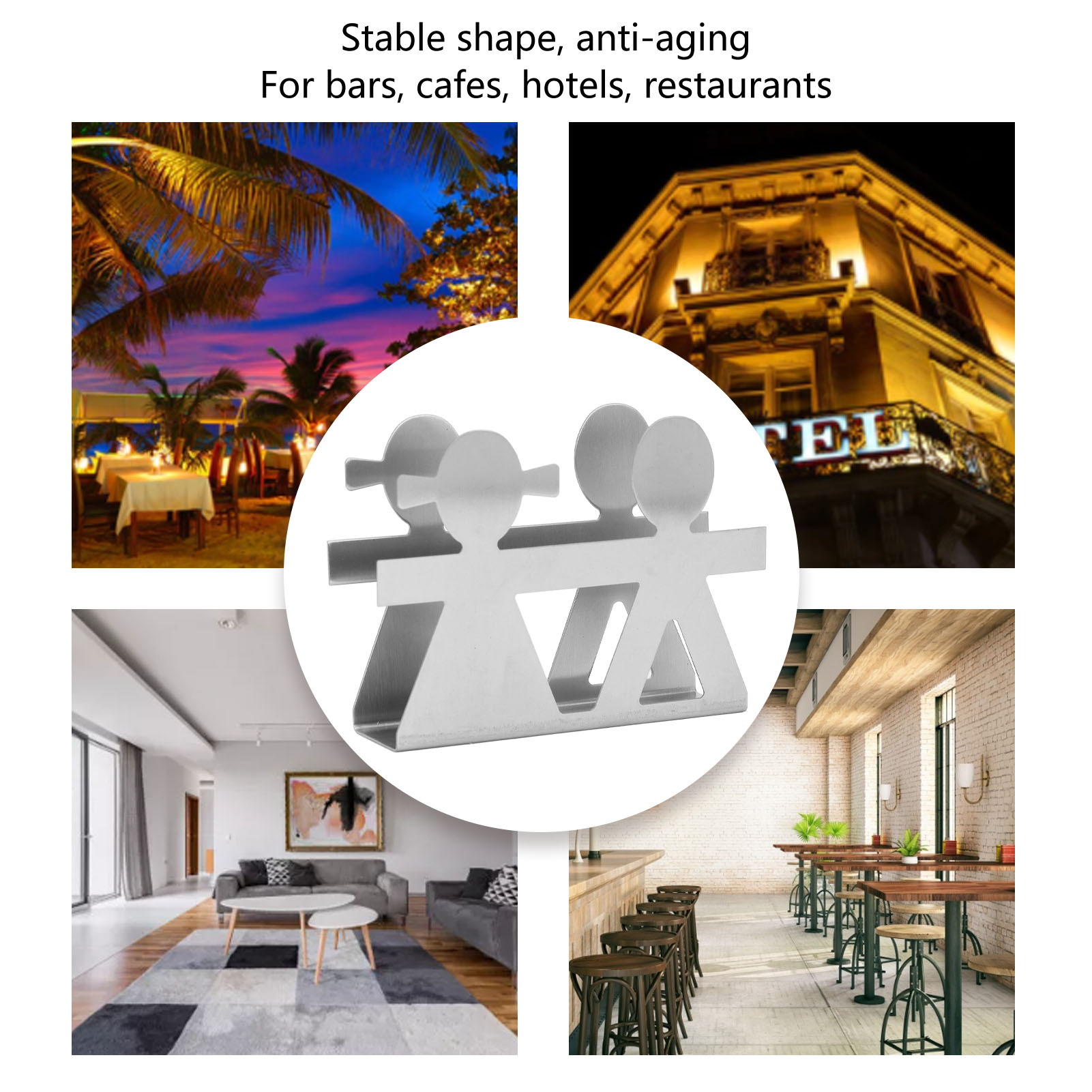 1、Hollow Pattern: Attractive and elegant curved design with cutout patterned napkin holder and glossy edges to keep your hands from getting scratched. 2、Stable Bottom Design: Metal napkin holder, suitable for kitchen countertops, non slip, keep stable and prevent scratches, rinse with water in one step or wipe with a rag. 3、Material: The vertical napkin holder is made of stainless steel material, thickened design, no rust, firm, wear resistant, stable in shape, anti aging, long service life. 4、Table Decoration: A great kitchen accessory, a neat napkin holder keeps your napkins neat and tidy. 5、Easy to Clean: Rinse with water in one step or wipe with a rag. Can be used in bars, cafes, hotels, restaurants.