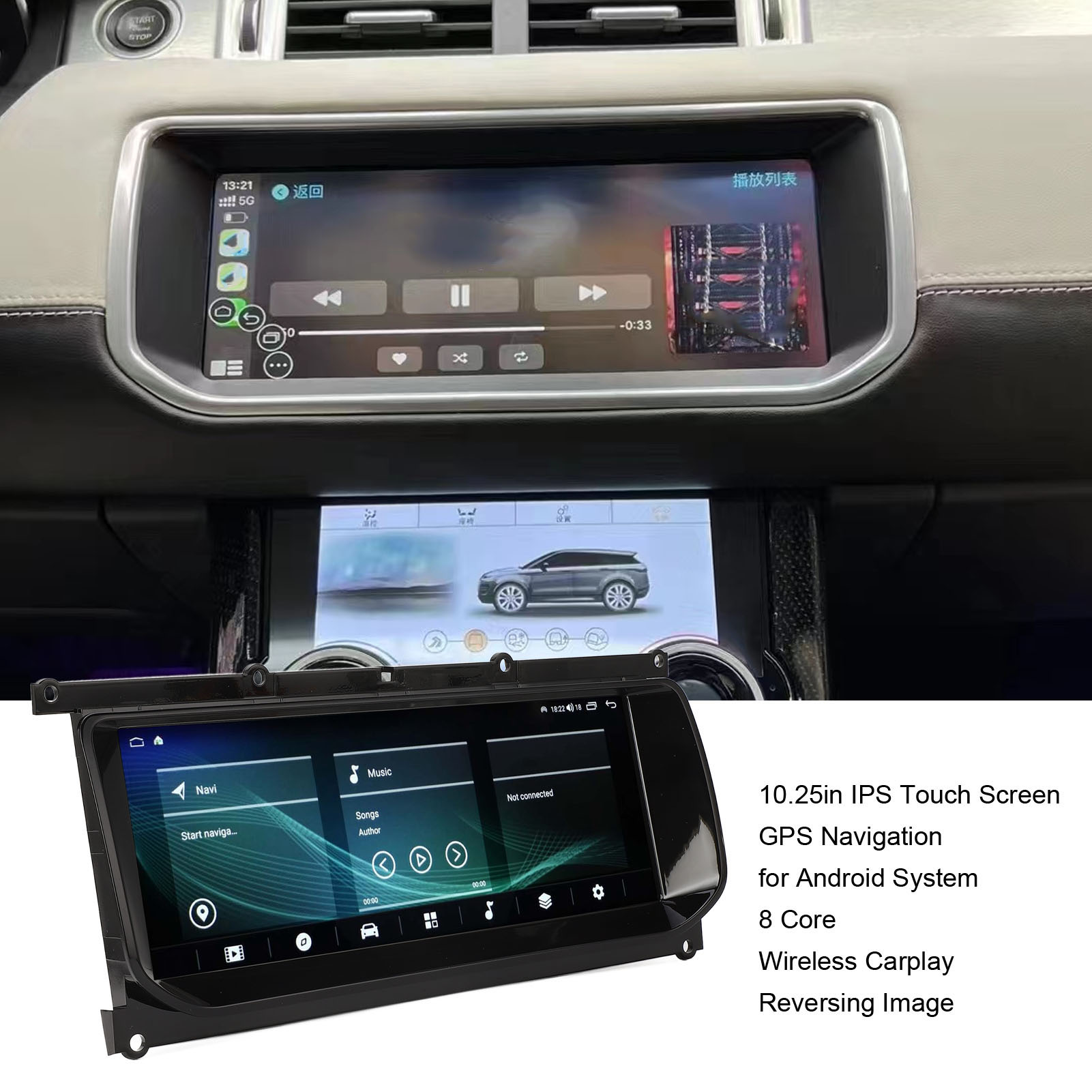 1、Fitment: The car multimedia player is specifically designed as a replacement for the Range Rover Evoque L538 for Bosch System 2012‑2016, ensuring a perfect fit. 2、Function: Seamlessly connect your smartphone to the car stereo system via Bluetooth, allowing you to effortlessly use GPS navigation, make calls, send messages, music, listen to the radio, watch videos. 3、Strong Compatibility: With both wireless and wired connections, car stereo easily supports apps for iOS and for Android phones. It is compatible with for iOS 5 and above, as well as for Android phones 11.0 and above. 4、Bluetooth 5.0 Connection: With Bluetooth 5.0 technology, this player offers faster transmission speeds and an extended effective distance. Quickly pair it with your phone to answer and make handsfree calls, as well as play music and download your phonebook. 5、10.25in Touchscreen: This car media receiver features a 10.25in IPS capacitive touch screen with HD resolution, providing an excellent visual experience. It also supports multiple languages and boasts a classic black appearance.