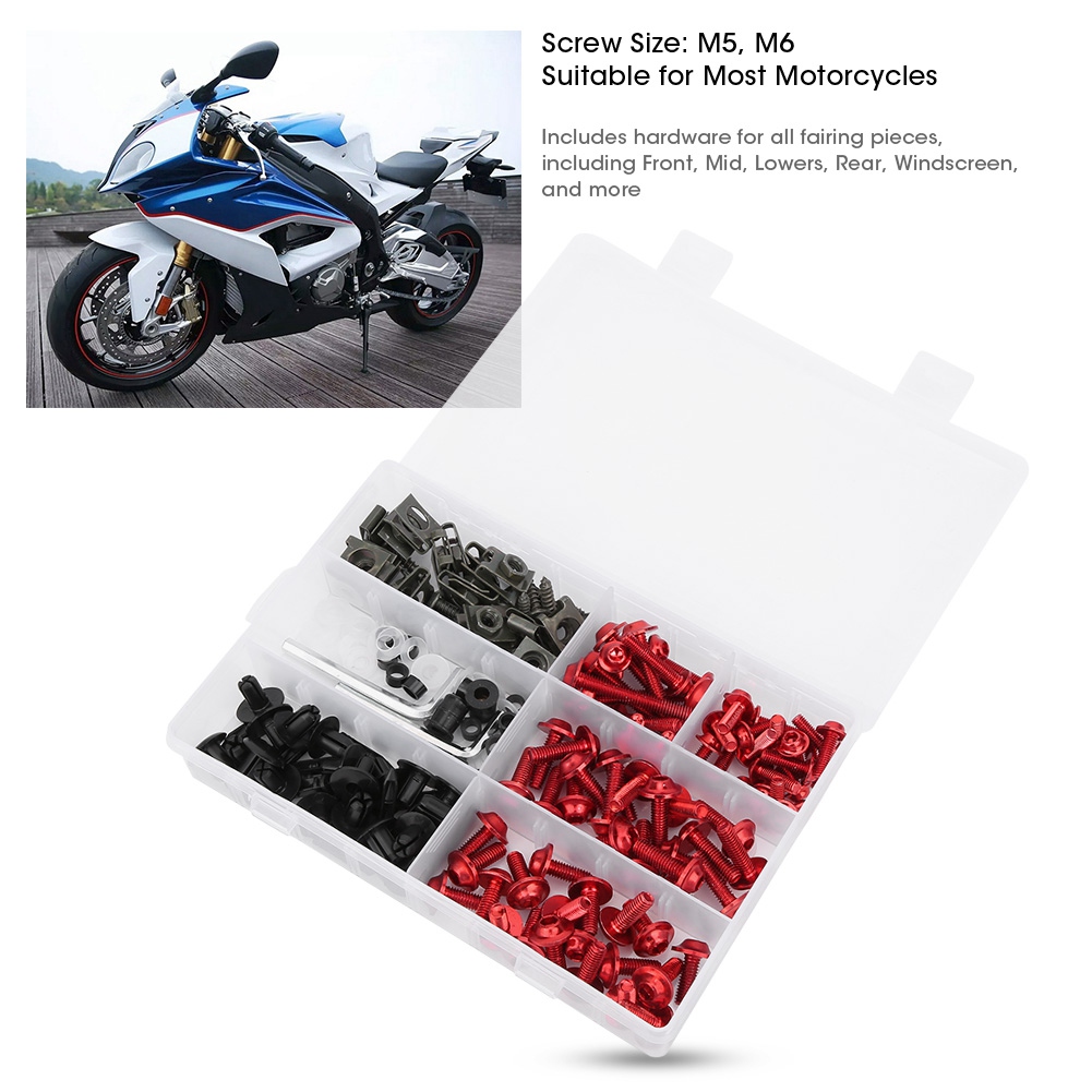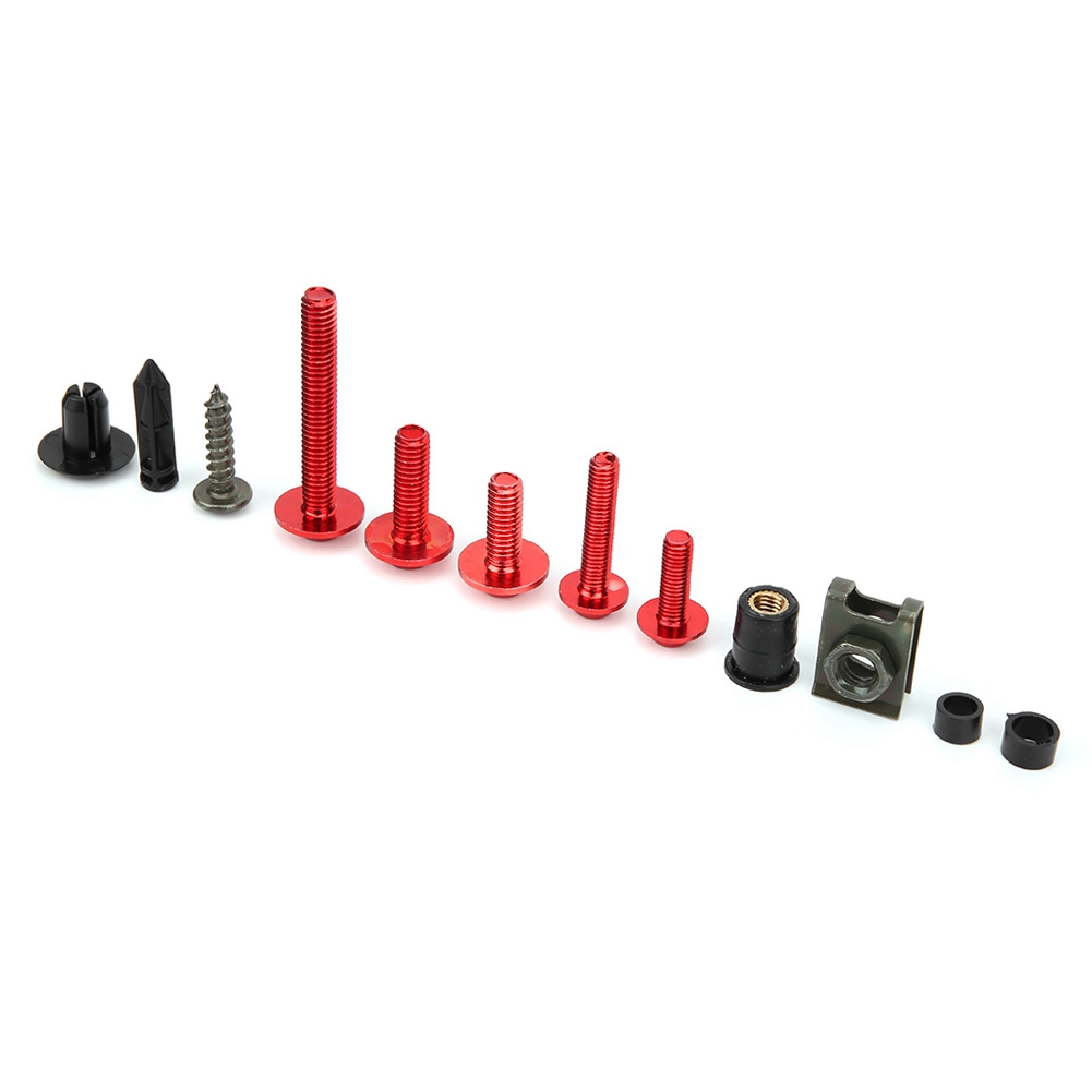 1、High quality billet aluminum fairing bolts, waterproof, reliable, and durable. 2、Simply replace the existing stock fairing bolts with this bolts, convenient to operate. 3、Includes hardware for all fairing pieces, including front, mid, lowers, rear, windscreen, and more. 4、This fairing bolt kit is suitable for most motorcycles, with better performance. 5、Manufactured to meet standard specification, strictly follow factory quality control.