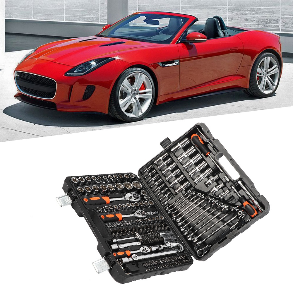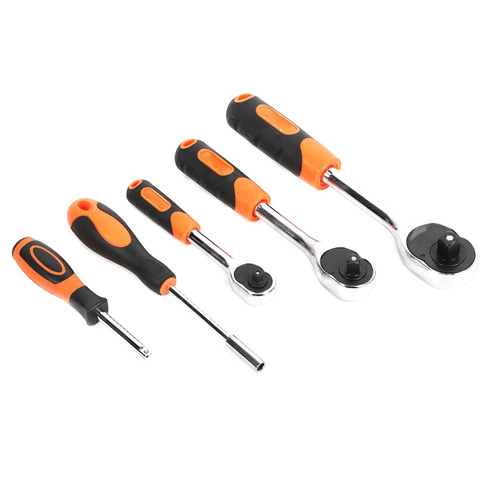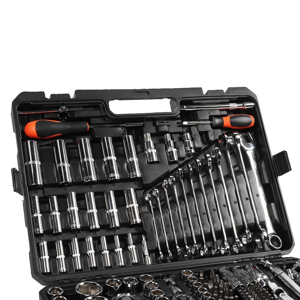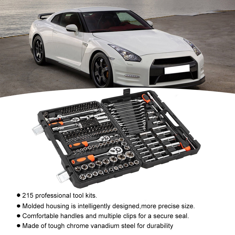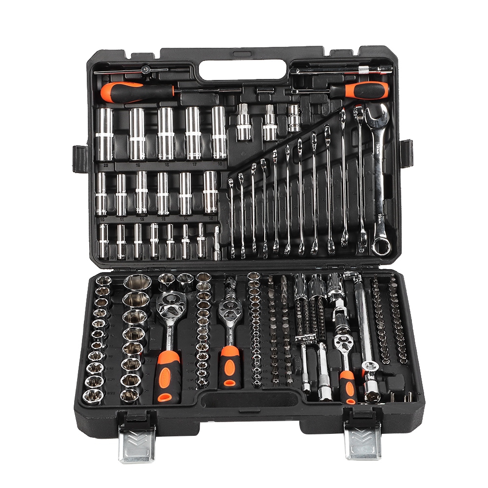 1、215 professional tool kits are worth the money, it's worth your trust. 2、This practical socket kit includes a range of high quality wrenches, ratchet wrenches and a range of different sockets for a more precise size. 3、The molded housing is intelligently designed, and each part and tool is located in its own dedicated tray for easy storage. 4、Comfortable handles and multiple clips for a secure seal when closed. 5、Each tool is made of tough chrome vanadium steel for durability.