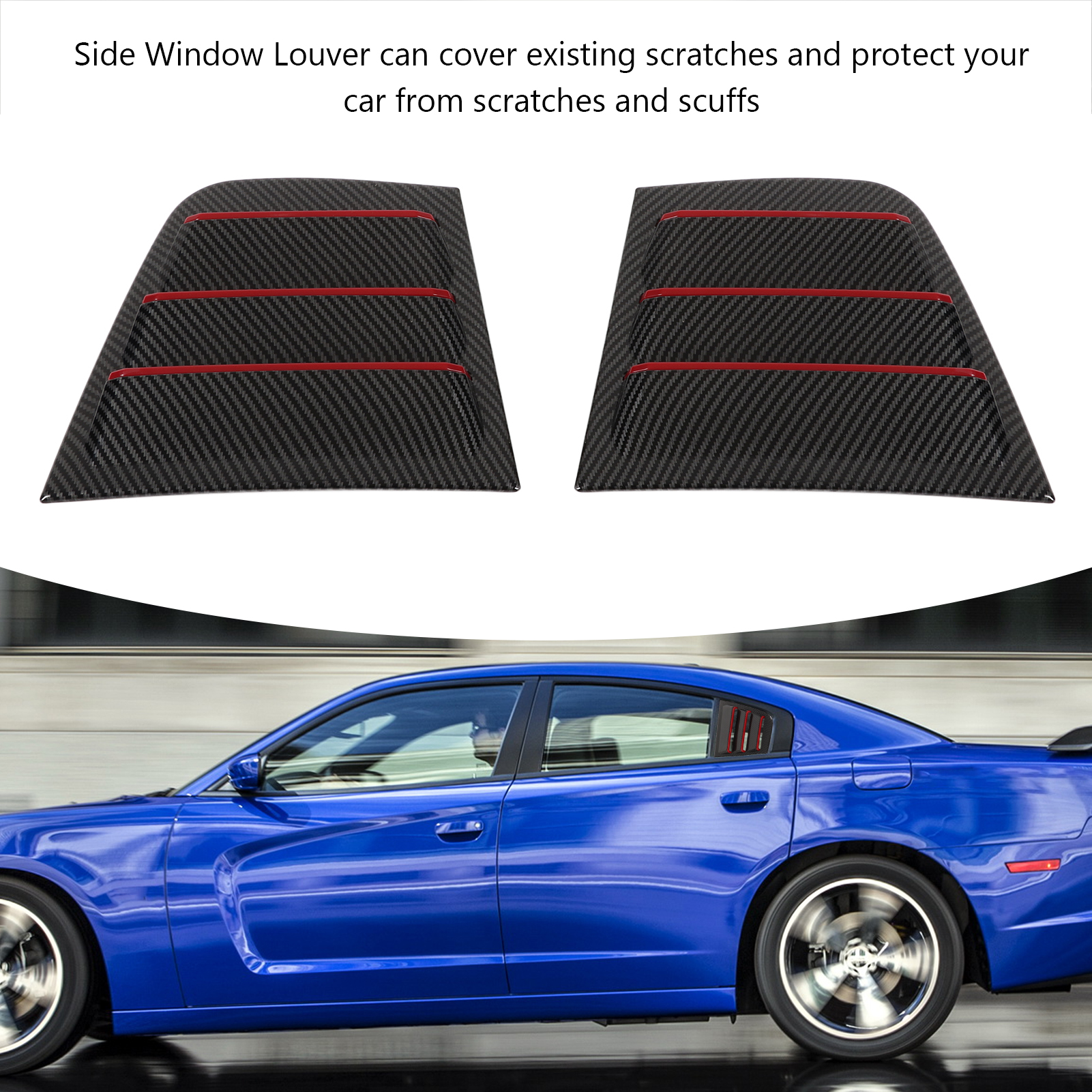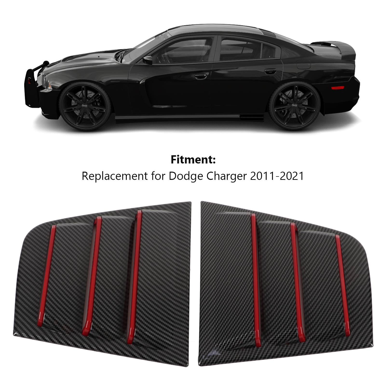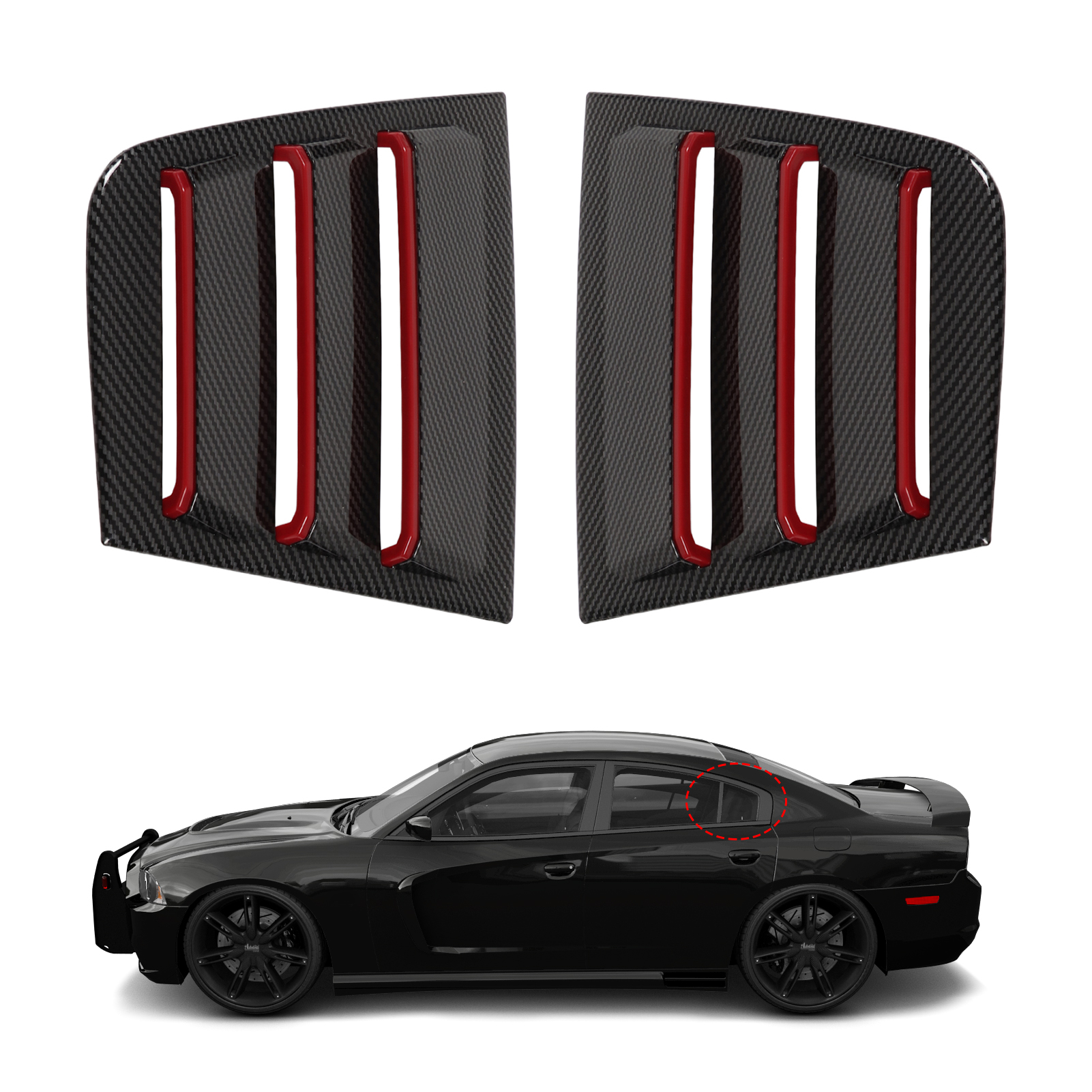 2PCS Car Exterior Side Window Louvers Carbon Fiber Style Replacement for Dodge Charger 20112021(Black Red Trim )
