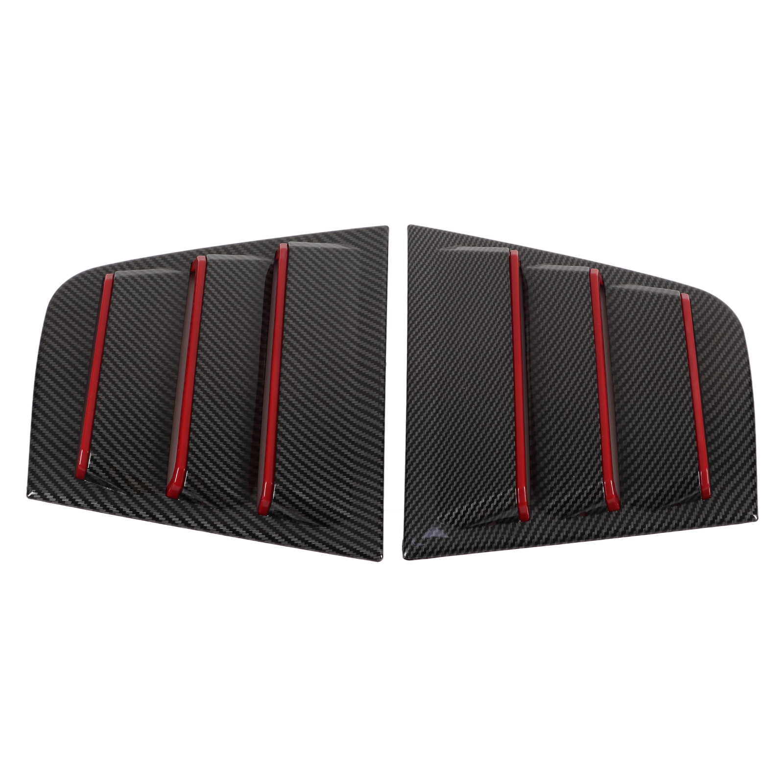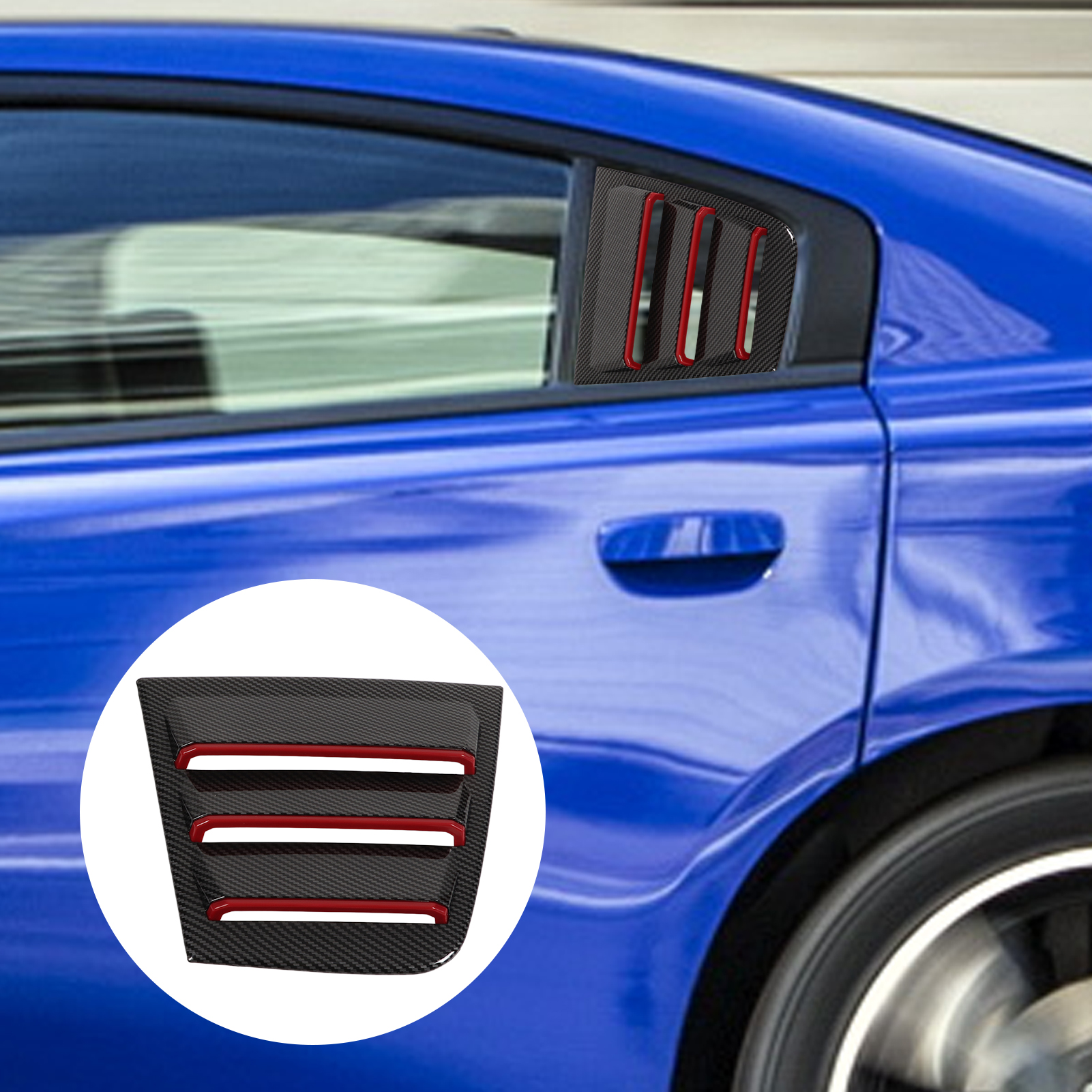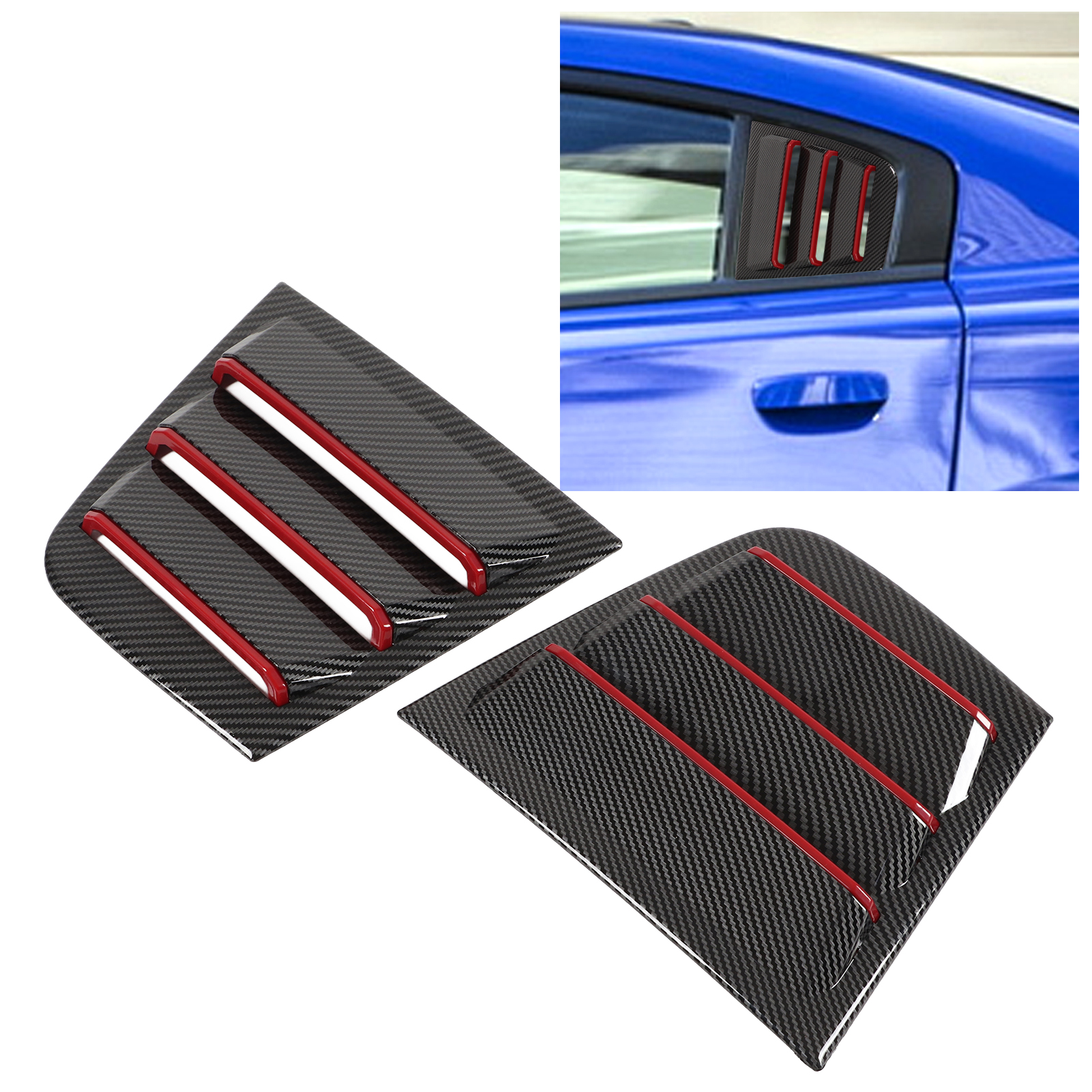 2PCS Car Exterior Side Window Louvers Carbon Fiber Style Replacement for Dodge Charger 20112021(Black Red Trim )