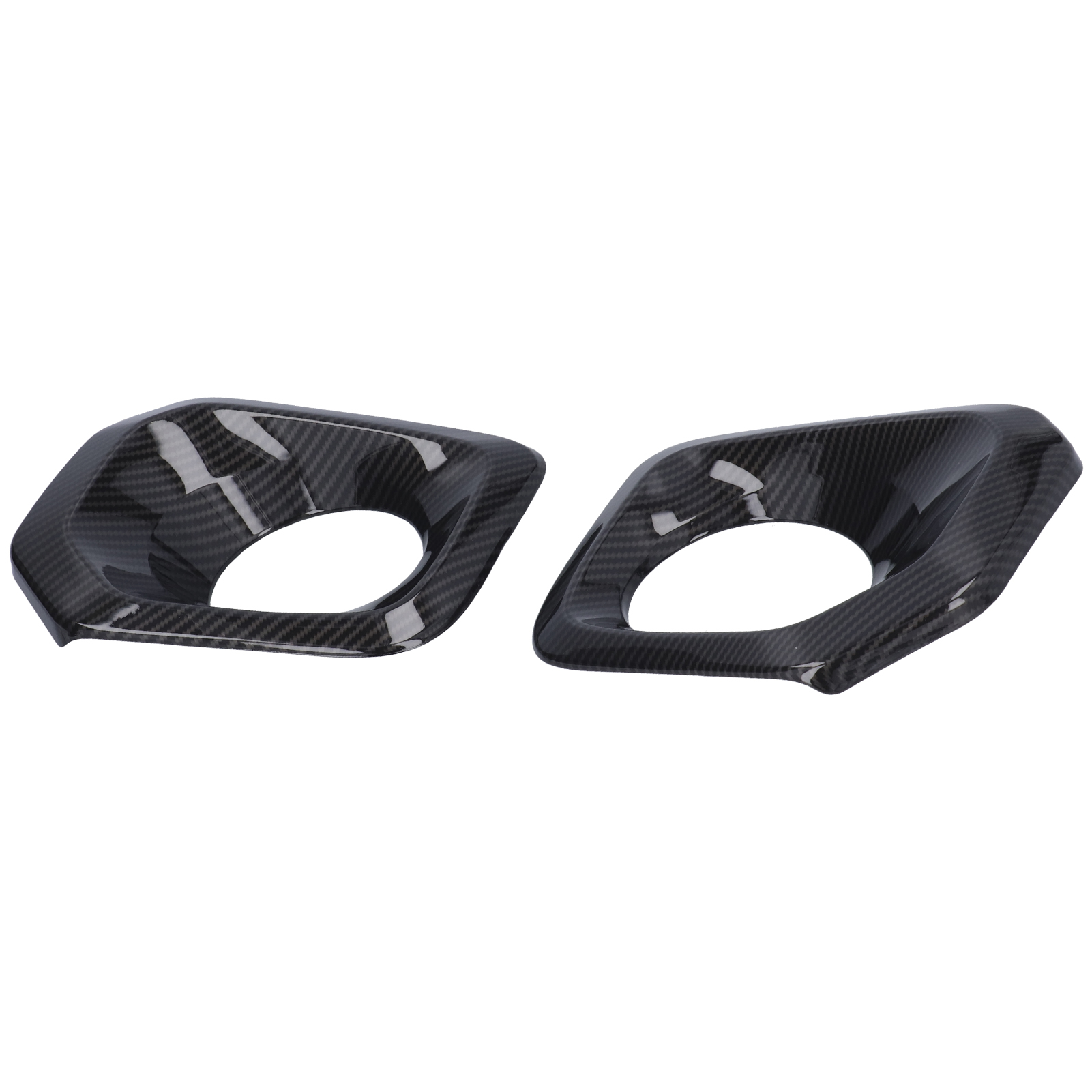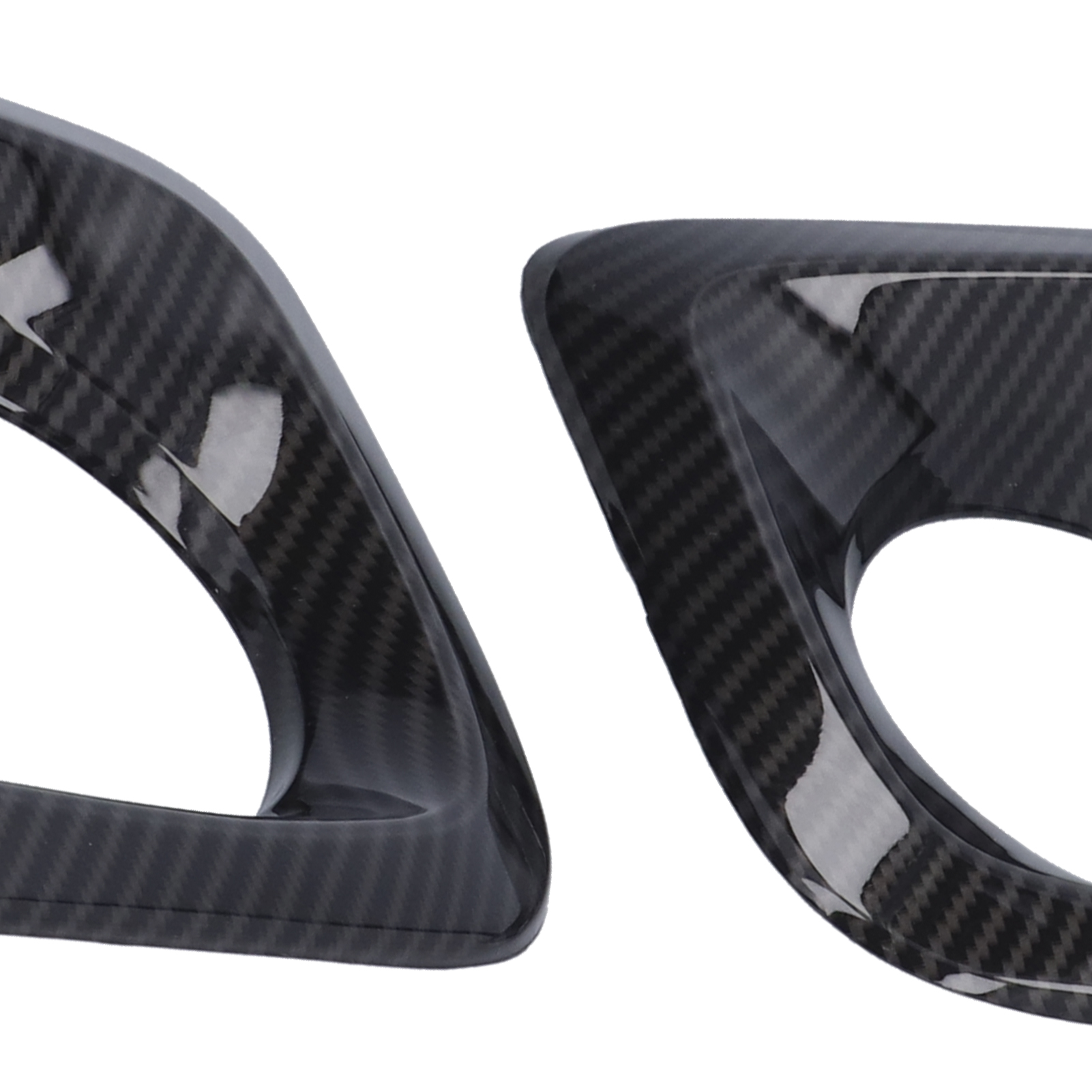 1、Front fog lamp cover, which can effectively protect the fog light from scratches and damage. 2、Cabon fiber style, clear texture, luxurious and delicate, it has an excellent decorative effect. 3、Made of high-quality ABS material, anti-UV and weatherproof, it is not easy to break or crack. 4、Self‑adhesive design, simple to paste, not easy to peel off, and has no damage to your car. 5、Customized according to the original size, it can directly match the car fog lamp without modification.