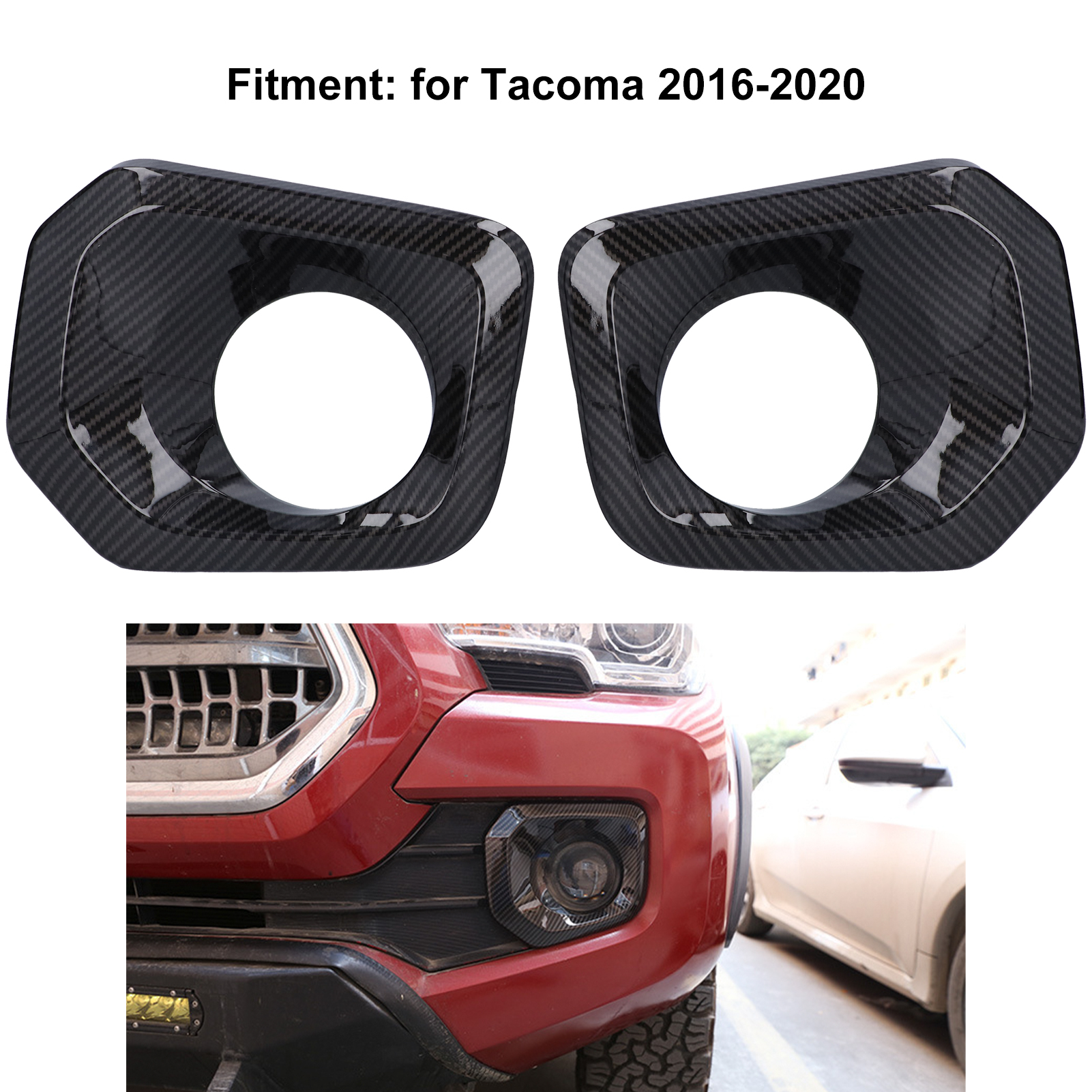 2pcs Front Fog Light Bezel Cover Decoration Carbon Fiber Style for Tacoma 2016-2020