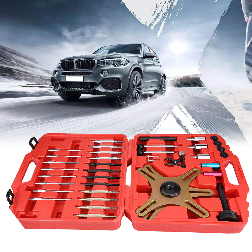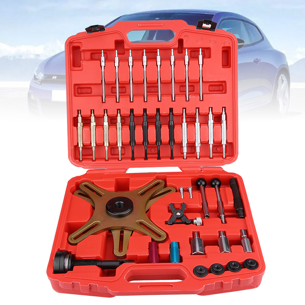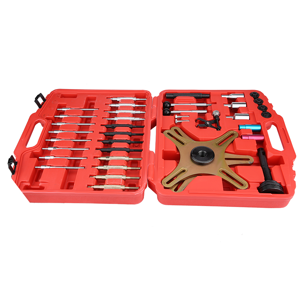1、This tool set makes the clutch disc be put under the pressure plate perfectly 2、Easier to align the spline in the clutch disc with the guide bearing hole in the flywheel 3、Prevents plate distortion, and prevent the clutch from disengaging or cause dragging 4、Comes with a refitting tool and six alignment adapters, allows the clutch adjuster to be wound back 5、All the tools are well organized in a blow molded case for easy transportation, simple storage, and quick identification