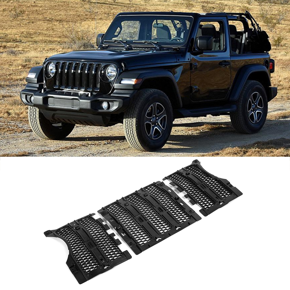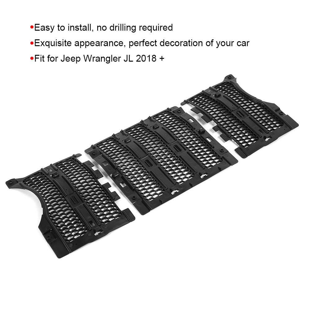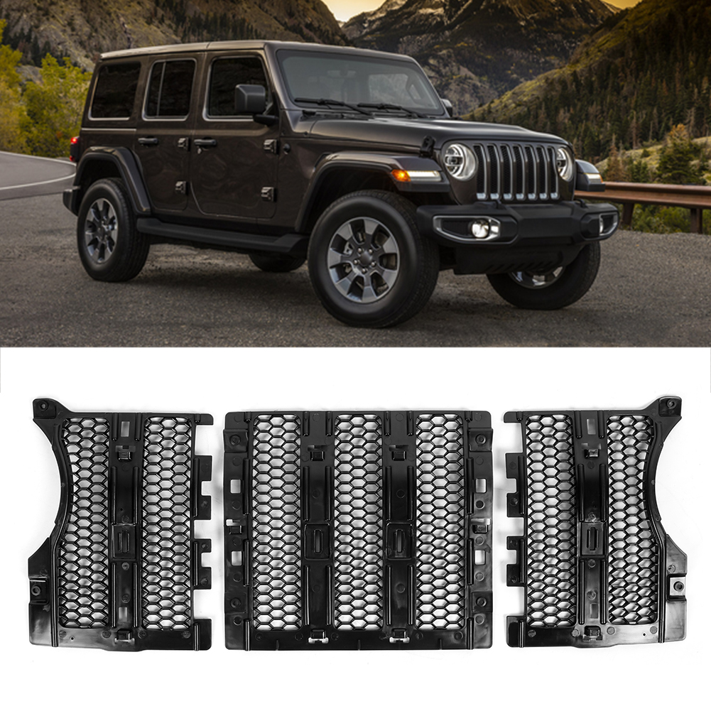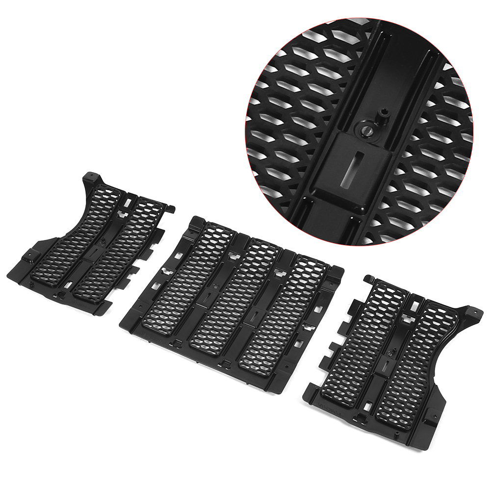 3pcs Middle Mesh Insert Grille Grill Cover Black Racing Fit for Jeep Wrangler JL 2018 +