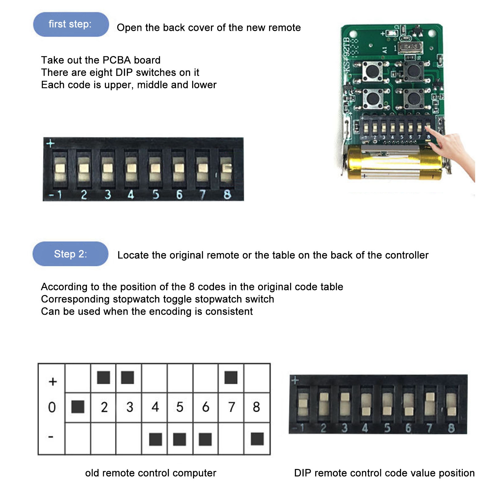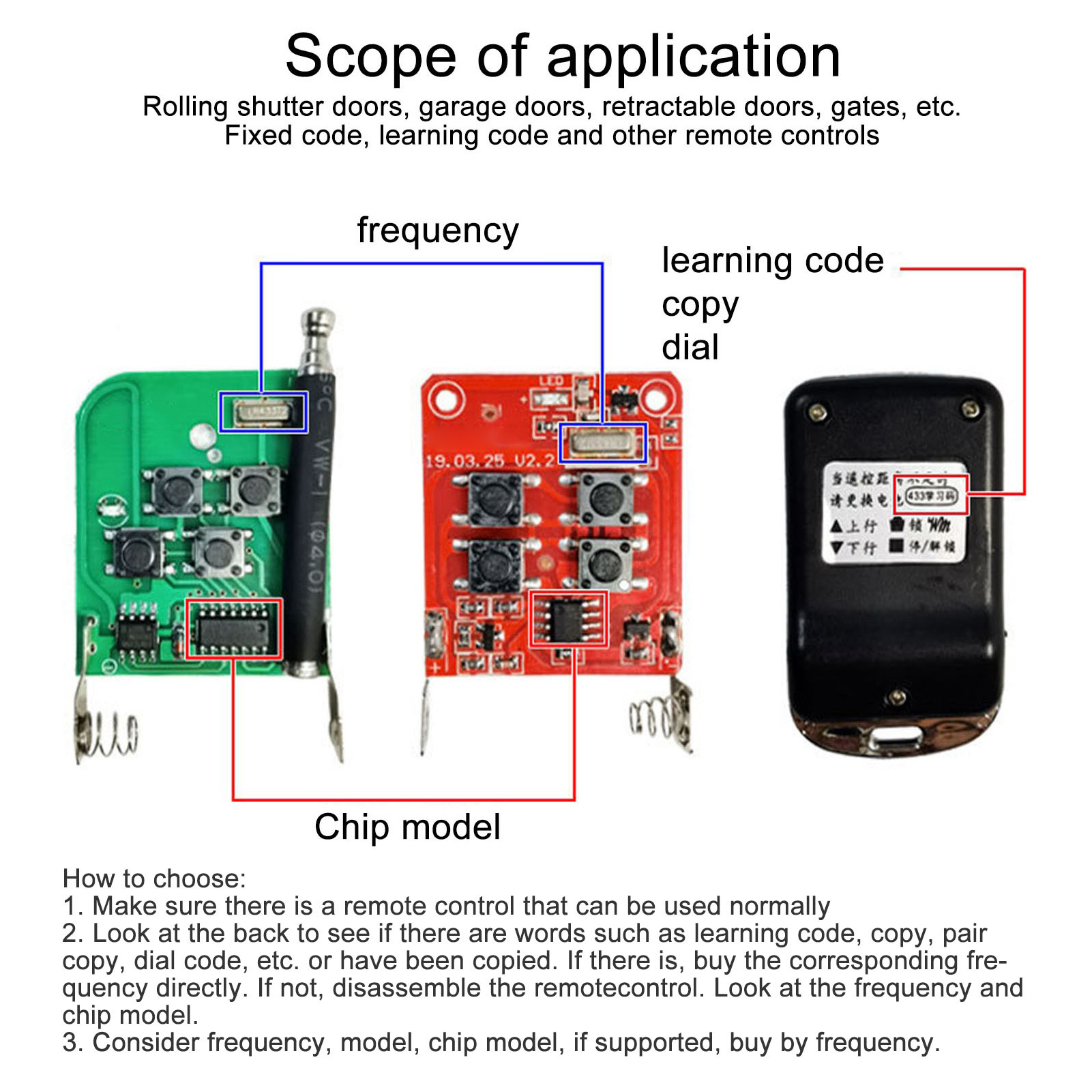 Supports processing of the following codes: PT2262 PT2260, PT2264 PT2240, PT1527, SC2262, SC2260,CS5211, EV1527, SCT527, HS1527, HS2240, SCL1527, FP1527, HS2262, HS2260, LX2262, LX2260, SMC926, SMC918, AX5026 2W-8, 24C01, 24C02