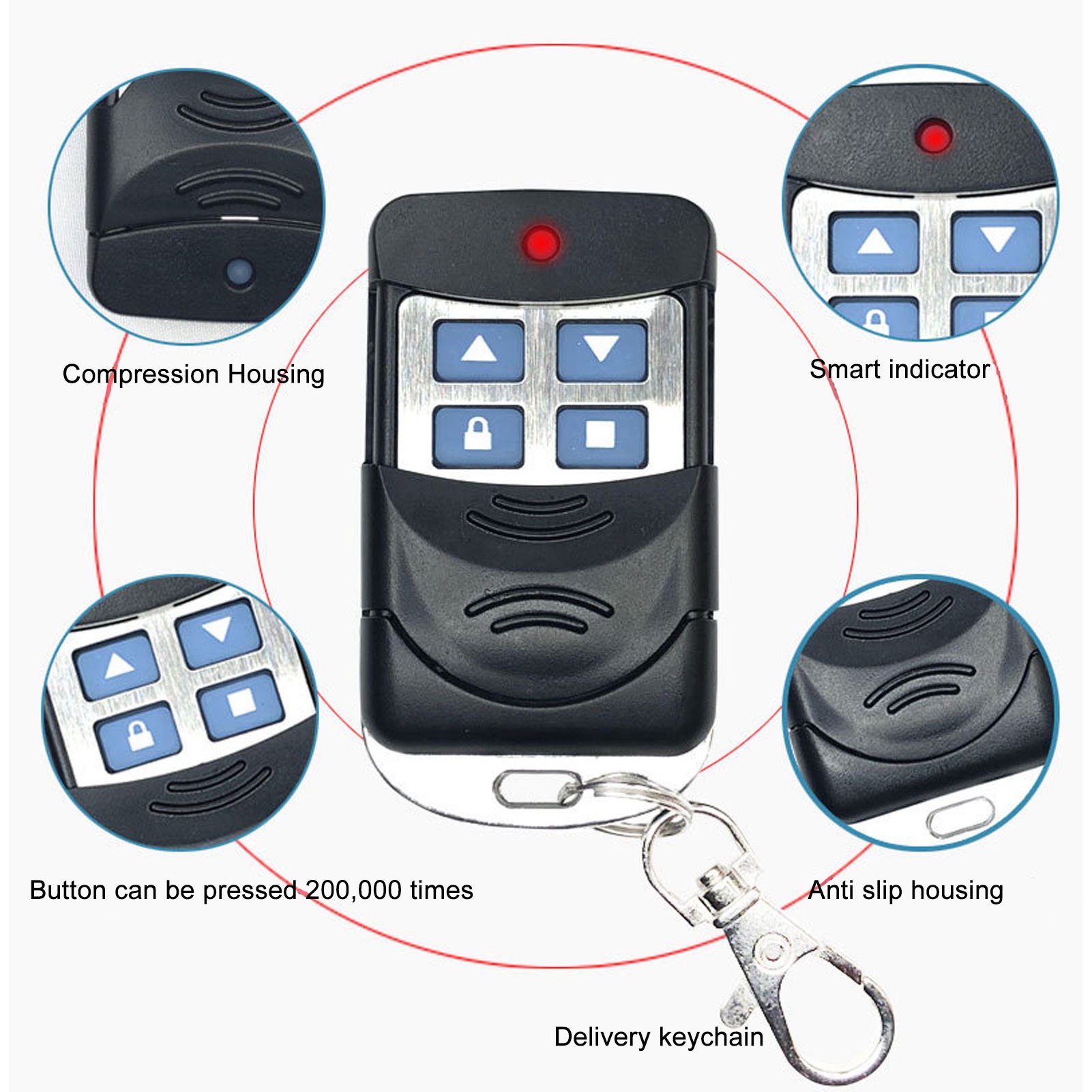 1、Wide Application: This remote control is suitable for cars, garage doors, doors, skylights, motorcycle alarms, home security products, short range remote control products, electrical, home automation lights, etc. 2、Powerful Functions: The remote control key fob is a fixed frequency remote copier (433.92MHz) for copying 99.99% popular remote controls with fixed and learning code, easy pairing with the remote original, clone up to 4 remote signals of 4 different ones remote controls. 3、Easy to Use: This control is easy to use, 4 channel remote control with anti theft function, one click anti theft will help you control your devices, cars, houses and garages. 4、Professional Manufacturing: This remote control is produced by professional factories, with fine workmanship and excellent performance, and has undergone strict factory testing with reliable quality. 5、Ideal Replacement: This remote control can be easily used, ideal replacement for the old and damaged parts.