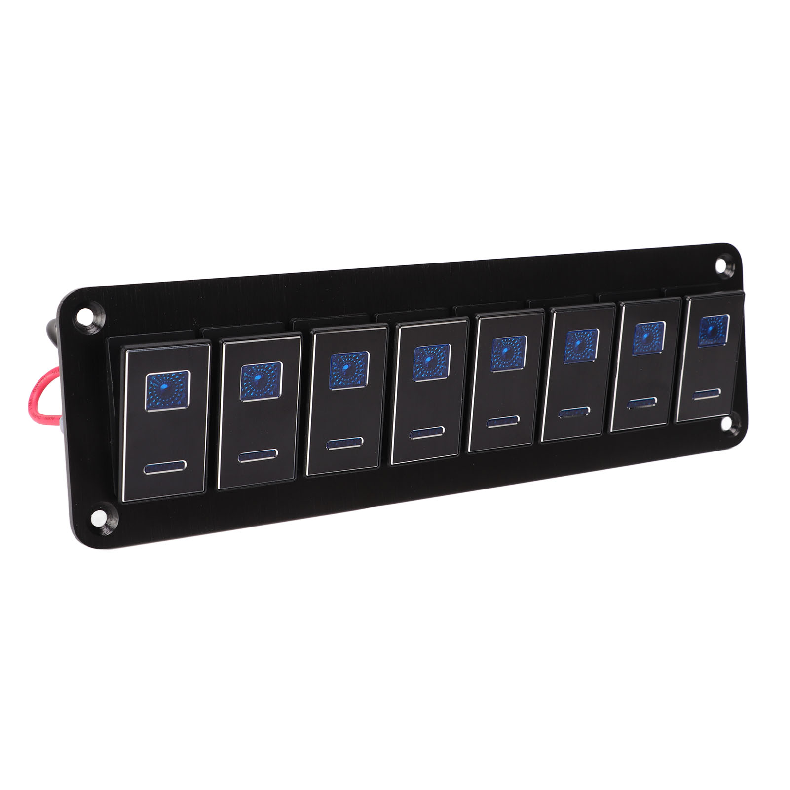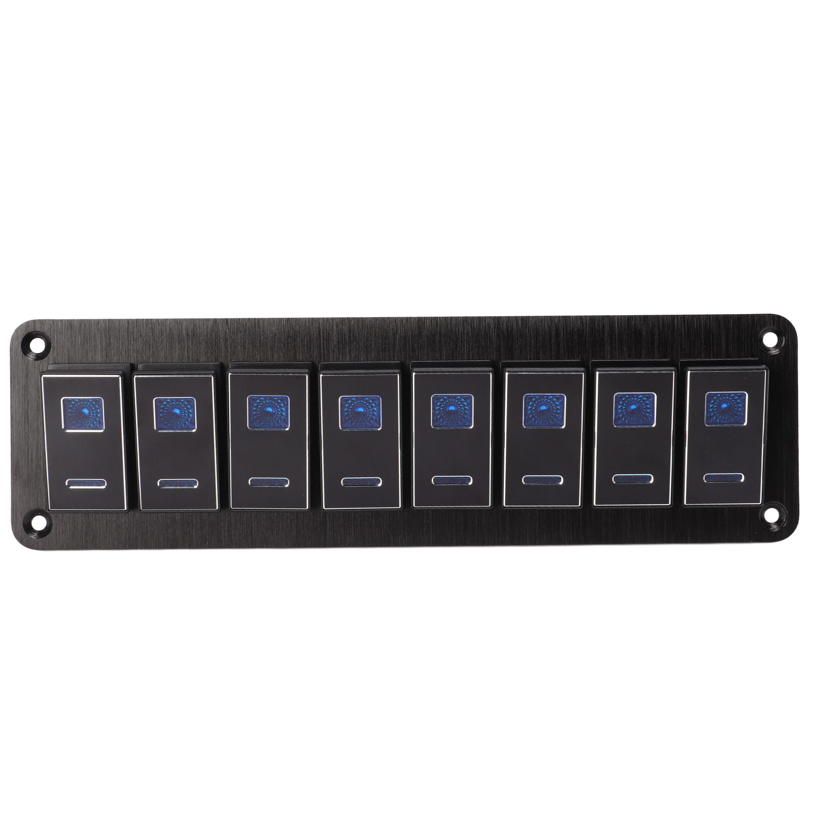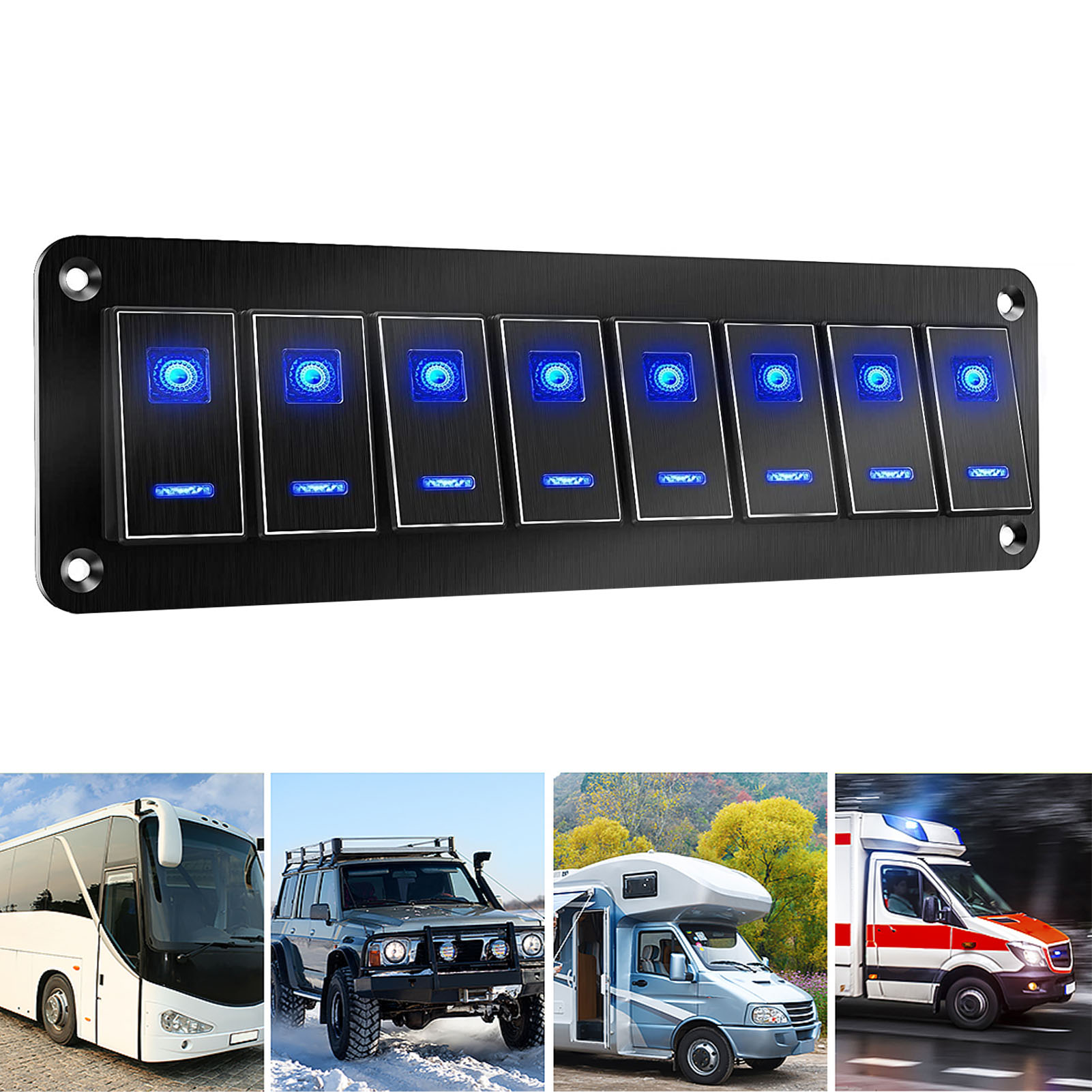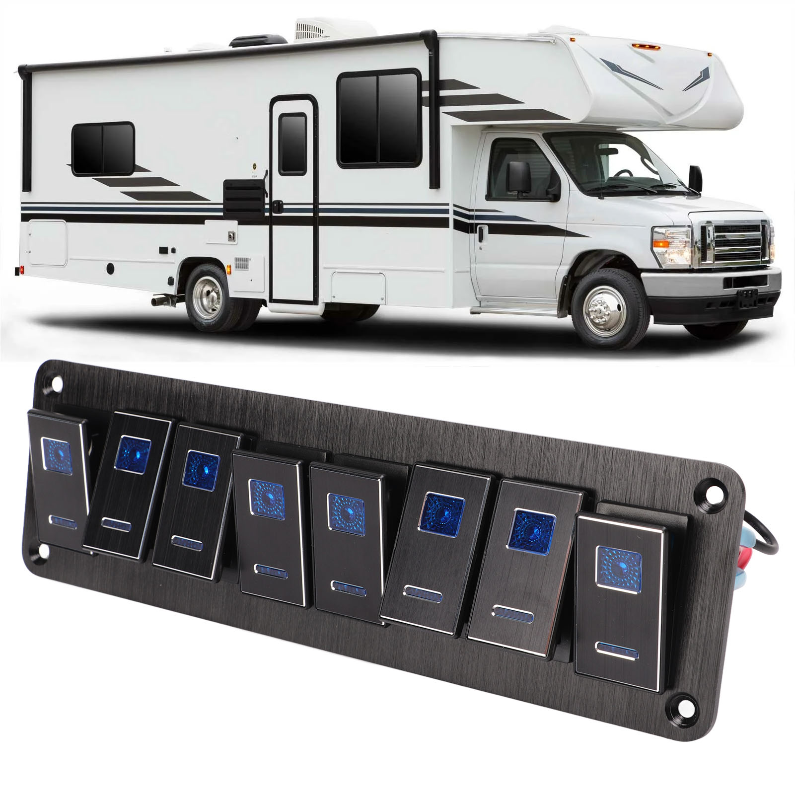 8 Gang RV Aluminum Toggle Switch Panel DC12V to 24V Waterproof Oxidized Black 20A 5PIN Blue LED Light for Car Yacht