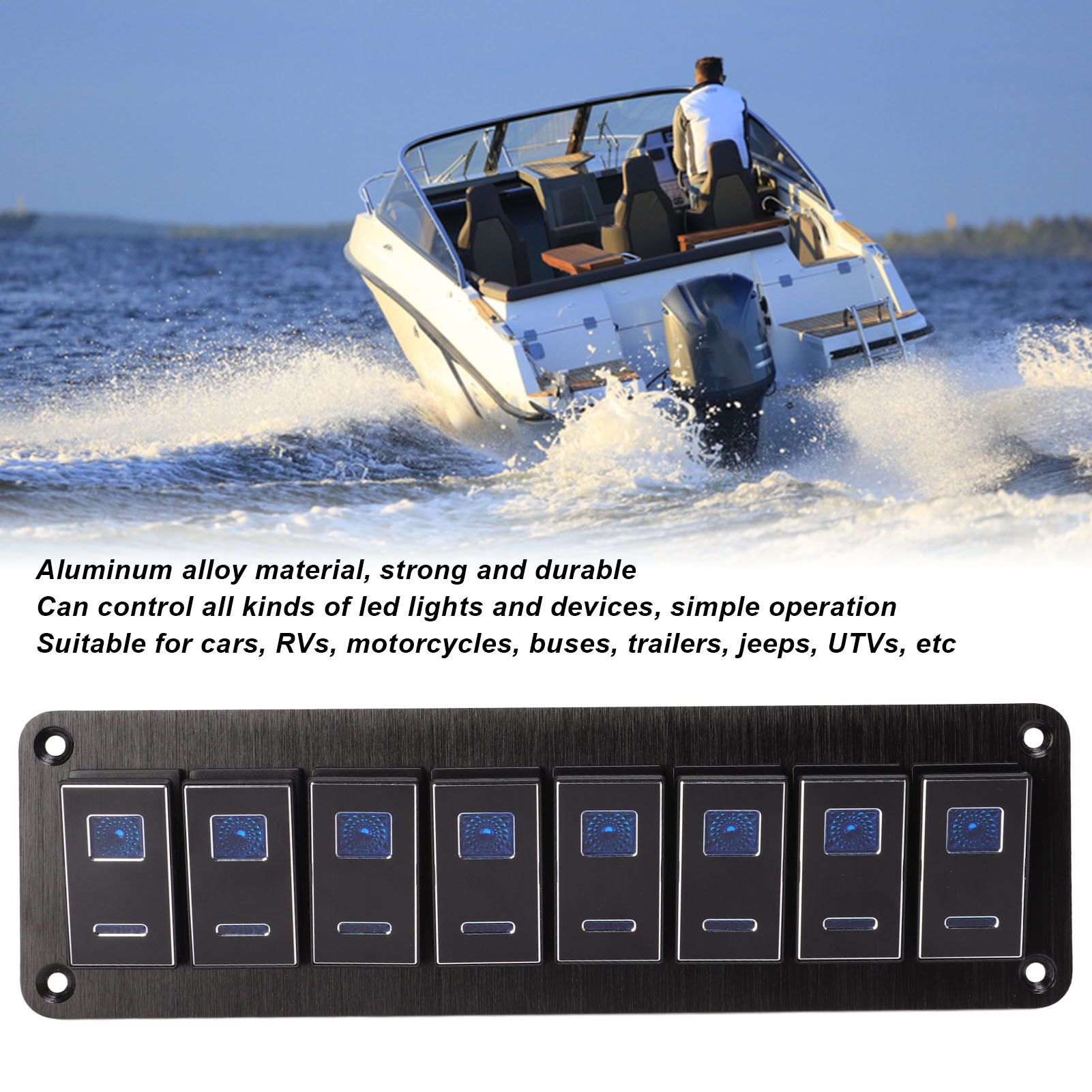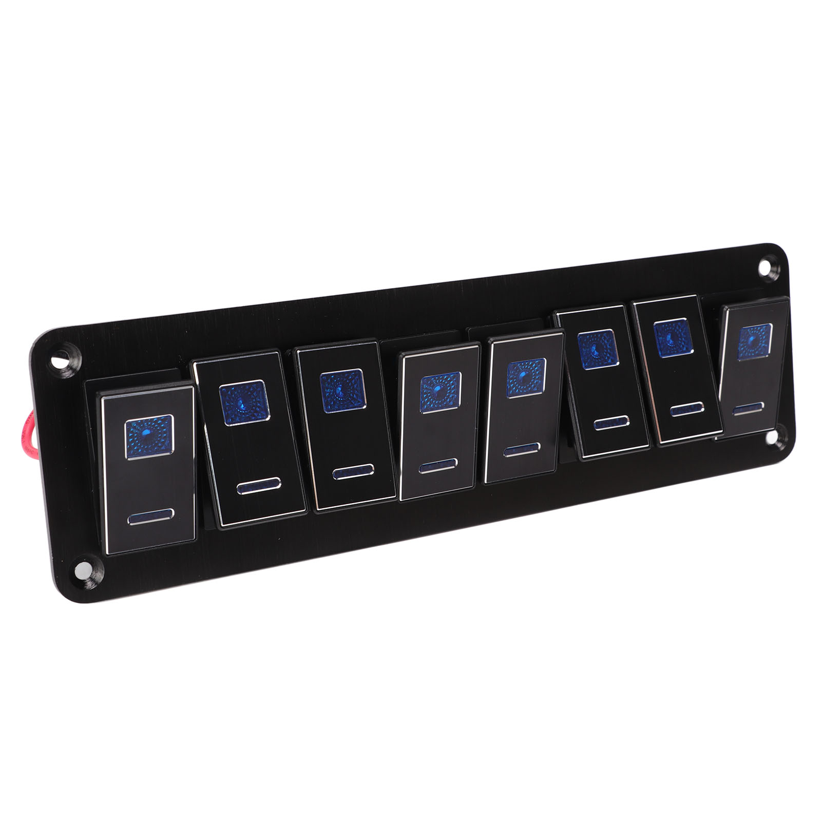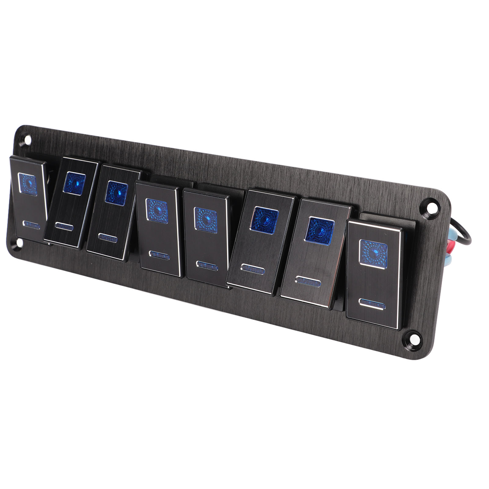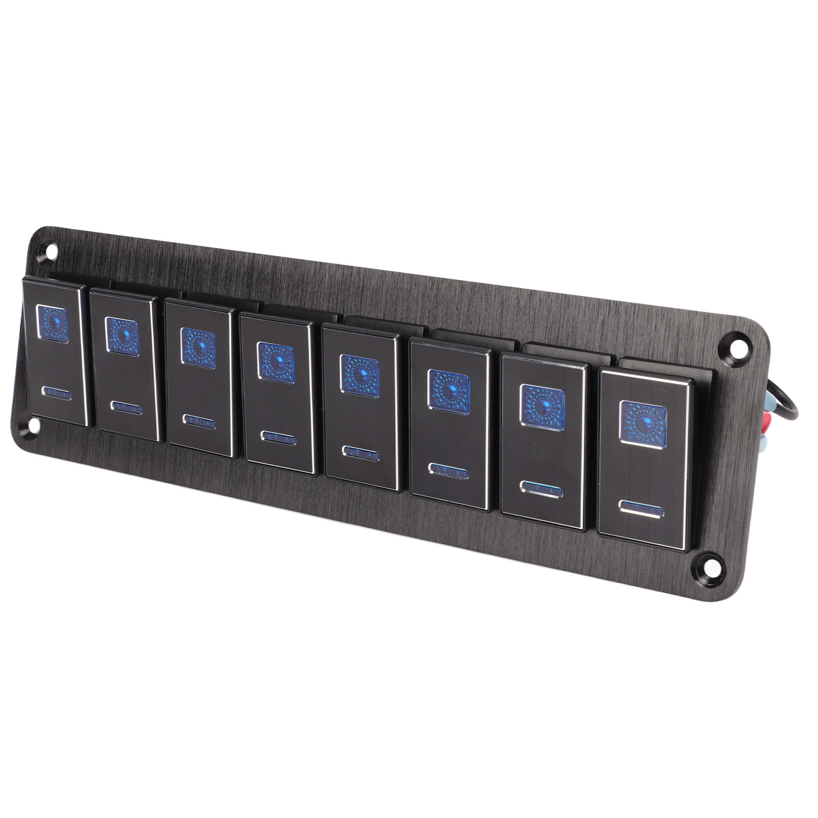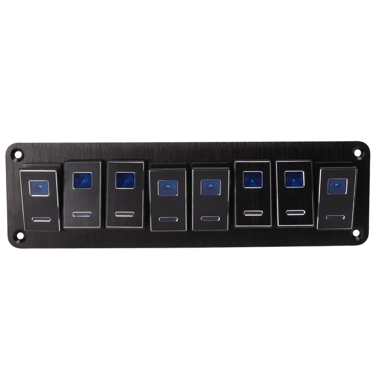 8 Gang RV Aluminum Toggle Switch Panel DC12V to 24V Waterproof Oxidized Black 20A 5PIN Blue LED Light for Car Yacht