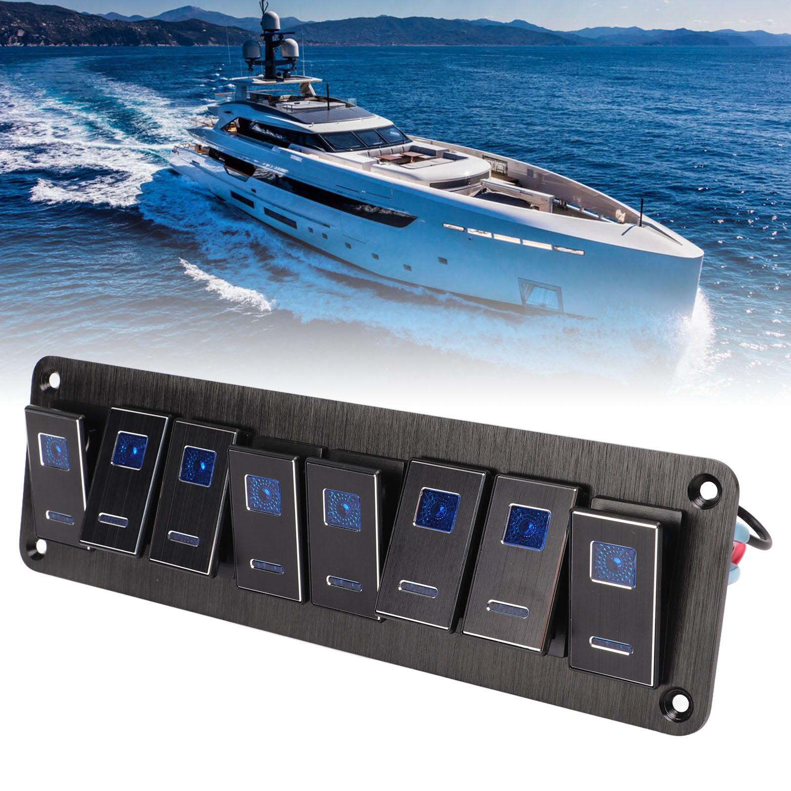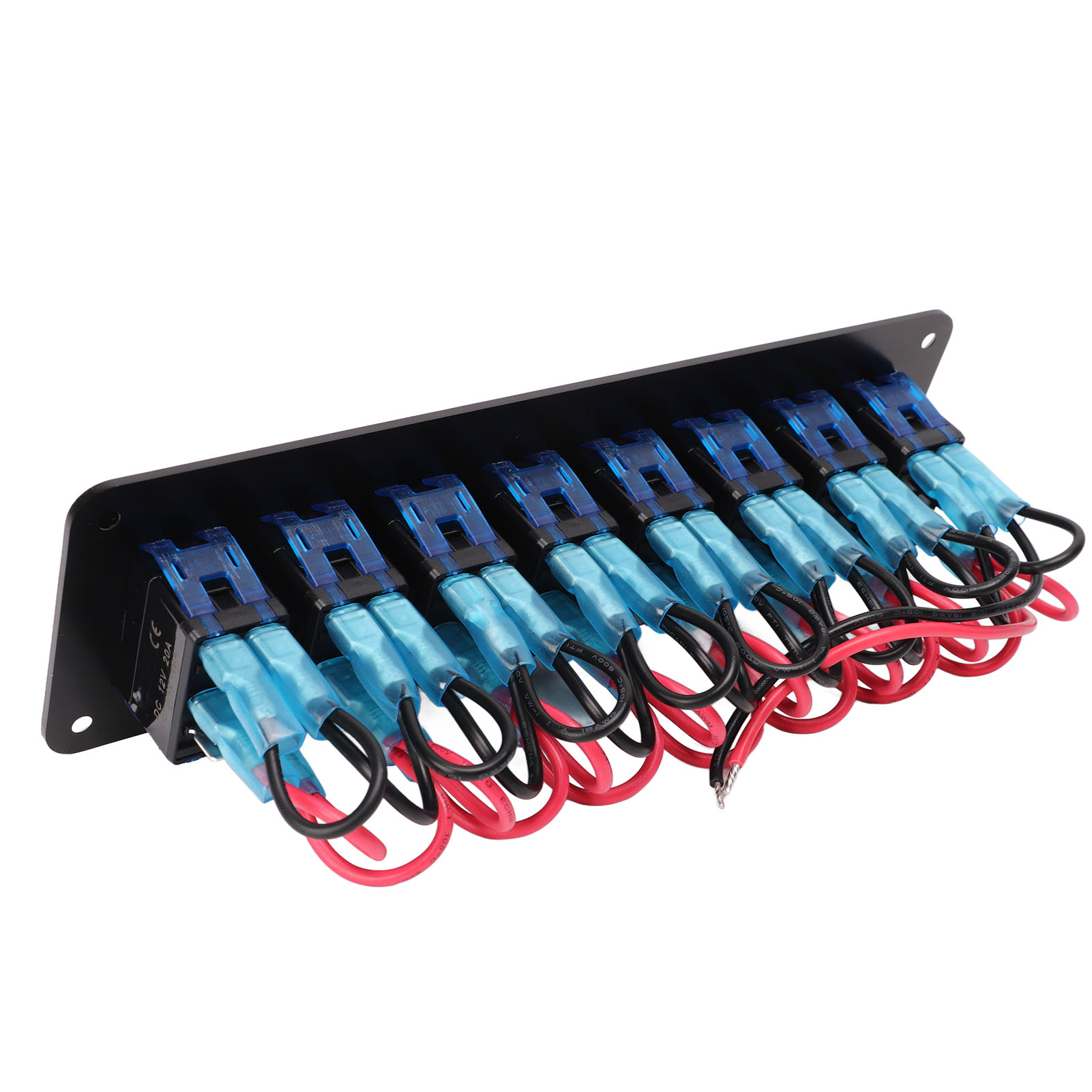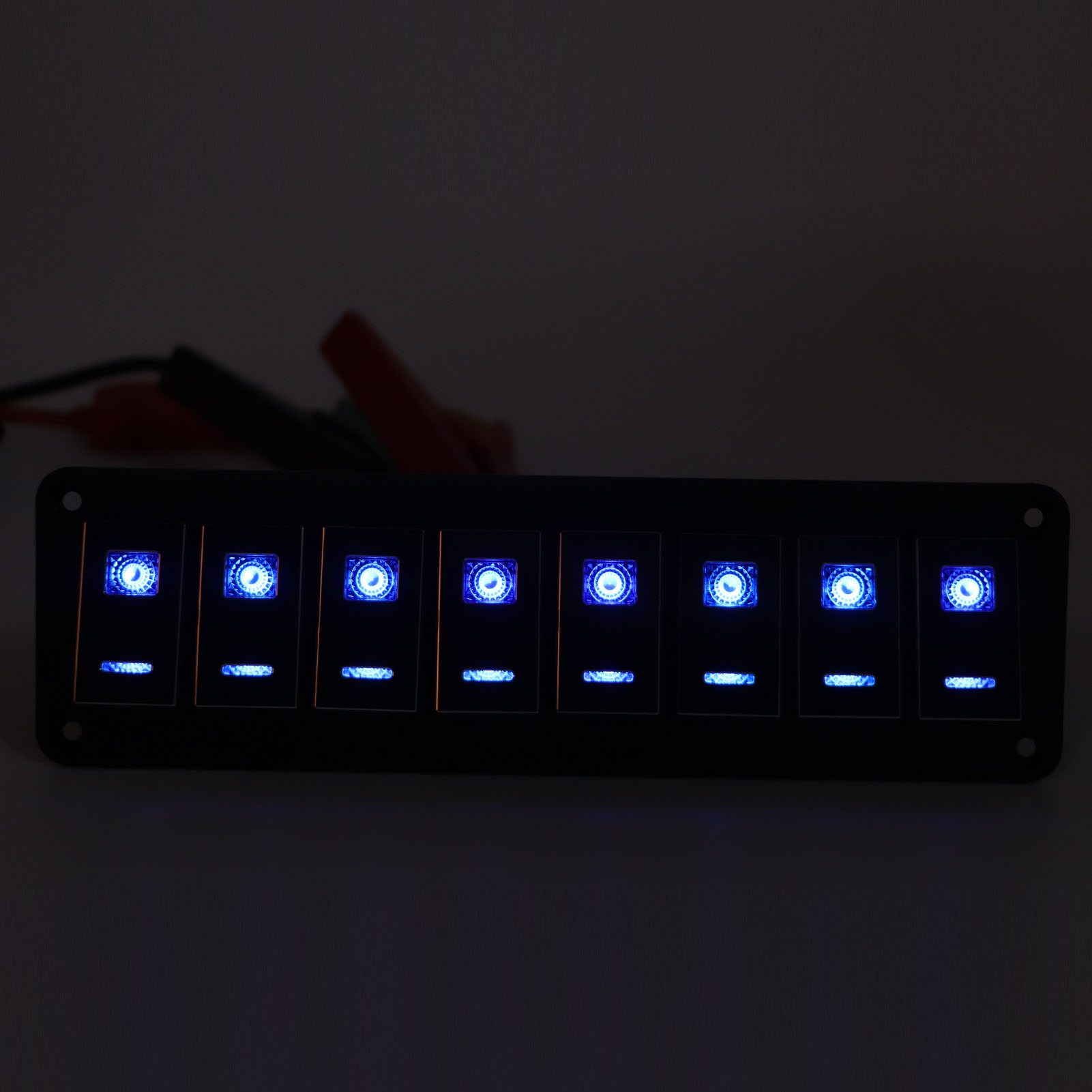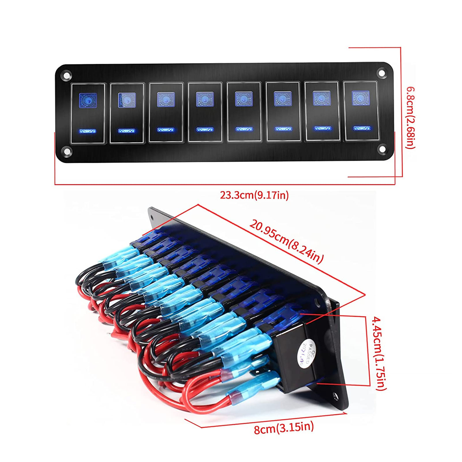 8 Gang RV Aluminum Toggle Switch Panel DC12V to 24V Waterproof Oxidized Black 20A 5PIN Blue LED Light for Car Yacht