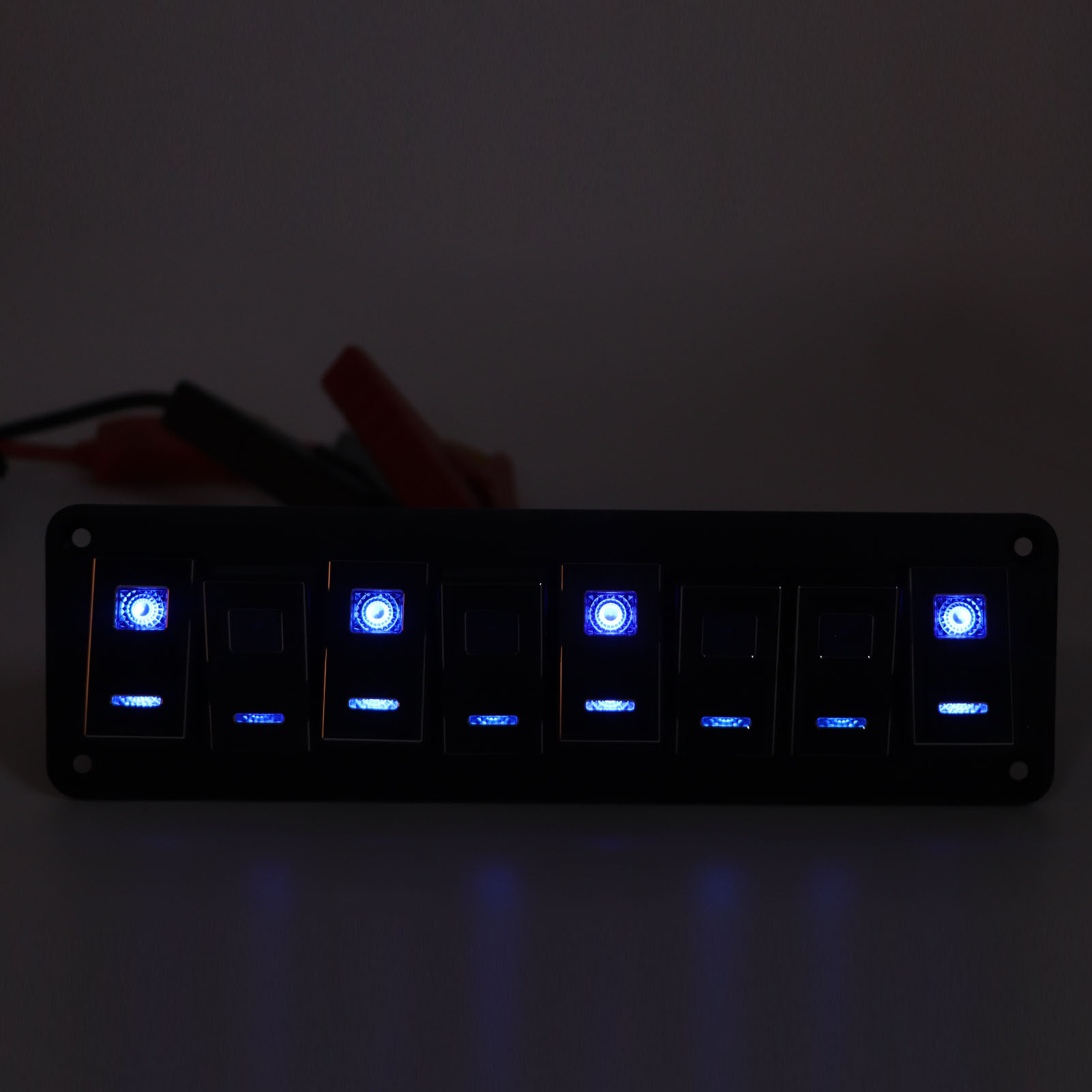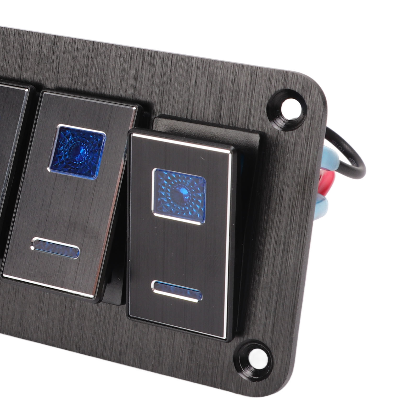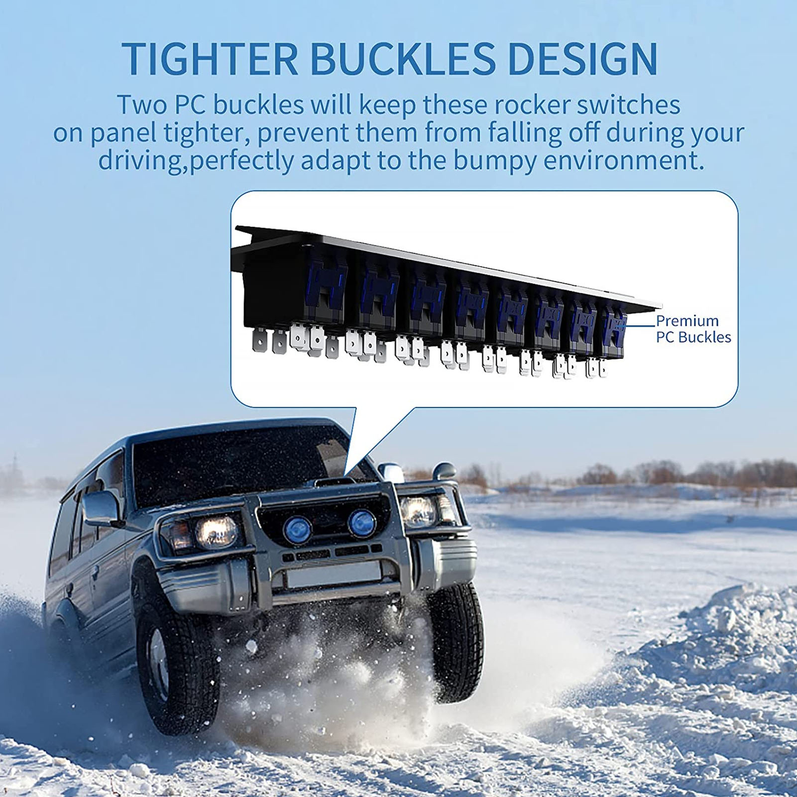 1、Panel Information: The marine rocker switch panel works with DC12V‑24V, maximum current is 20A, and the working temperature is ‑13‑149℉, which is very suitable for most types of circuit control. 2、Features: Each individual switch has two flexible PC buckles, they will keep the toggle switches on panel tighter, prevent they from falling off during your driving, perfectly adapt to the bumpy environment. 3、Wide Application: Switch panel is suitable for most DC 12V‑24V cars, RVs, motorcycles, buses, trailers, jeeps, UTVs, yachts, etc. 4、Blue Light: The built in LED light emits a soft blue light when the switch is energized and illuminates the pattern, you can easily identify the status of the switch. 5、Stable Performance: This switch panel is made of aluminum alloy material, sturdy and durable, and can control various led lights and devices, easy to install.