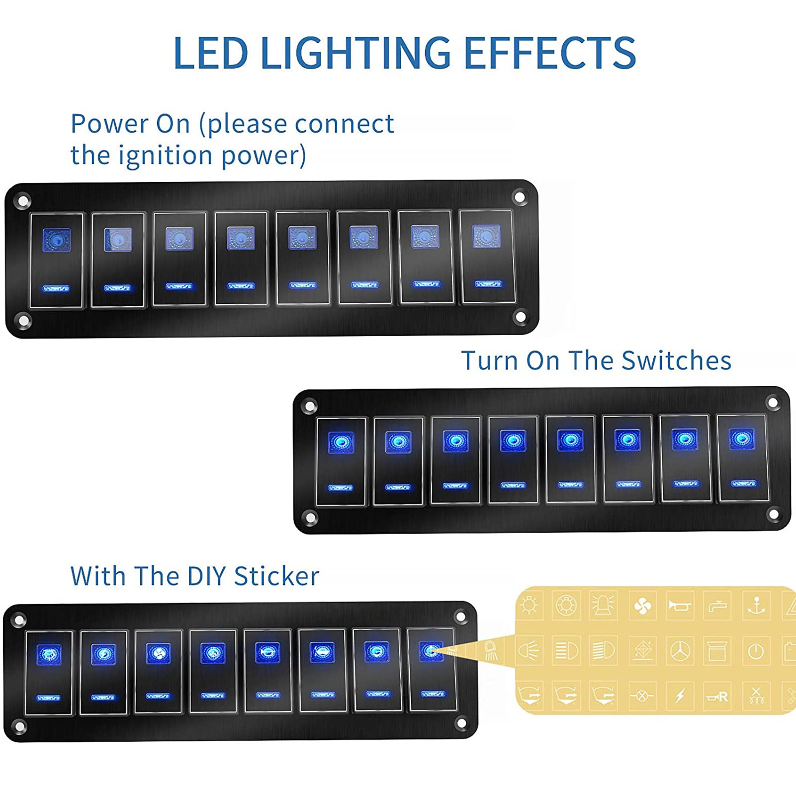 Application: This auto switch panel is prewired to control a variety of LED lights and equipment, easy to install, widely applicable to many cars, RV, motorcycle, bus, trailer, Jeep, UTV, etc