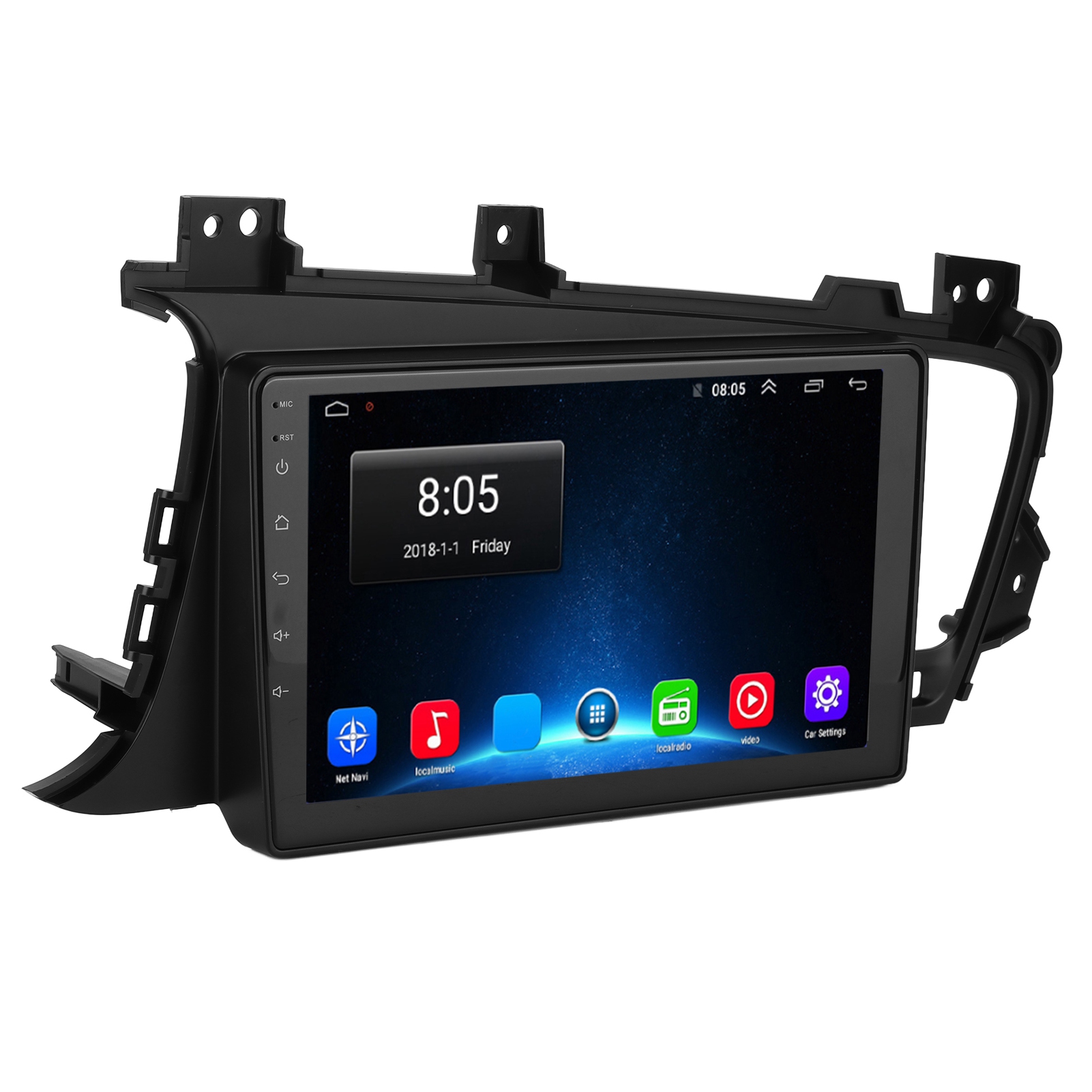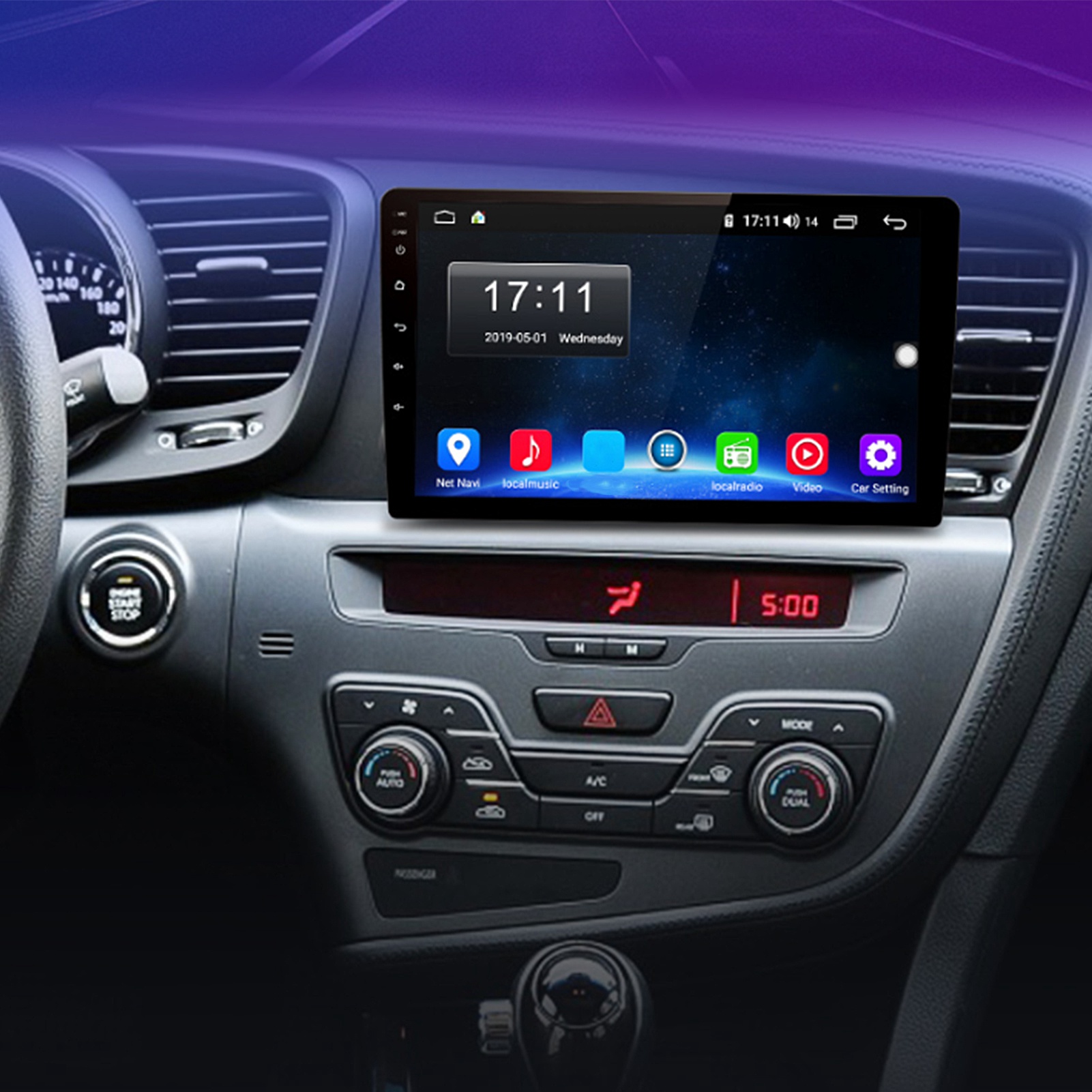 Main Menu Status Bar display: Can be changed to Music/Radio/BT-Stereo Player and Clock/Date/Week
