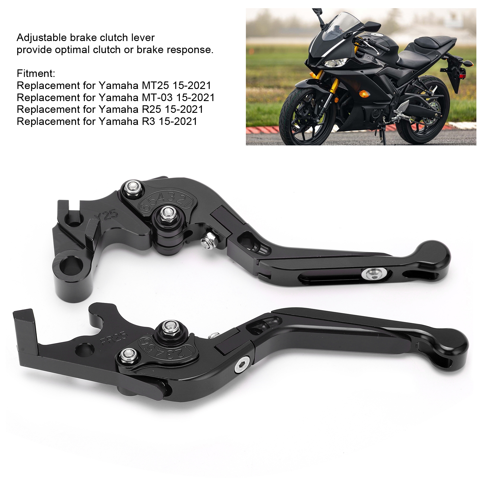 1、1 pair of brake clutch levers, perfect replacement for Yamaha MT25 MT‑03 R25 R3, simple to install, convenient to use. 2、Simply adjust the fixing screw on the lever, and you can adjust the range from the smallest pointer to the largest pointer, provide optimal clutch or brake response. 3、Modern lasers technology is used to ensure a long service life of, and the lasers engraved logo has good visibility. 4、Anodizing treatment offers a glossy and vibrant surface effect, increases corrosion resistance and abrasion resistance. 5、The high‑quality CNC aluminum alloy material increases durability and rigidity, not easy to bend or break during a collision.