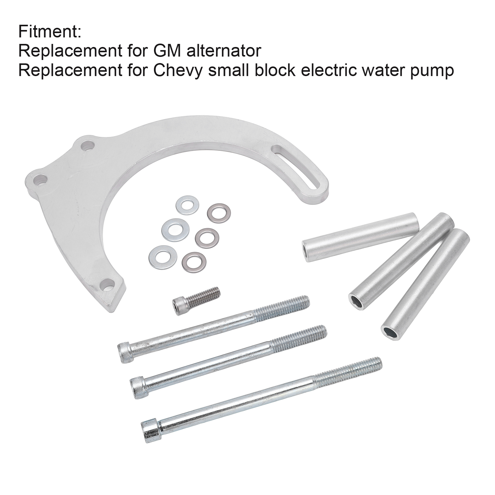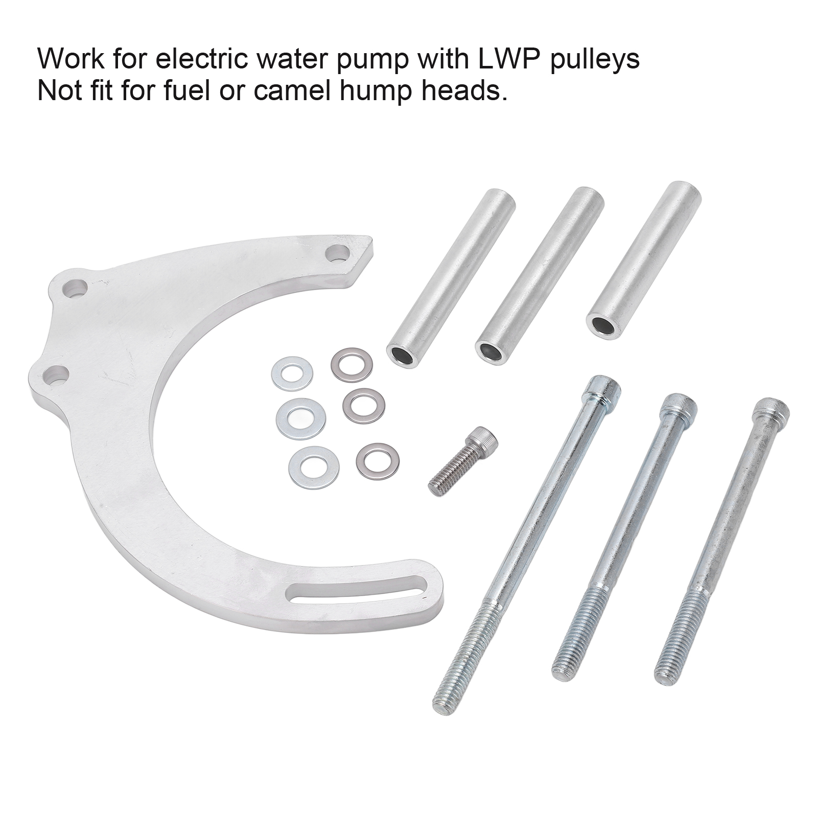 1、Great Application: The long water pump bracket kit could work with replacement for GM alternator and replacement for Chevy small block electric water pump. 2、Durable Construction: The electric water pump bracket kit is carefully manufactured by 1/2in 6061 T6 aluminum with CNC treatment for long service life. 3、6 to 12 O‑Clock Distance: The distance of the center of the pivot hole to the center of the adjusting hole is approximate 6 5/8in ( 6.6in or 168mm), more precise design. 4、Application Suggestion: The heavy duty alternator mount kit work for electric water pump with LWP pulleys, while not fit for fuel or camel hump heads. 5、Professional Production: The alternator support kit has undergone extensive quality and safety testing to ensure higher working efficiency and strong durability.