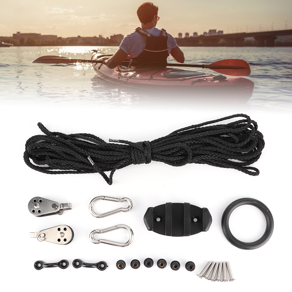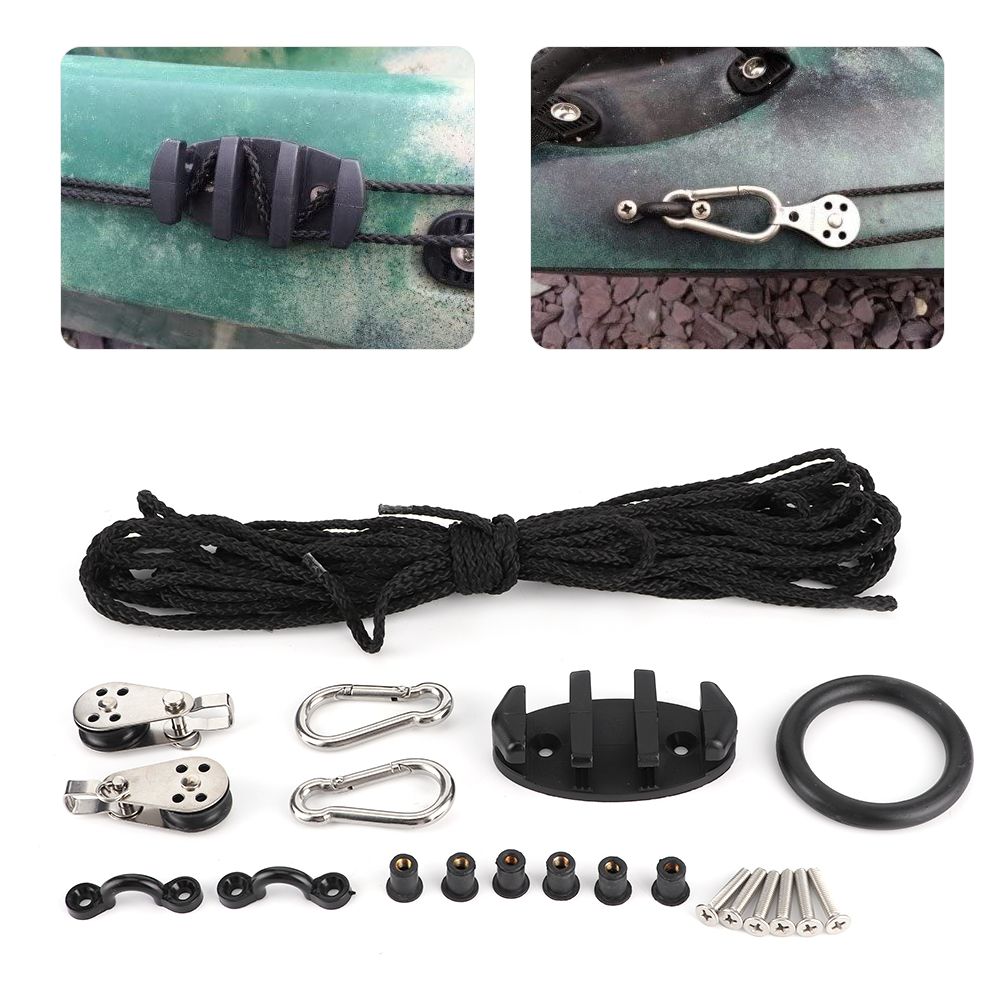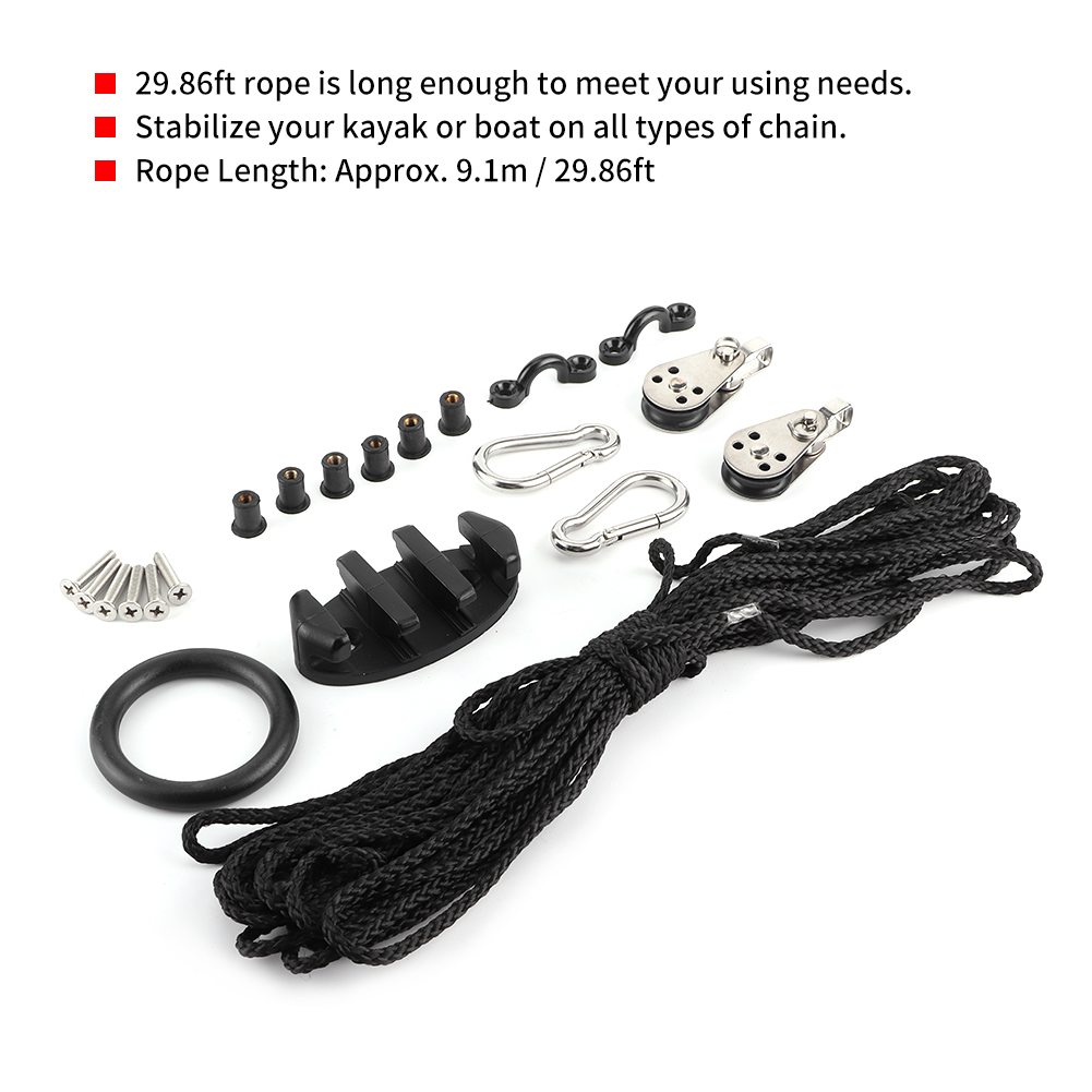 Anchor Trolley Kit with Rope Pulley Pad Eyes for Kayak Canoe Boats Water Sports Accessories