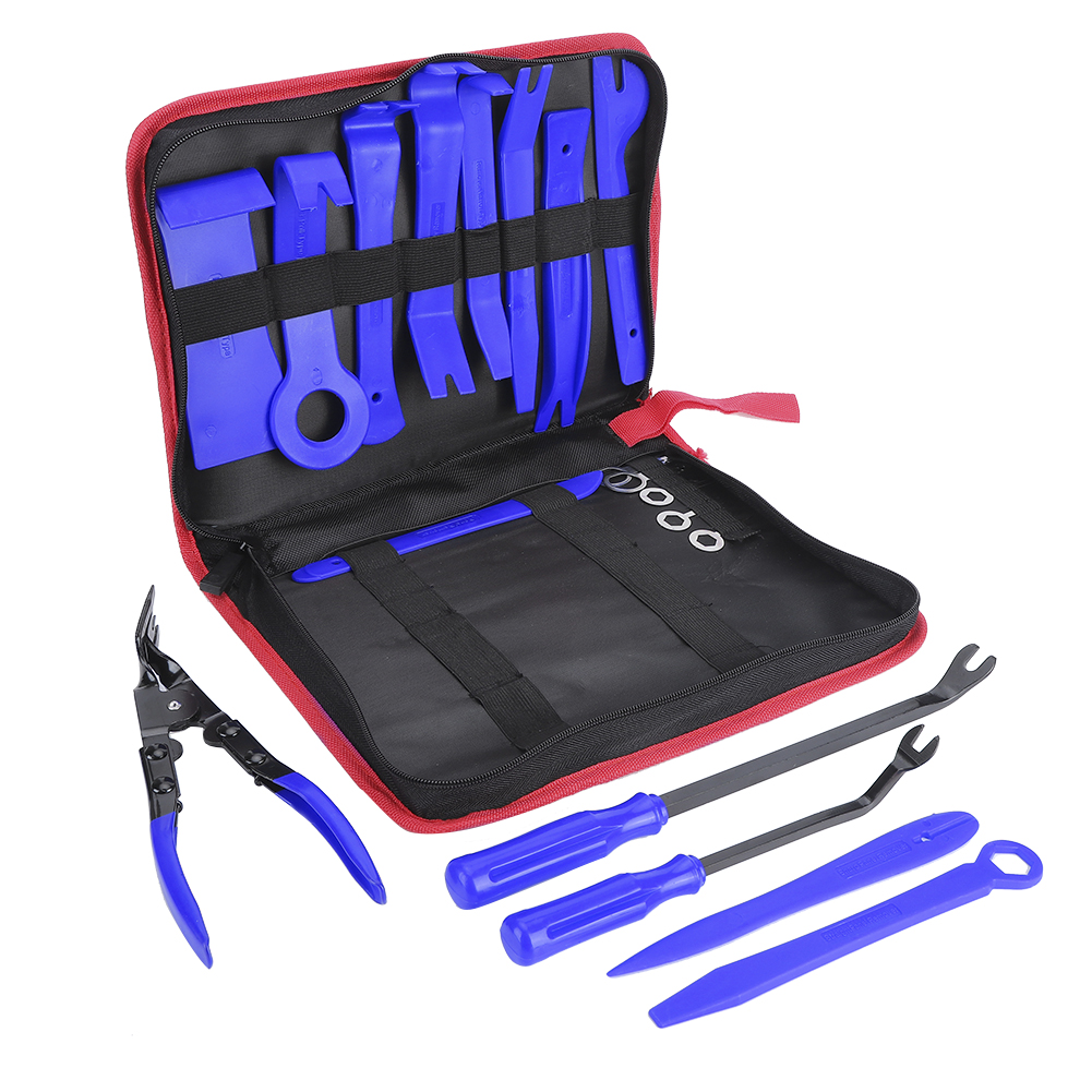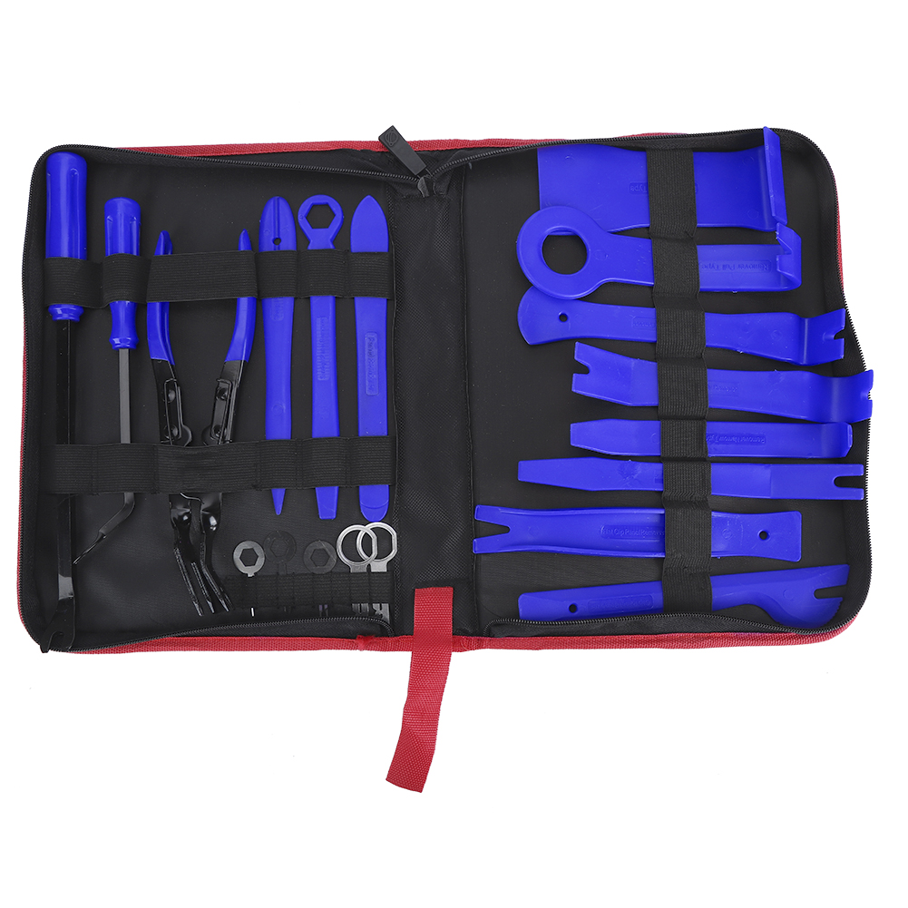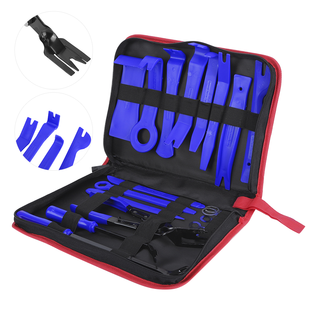 1、This removal tool features with non‑toxic, anti‑breakage, wear‑resistant, corrosion‑resistant, and durable. 2、With convenient storage and zipper bag. Every tool can be stored properly so that you don't misplace or lose them. 3、The special hand strap design lets your hands perform other tasks freely and improve its portability. 4、With an ergonomic design, it can easily be holden in hand to fit hard to reach spaces and effectively help to save effort when you remove and install the devices. Help you to handle various interior and exterior decorations easily and efficiently. 5、This multi‑functional car trim removal kit set is adapted to all types of car modifications. Perfect for dismantling of car audio / radio, door panel, dashboards, fixing clips, roof lights, windows, interior accessories, etc. 6、Constructed of durable and impact‑resistant material, with better performance and will not break like ABS.